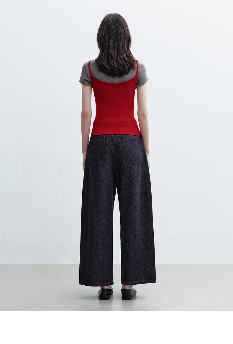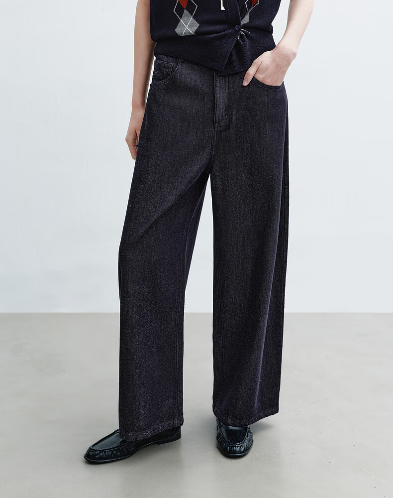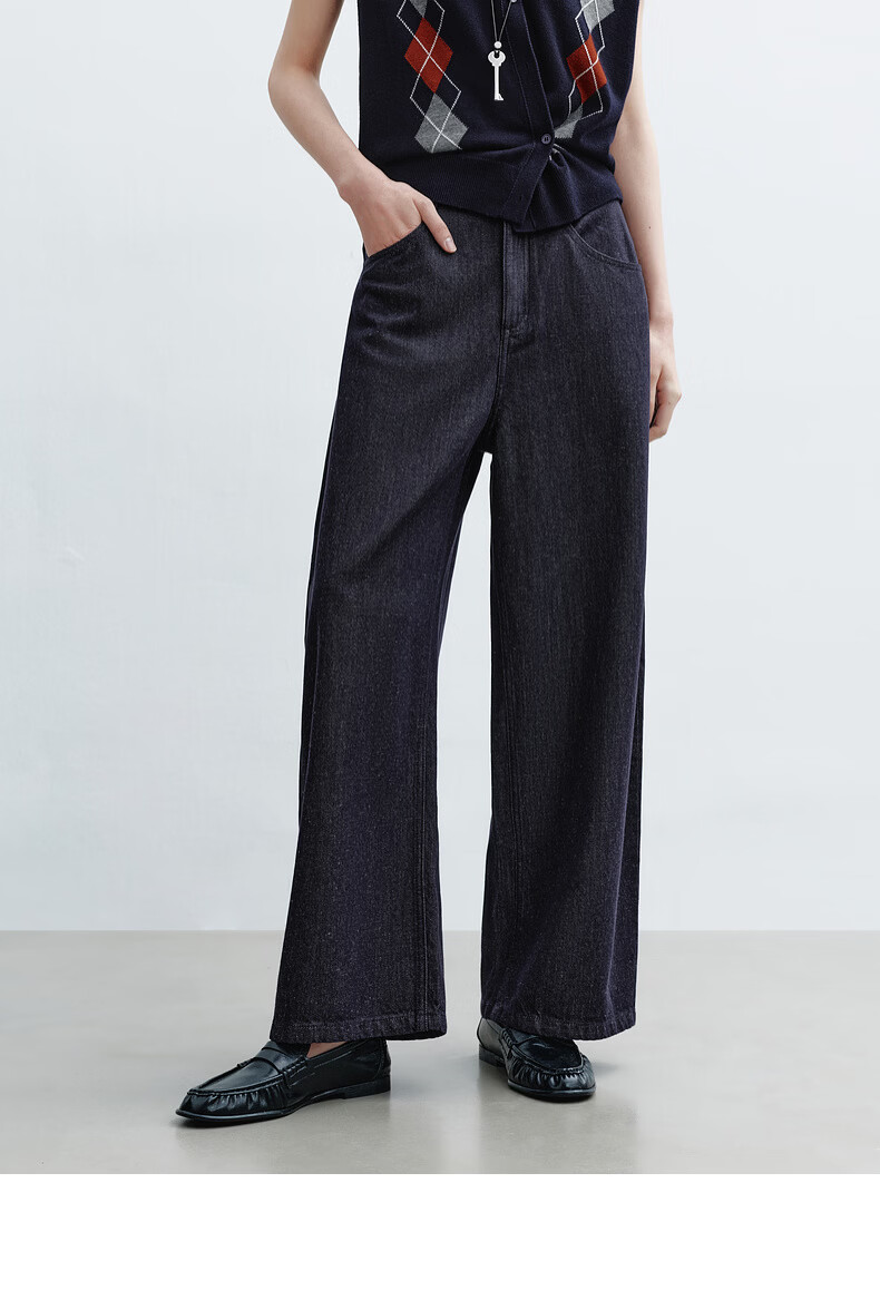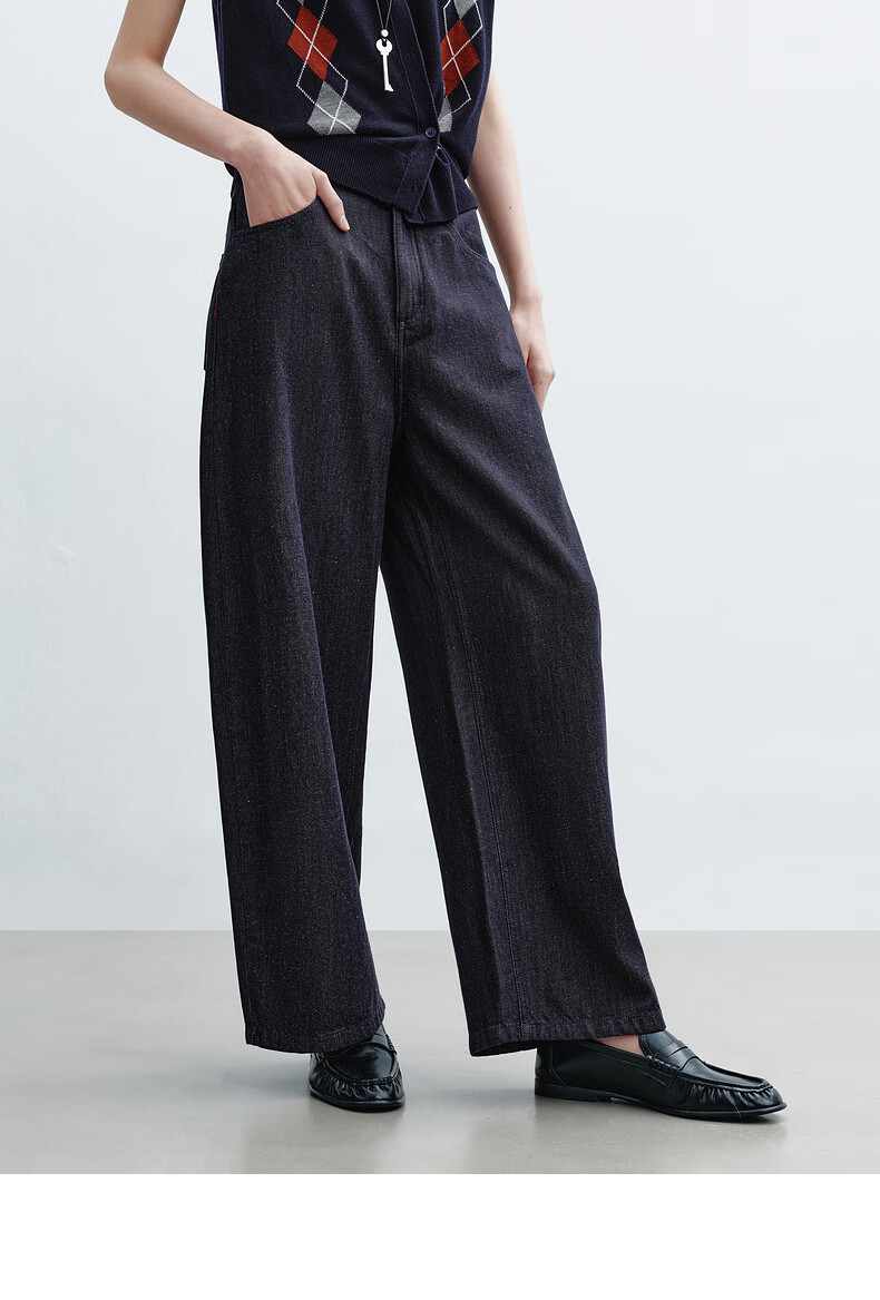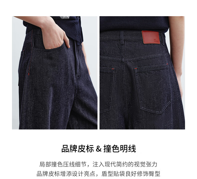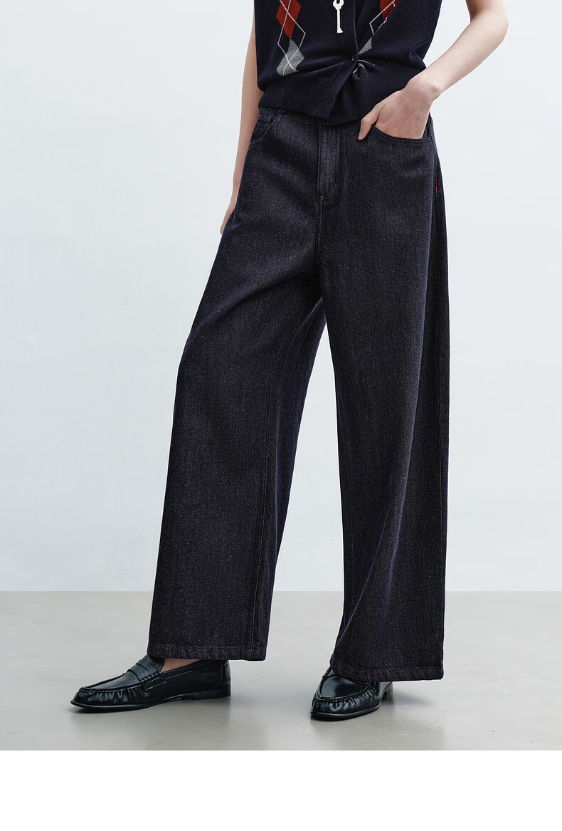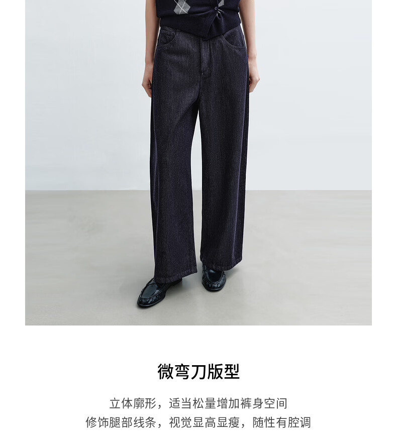 H's【莱赛尔】藏青九分牛仔裤女26春季新款高级设计松弛立体弯刀裤 深藏青牛仔 S