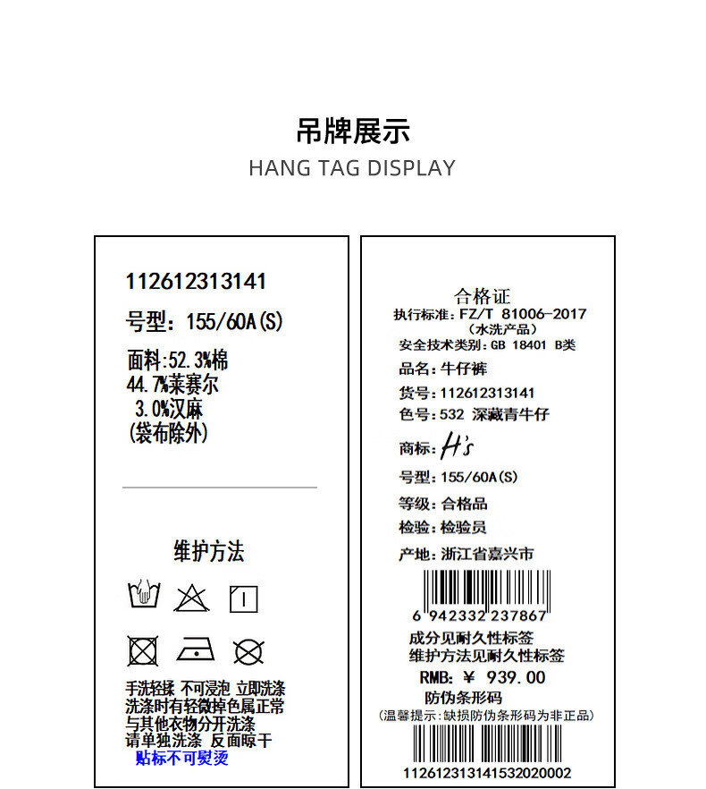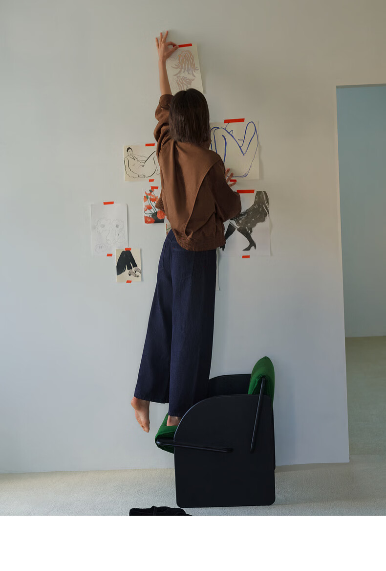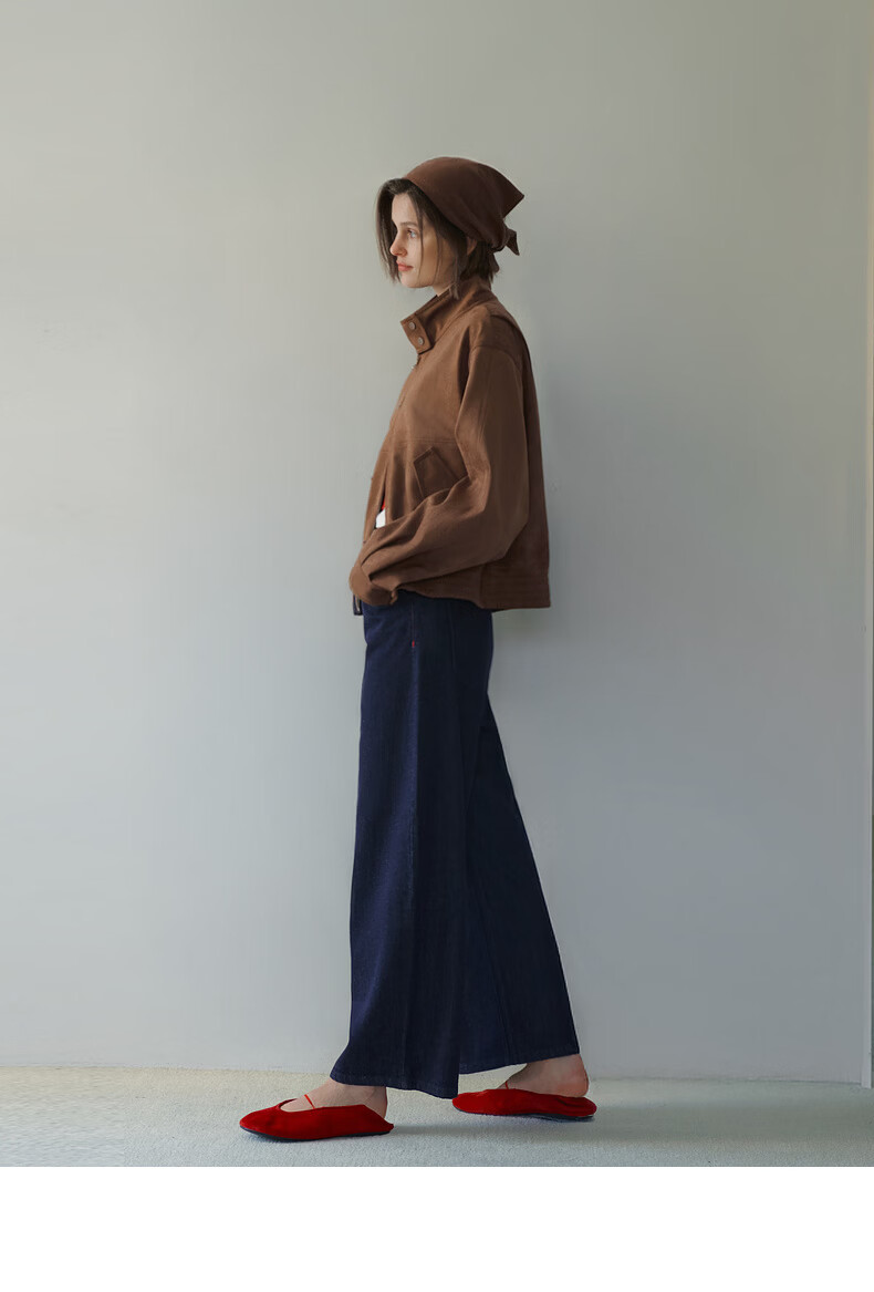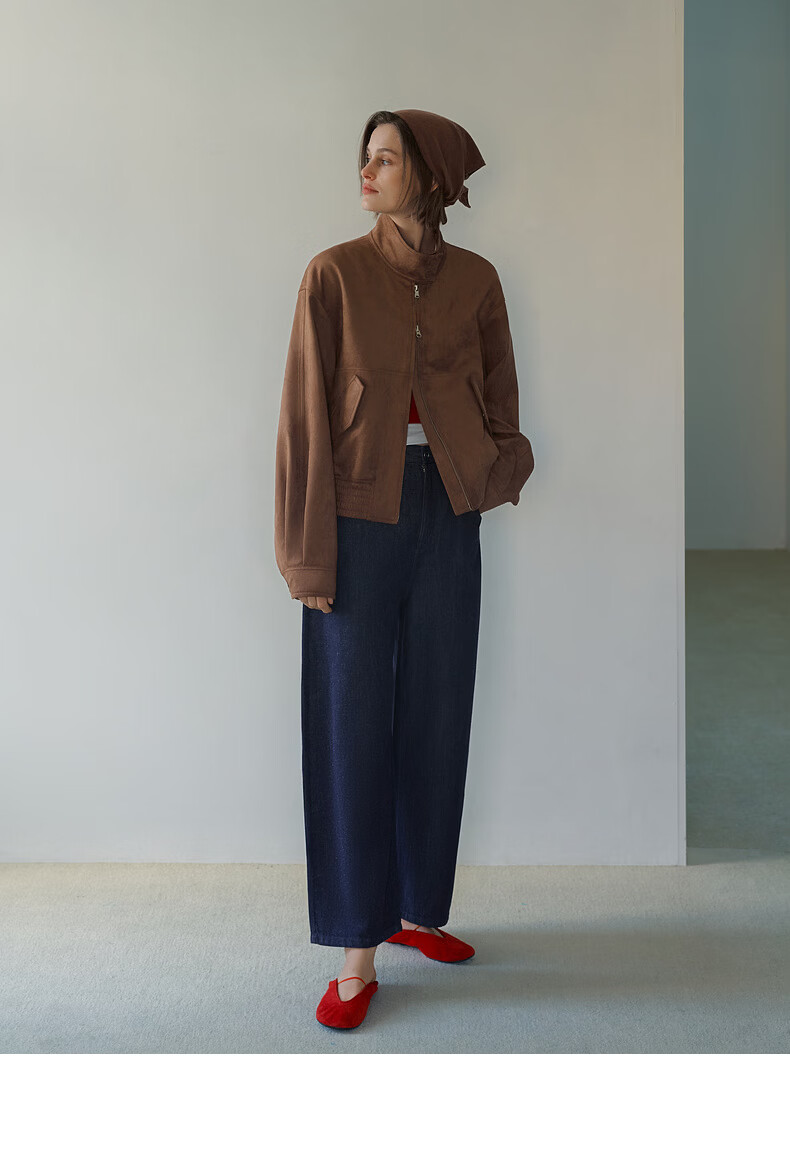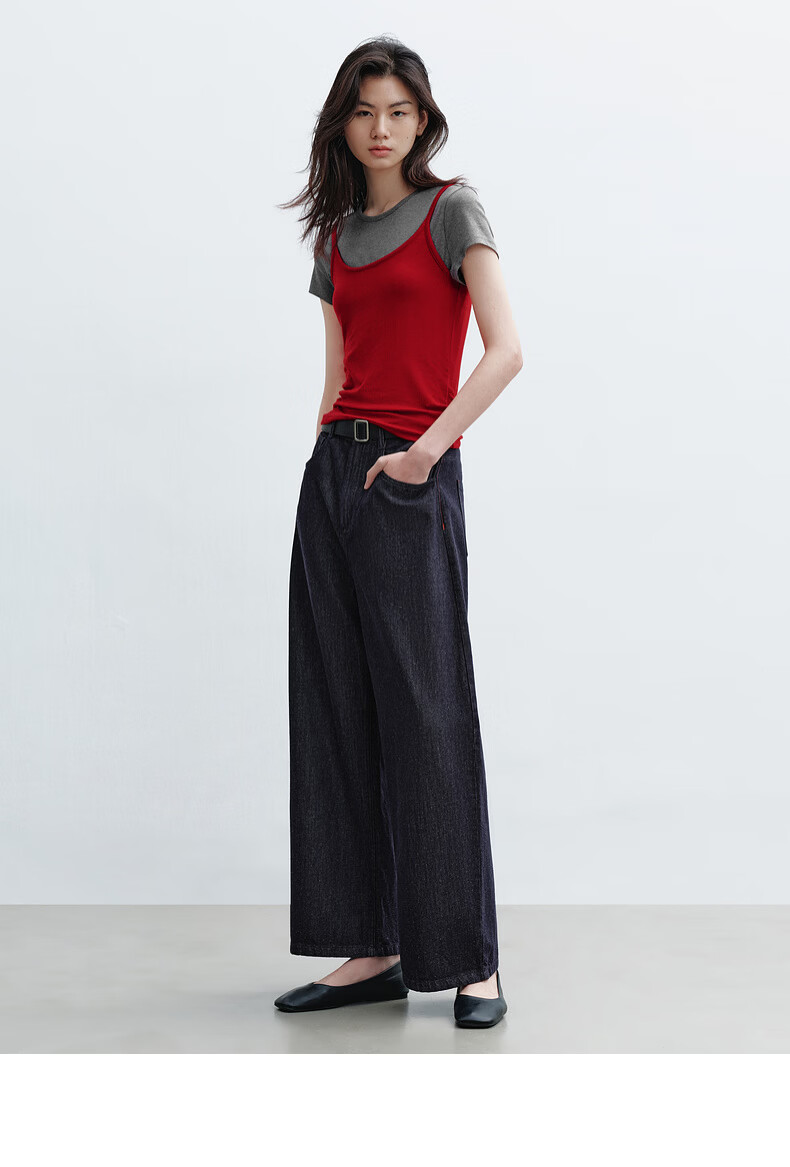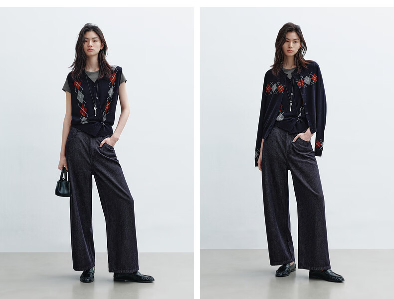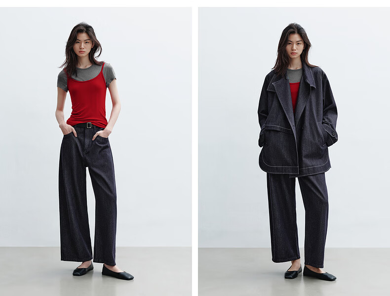 H's【莱赛尔】藏青九分牛仔裤女26春季新款高级设计松弛立体弯刀裤 深藏青牛仔 S