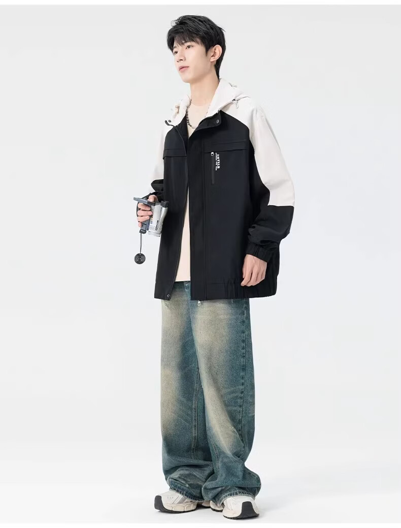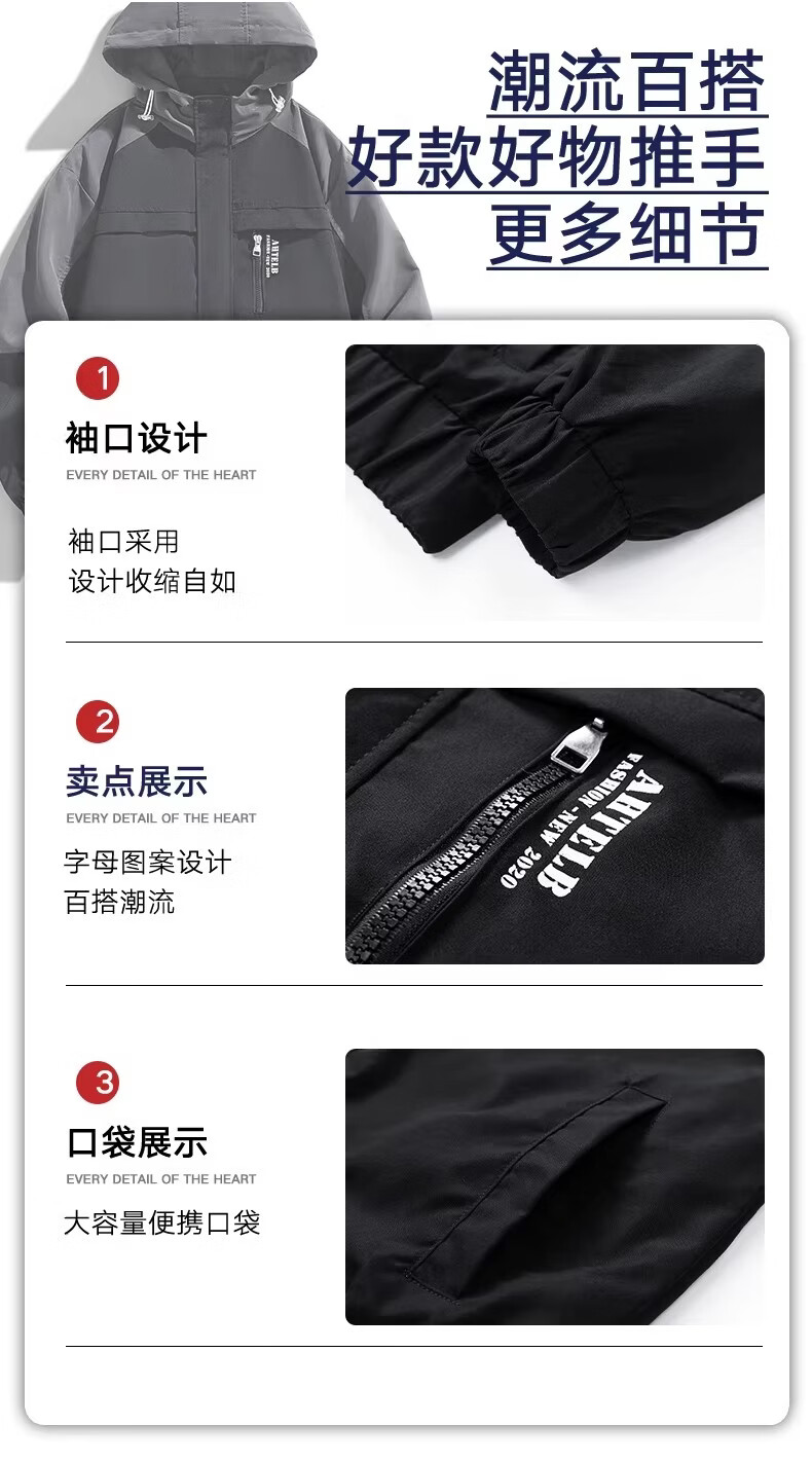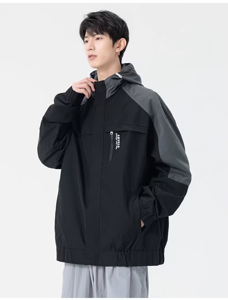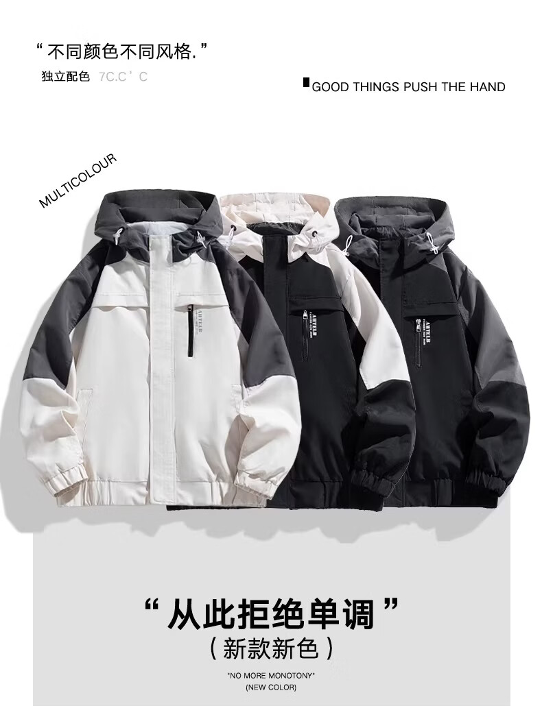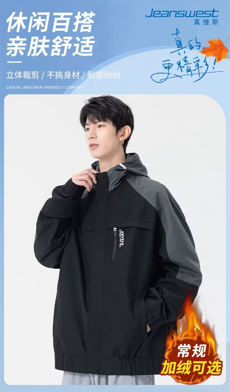 真维斯(Jeanswest)2026新款户外冲锋衣男款秋冬款夹棉外套冬季加绒加厚休闲登山服男 黑灰 M 【建议90-110斤】