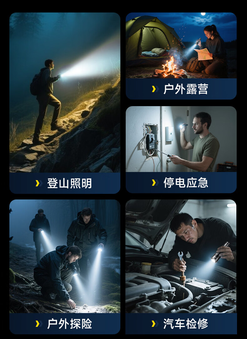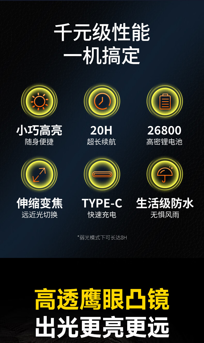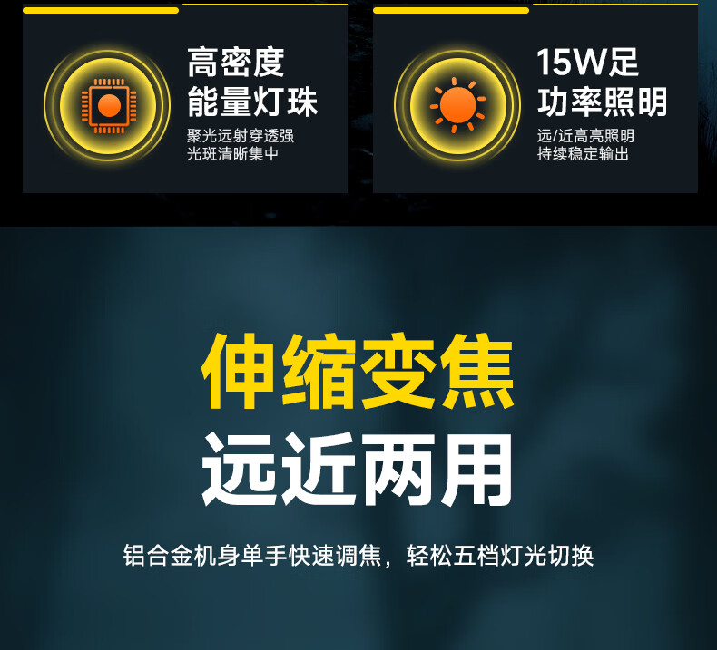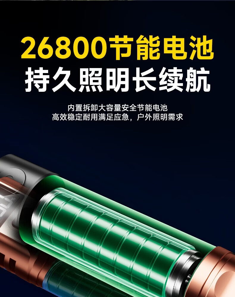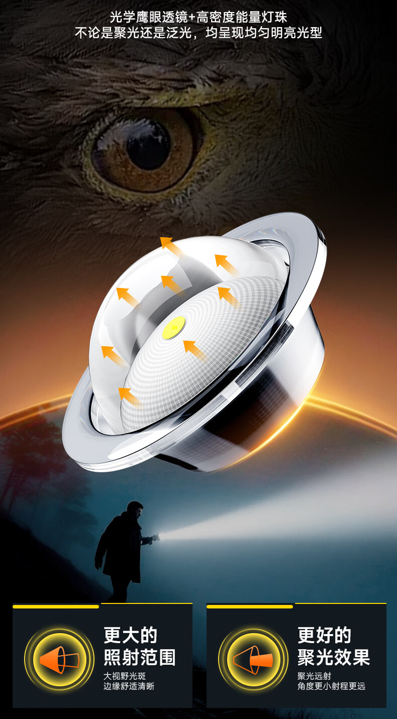 奥克斯(AUX)强光手电筒变焦超亮充电长续航大功率便携式远射户外镭射巡逻家用 【顶配款+三色镜片】双电池 12000毫安 Type-C快充
