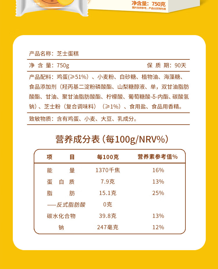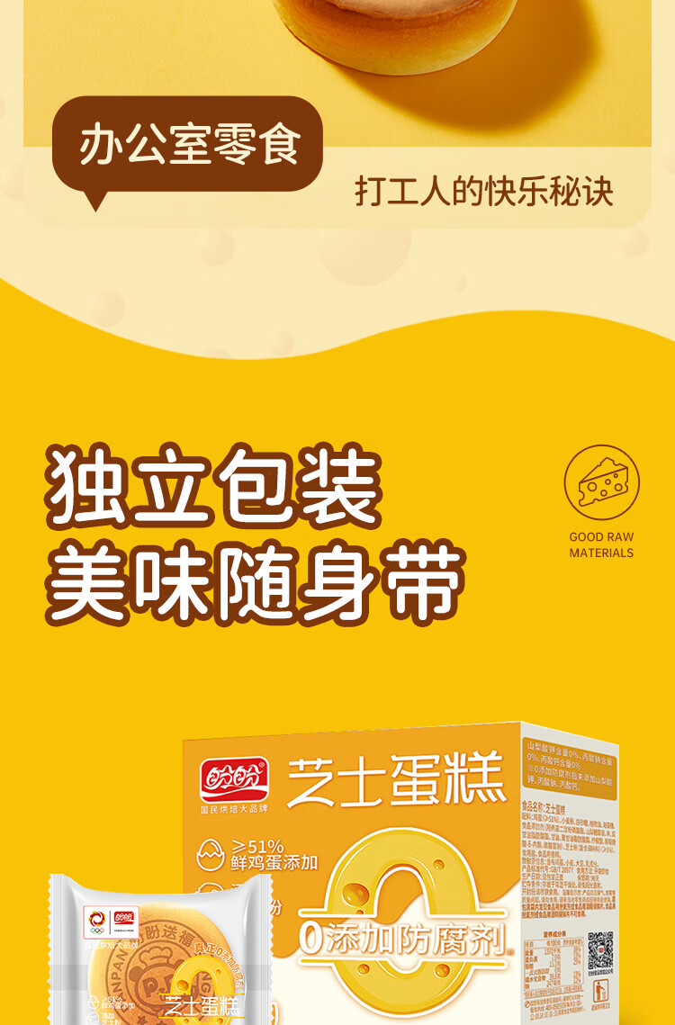 盼盼 芝士蛋糕 早餐蛋糕休闲零食0防腐剂代餐糕点下午茶 750g/箱