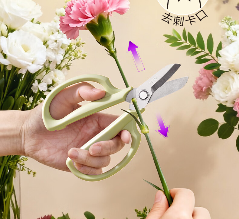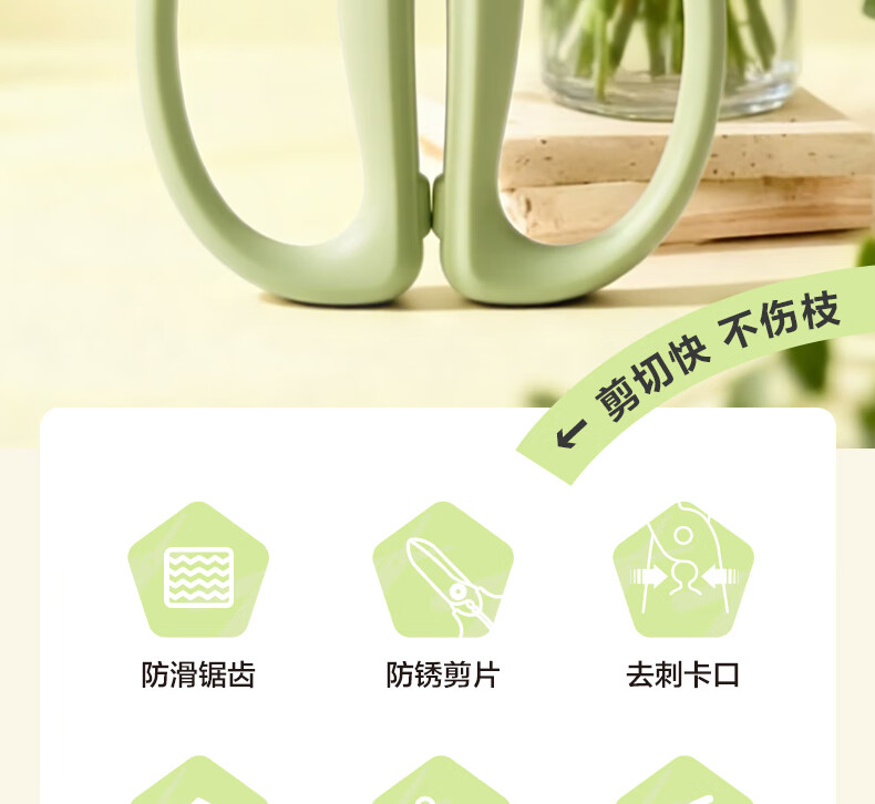 得力(deli)园艺剪刀修剪树枝花艺盆栽剪家用鲜花插花专用剪刀绿箩绿植花卉果树直刃165mm TJ52绿