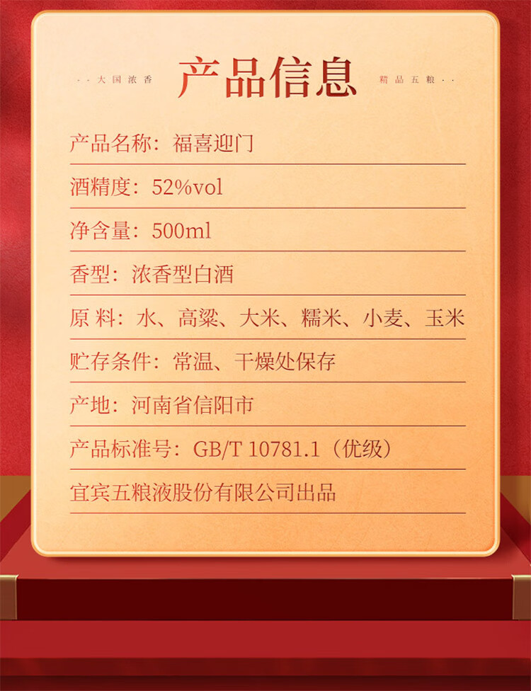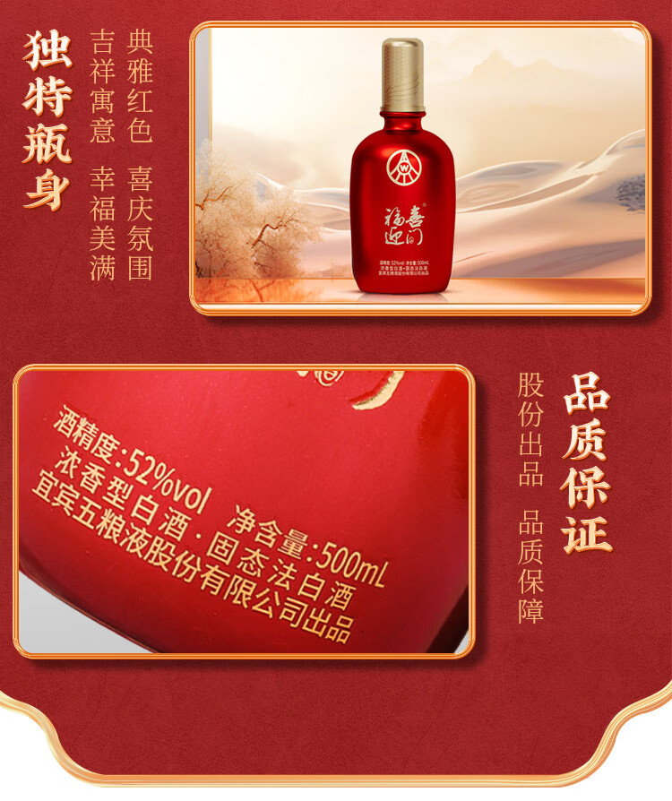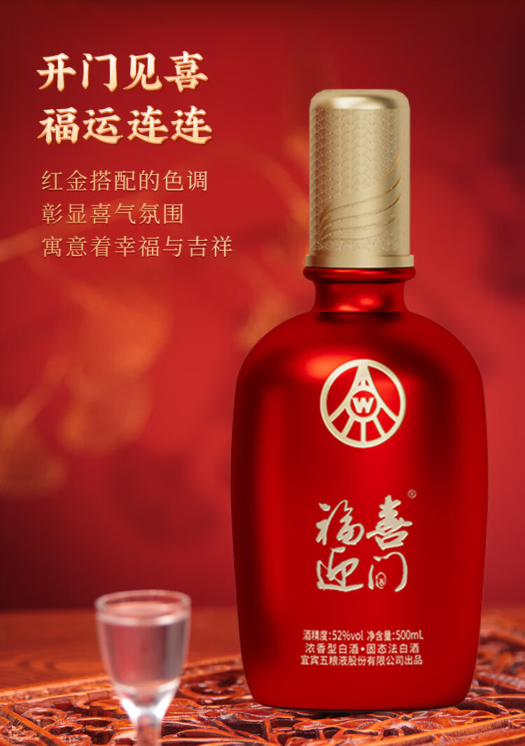 五粮液股份出品 福喜迎门 浓香型白酒 52度500ml*1瓶 送礼宴饮
