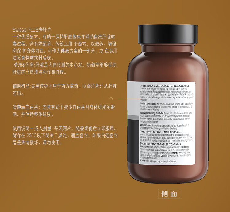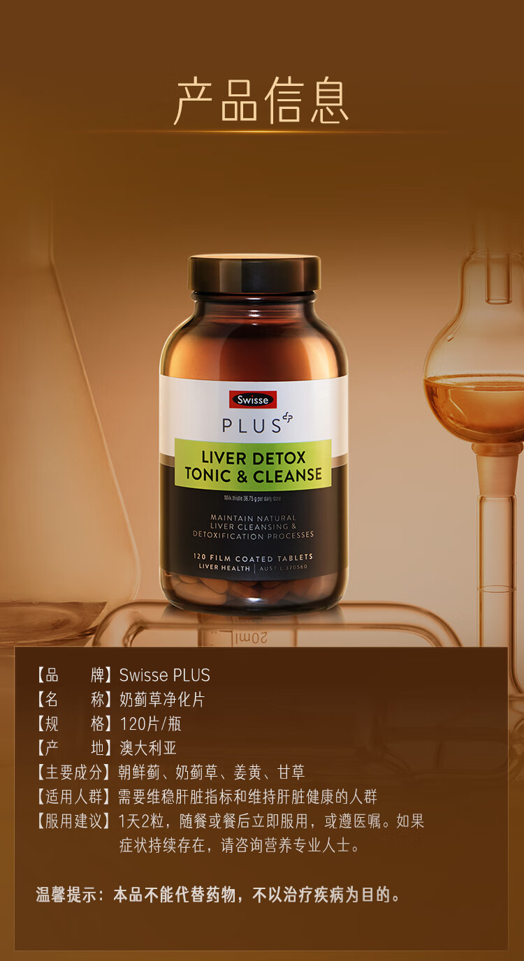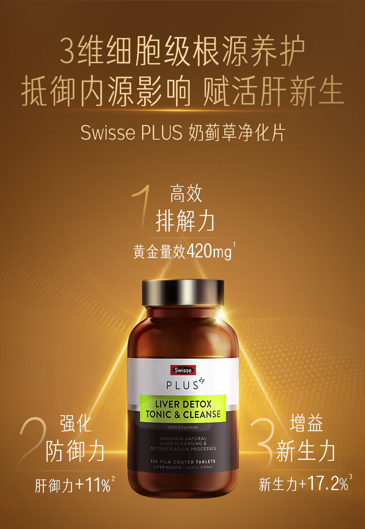 Swisse斯维诗 PLUS护肝净肝片 70倍浓缩奶蓟草 含姜黄洋蓟甘草120片/瓶