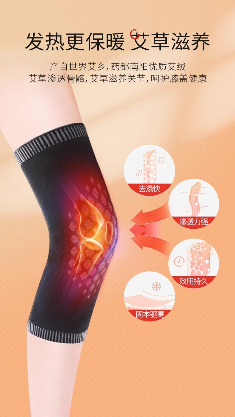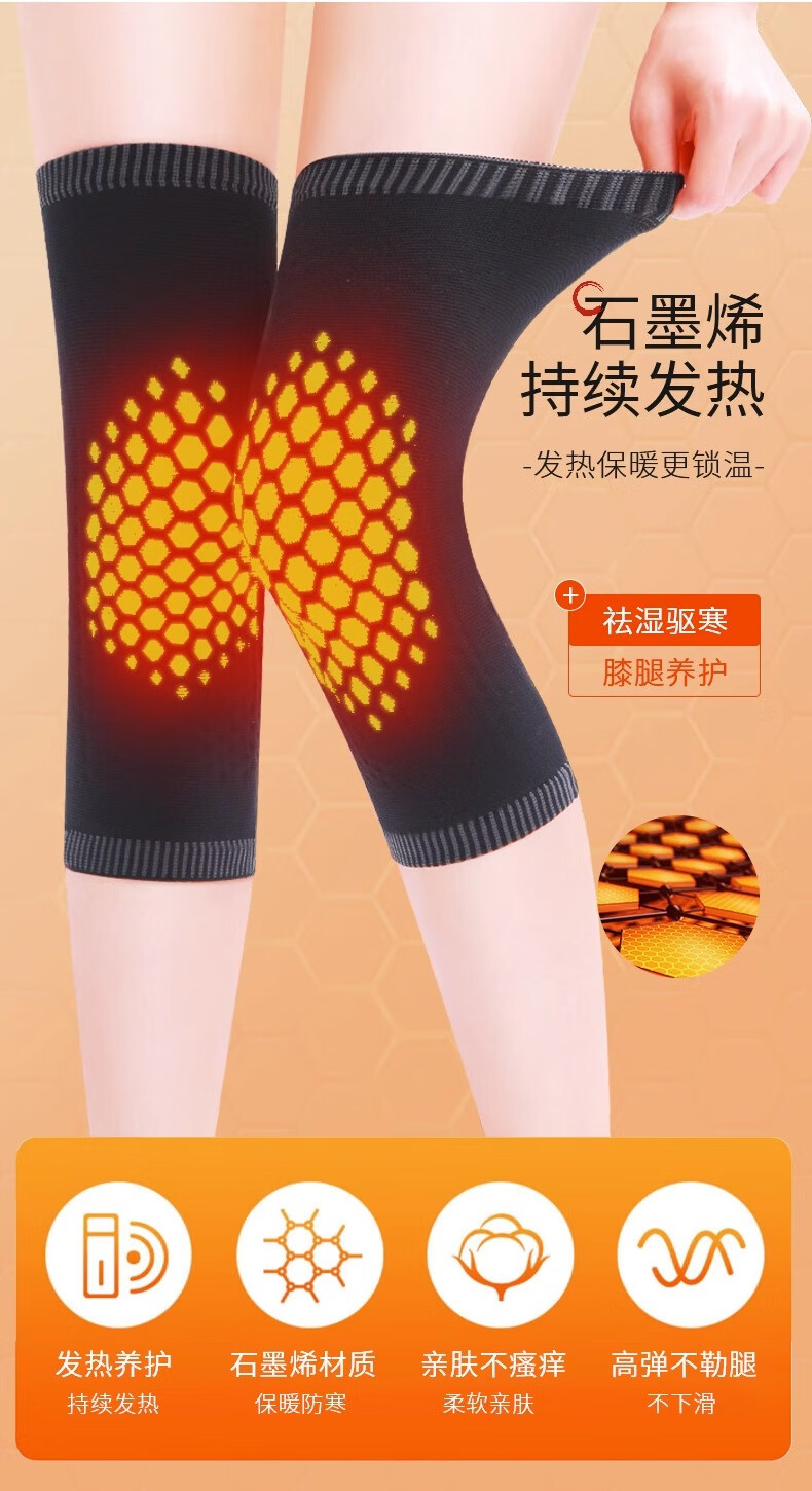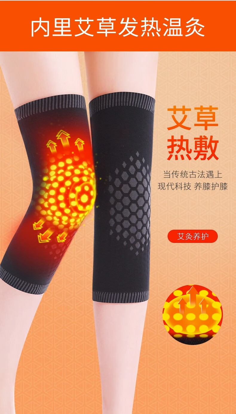 卡润尔德国护膝保暖老寒腿关节炎中老年人防寒艾草自发热加厚防护 秋冬季保暖丨热卖款丨黑色 2只装 L码丨适合腿围33-48cm