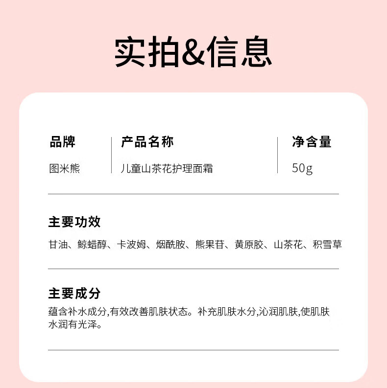 图米熊山茶花面霜男女保湿植物萃取 图米熊山茶花儿童面霜