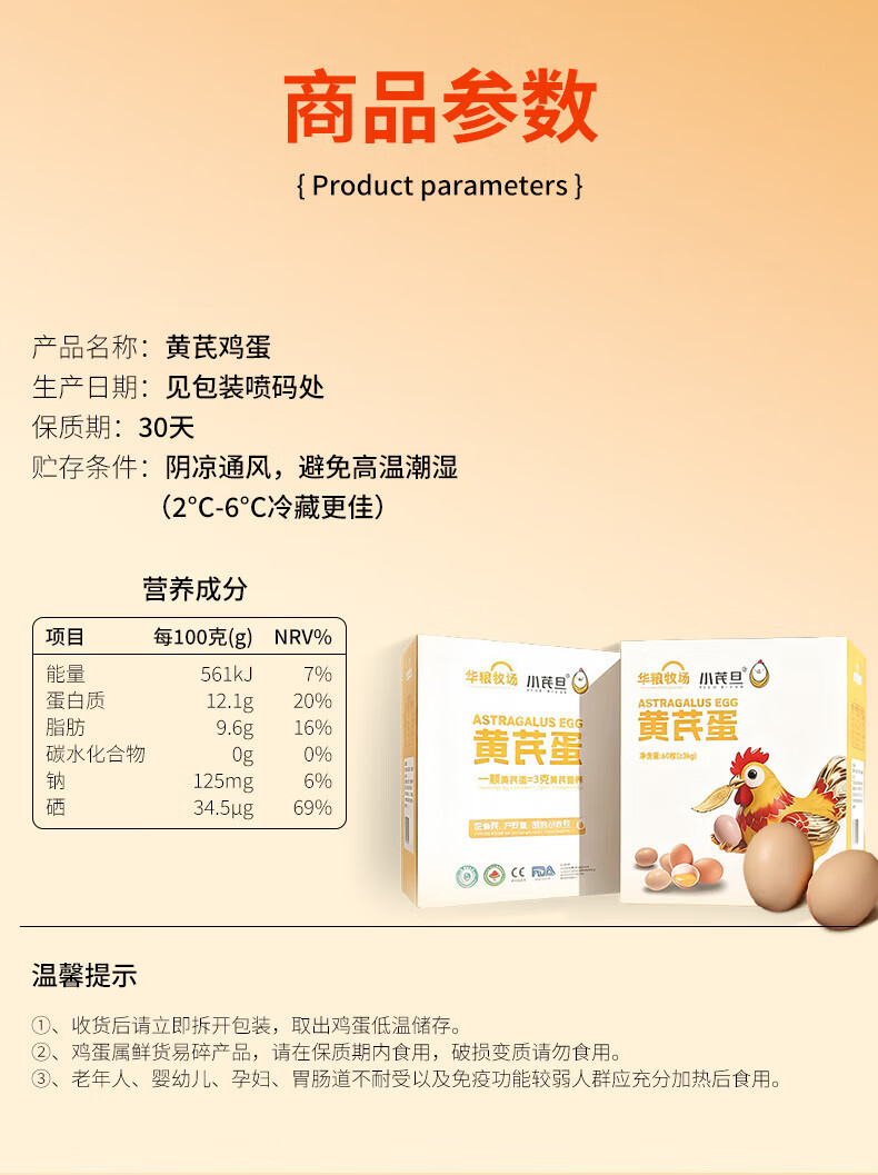 小芪旦黄芪鸡蛋60枚/3000g早餐鸡蛋鲜鸡蛋无抗生素可生食普通装源头直发