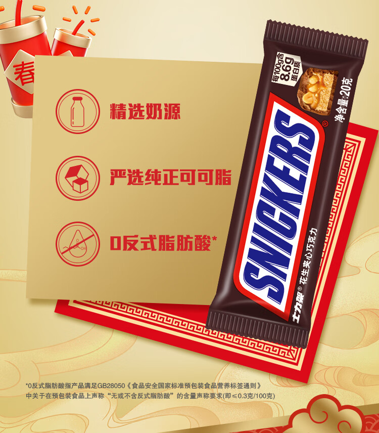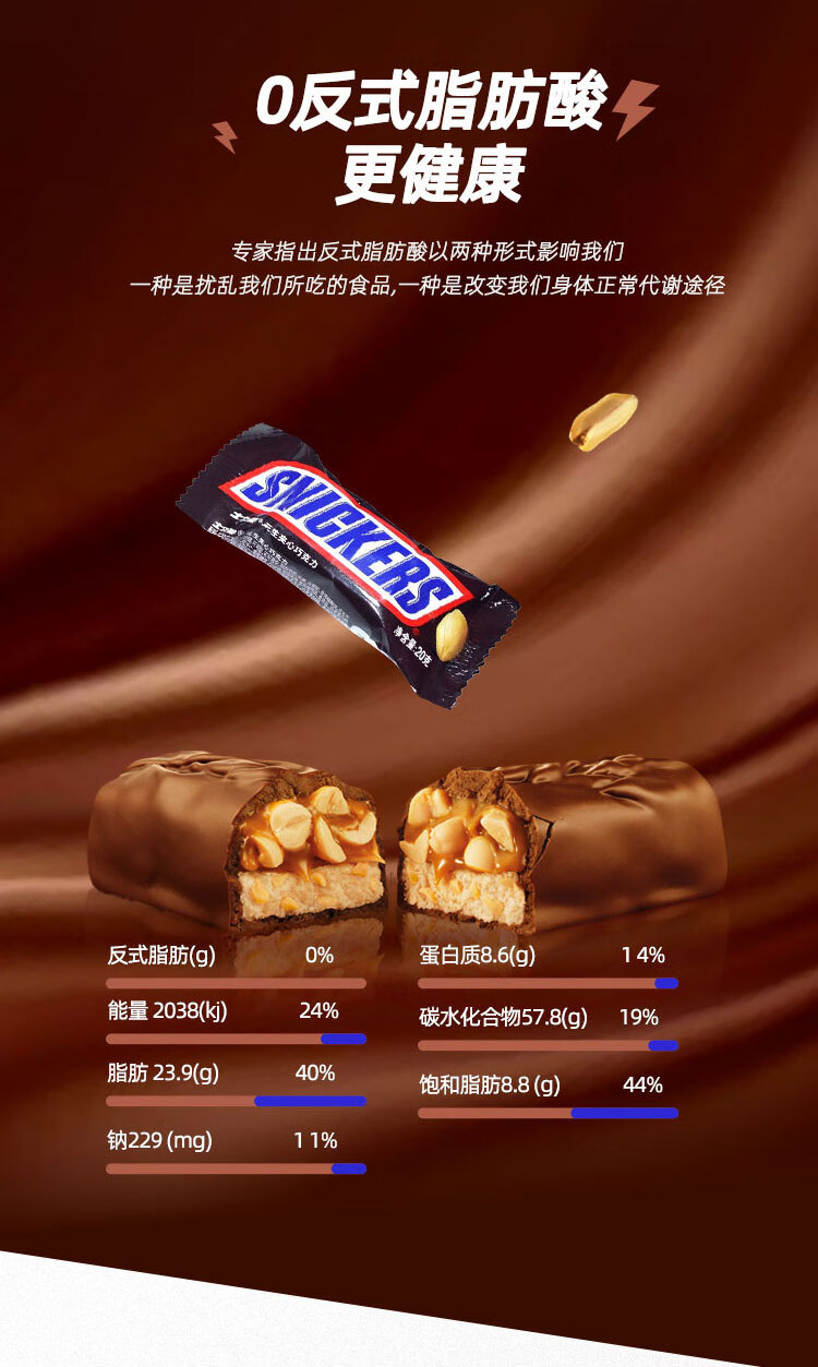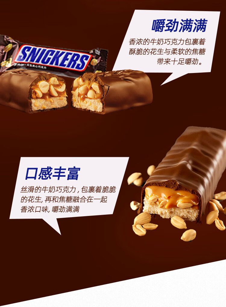 士力架花生夹心巧克力休闲食品办公室充饥零食儿童解馋糖果新年送礼物 士力架巧克力盒装20g*32条(640g)