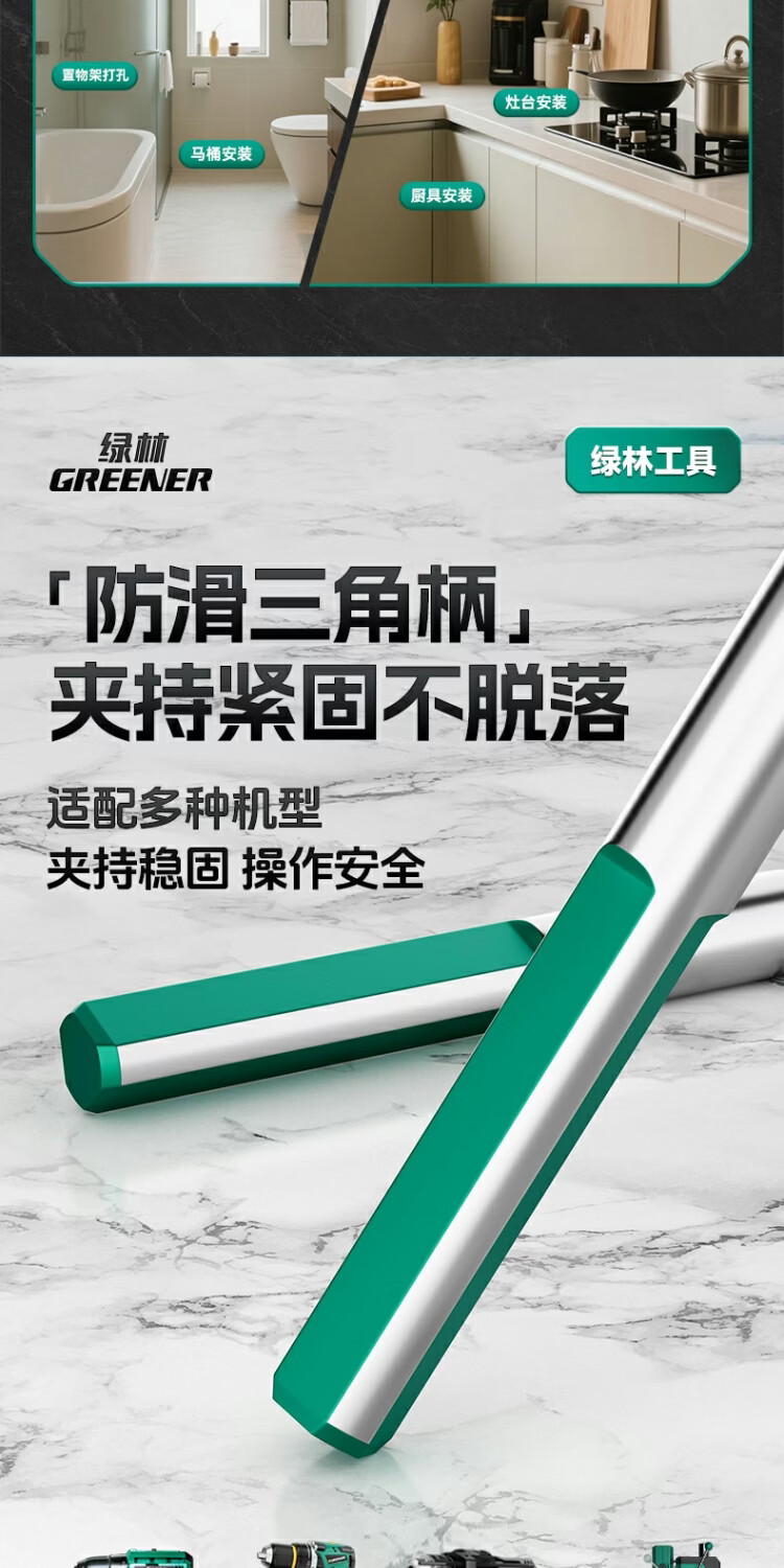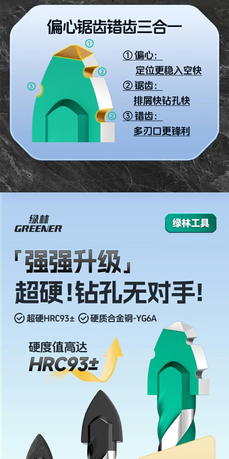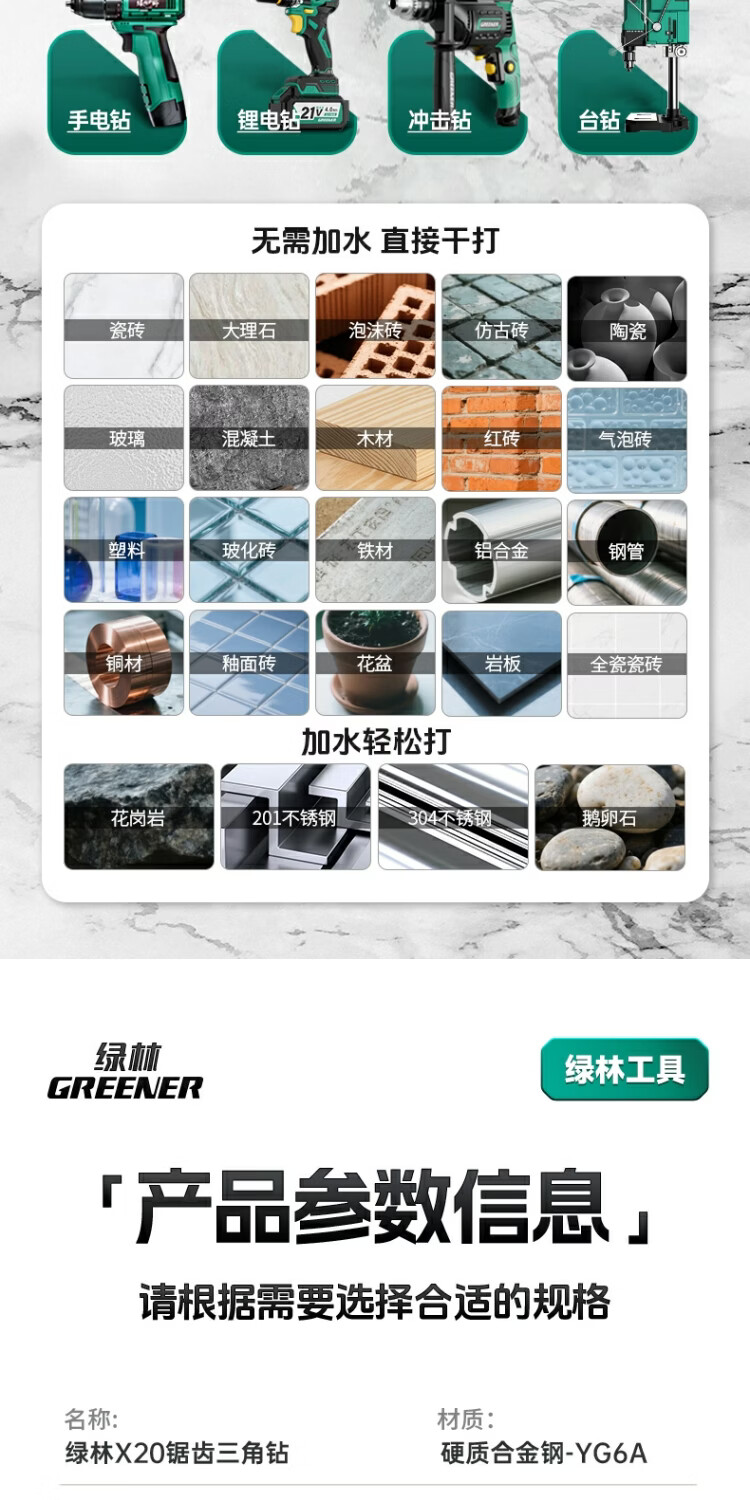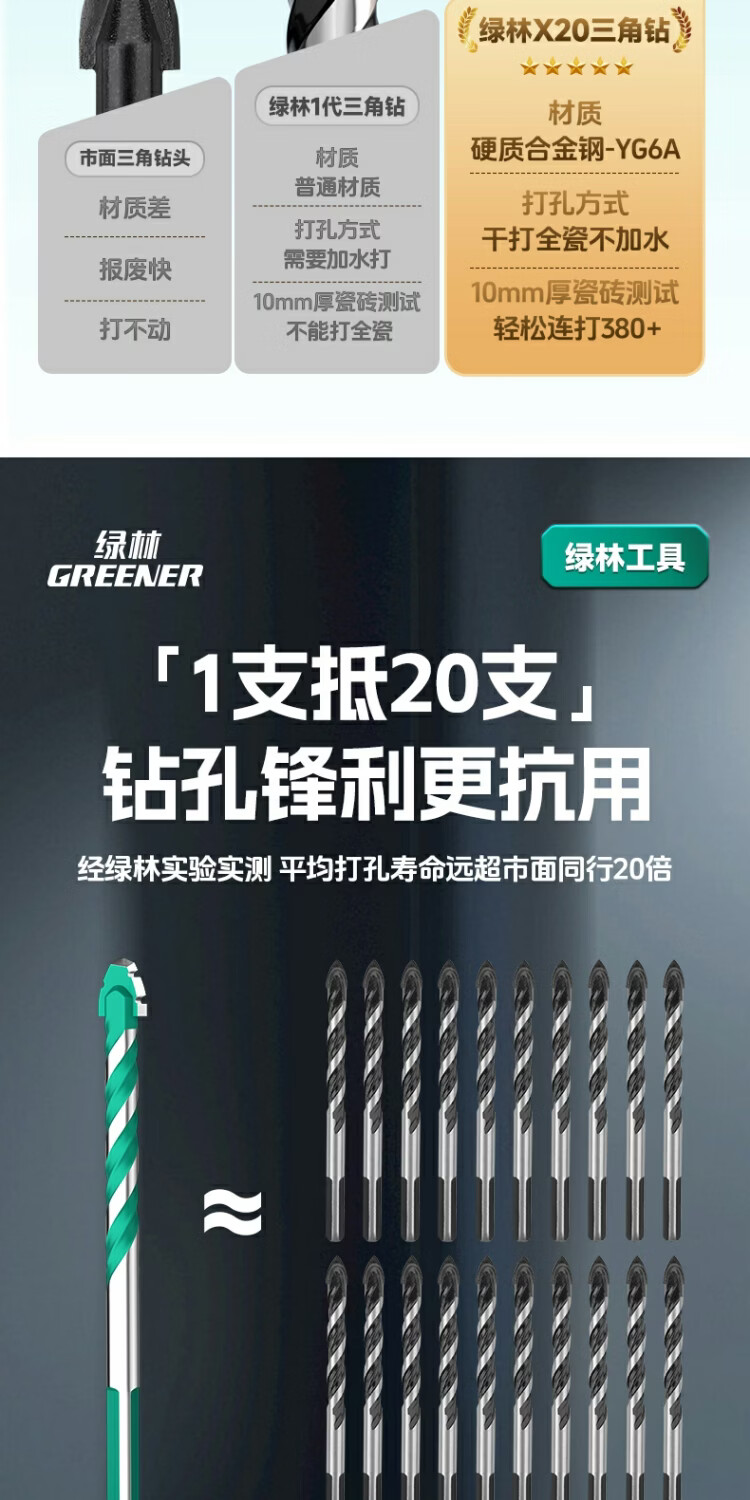 绿林锯齿三角钻头瓷砖打孔钻头偏心专用混凝土高硬度玻璃手电钻6mm X20-锯齿三角钻【8mm】1支装