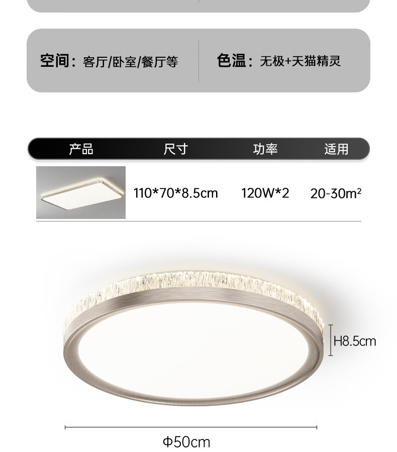 卡伯森意式极简客厅餐厅卧室吸顶灯大气全屋套餐组合防蓝光全光谱护眼灯 套餐1【一室一厅】【无极+天猫精灵】全光谱