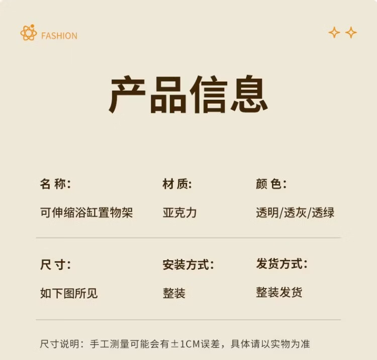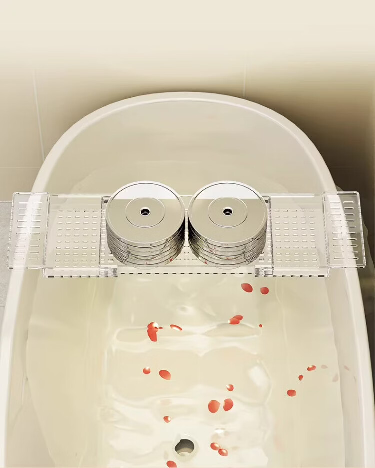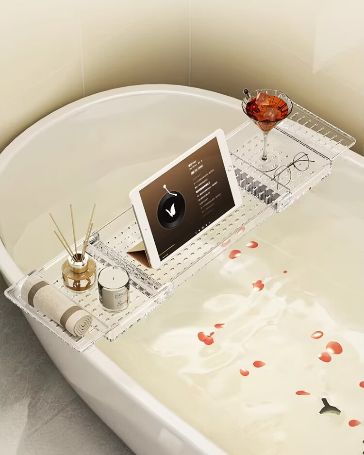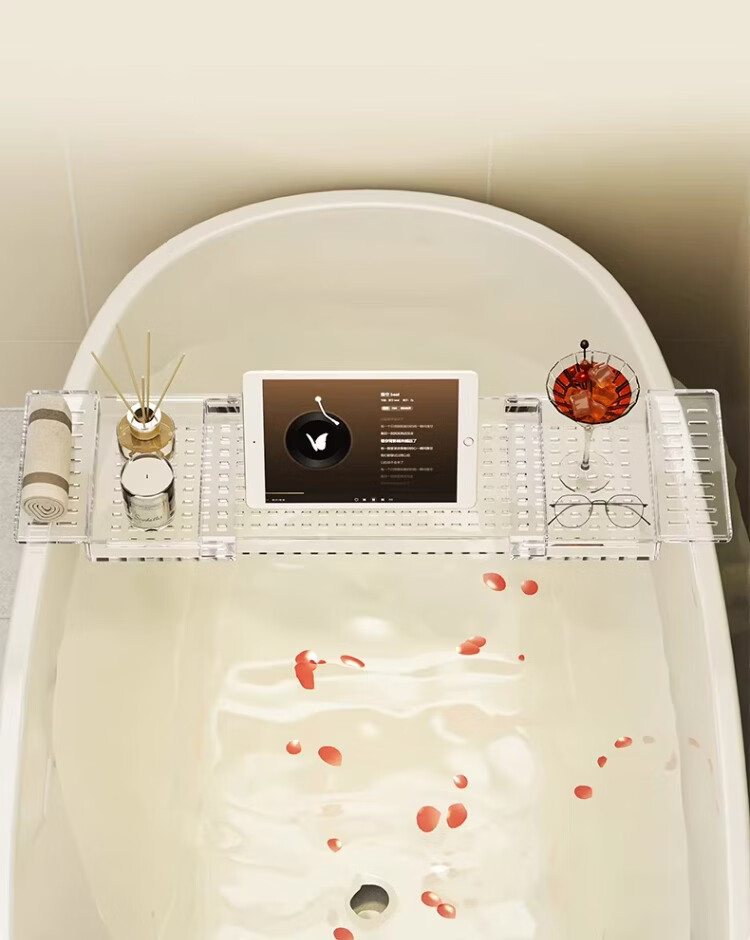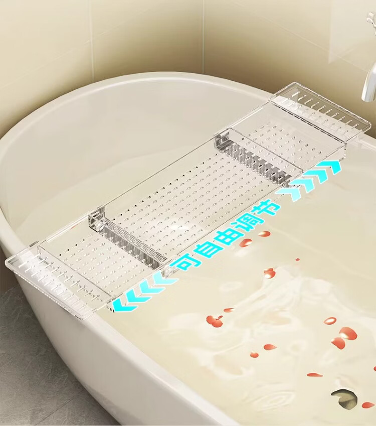 尔思家浴室置物架伸缩置物架浴缸洗漱亚克力多功能可伸缩免安装防滑支架 透明色【可伸缩款】