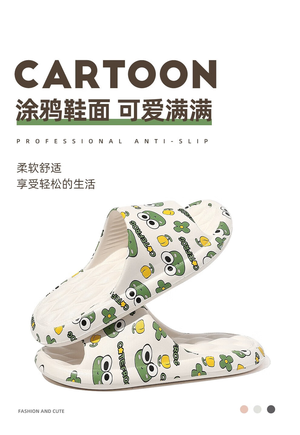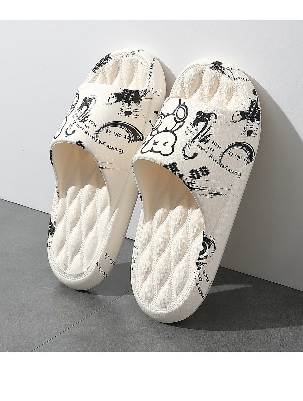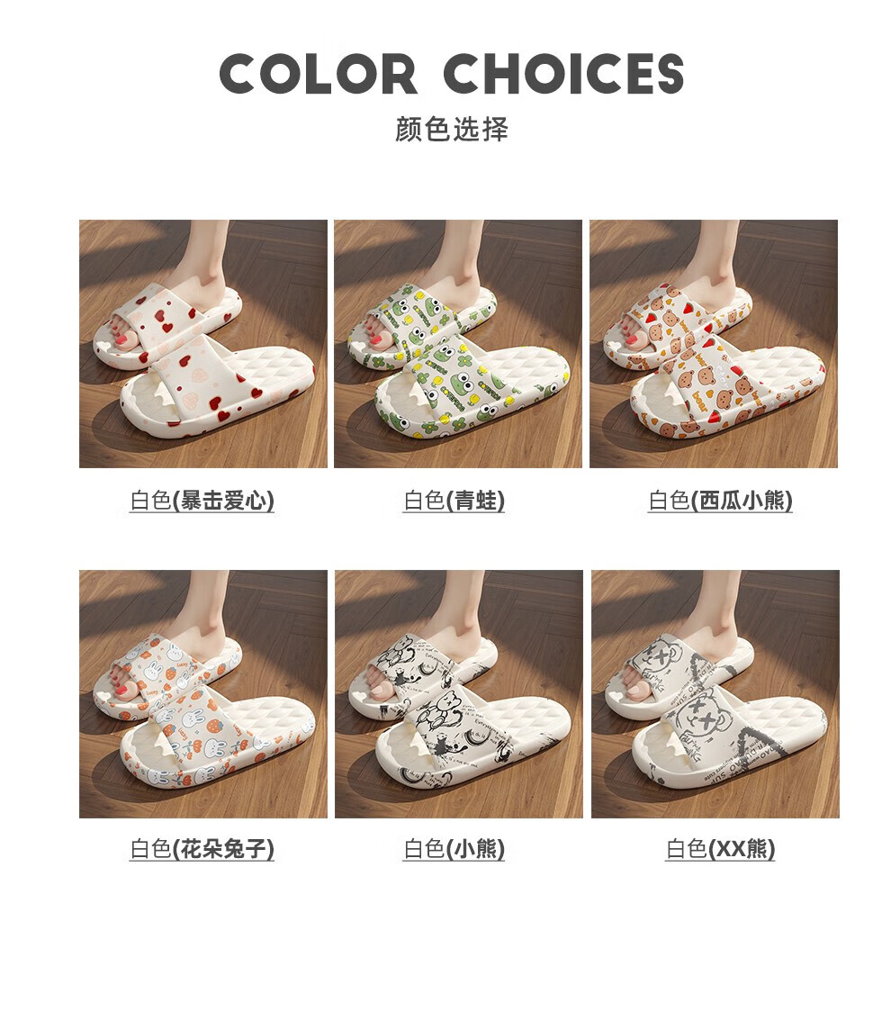 FZT 凉拖鞋女夏季居家外穿可爱卡通柔软浴室静音防滑按摩情侣拖鞋男 白色【炫彩蝴蝶】 48-49 【内长2995MM】