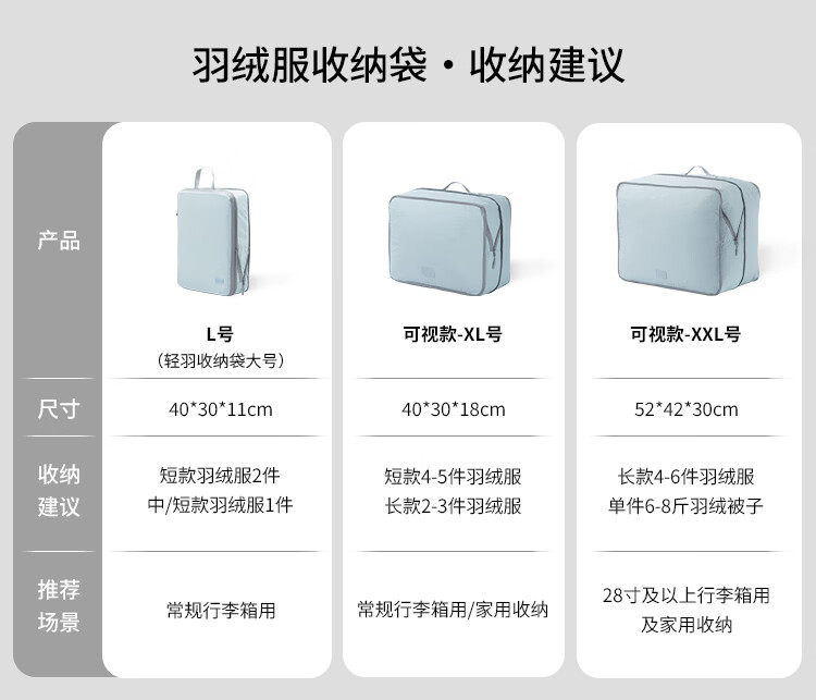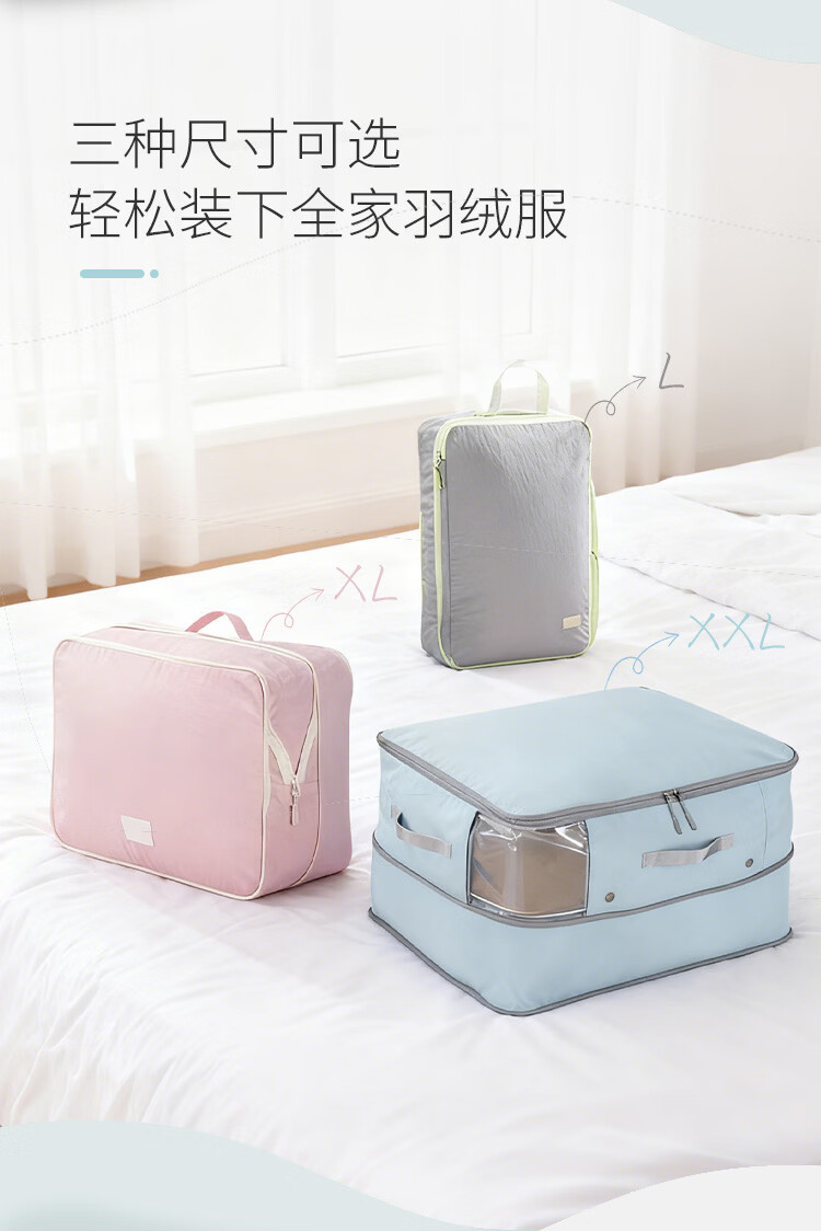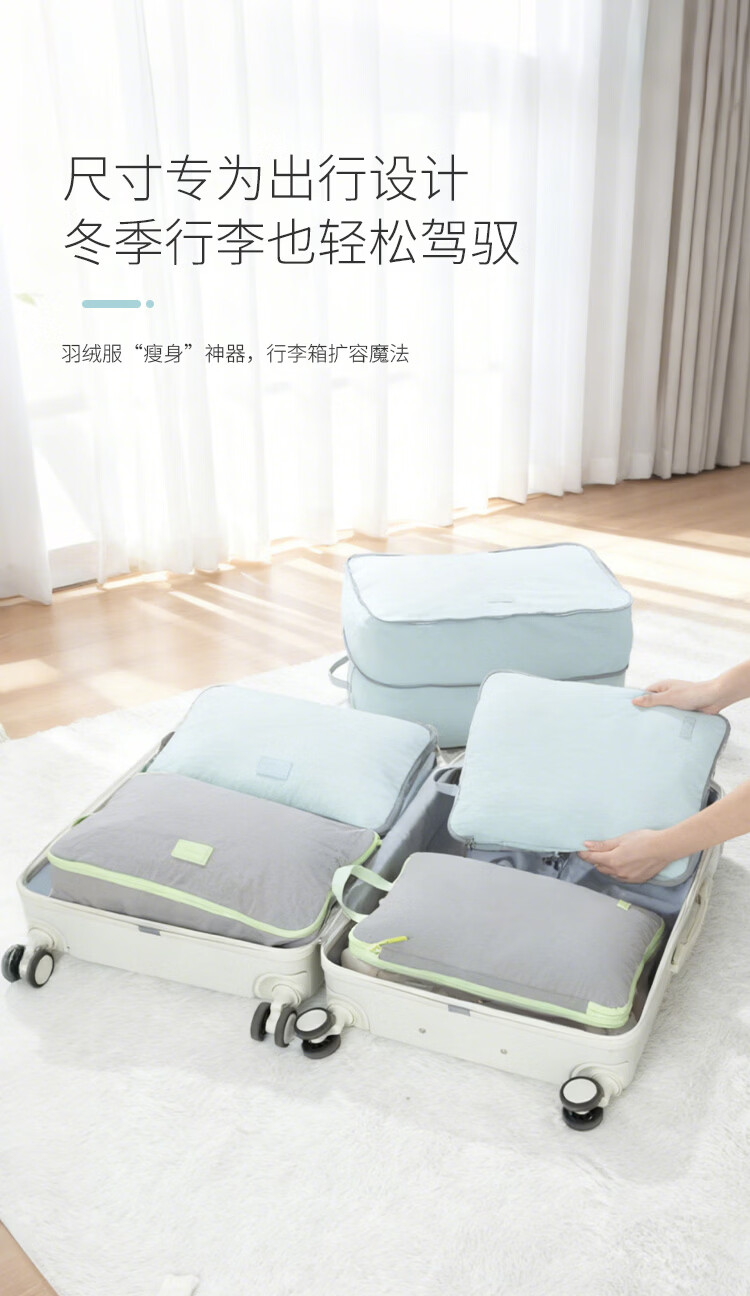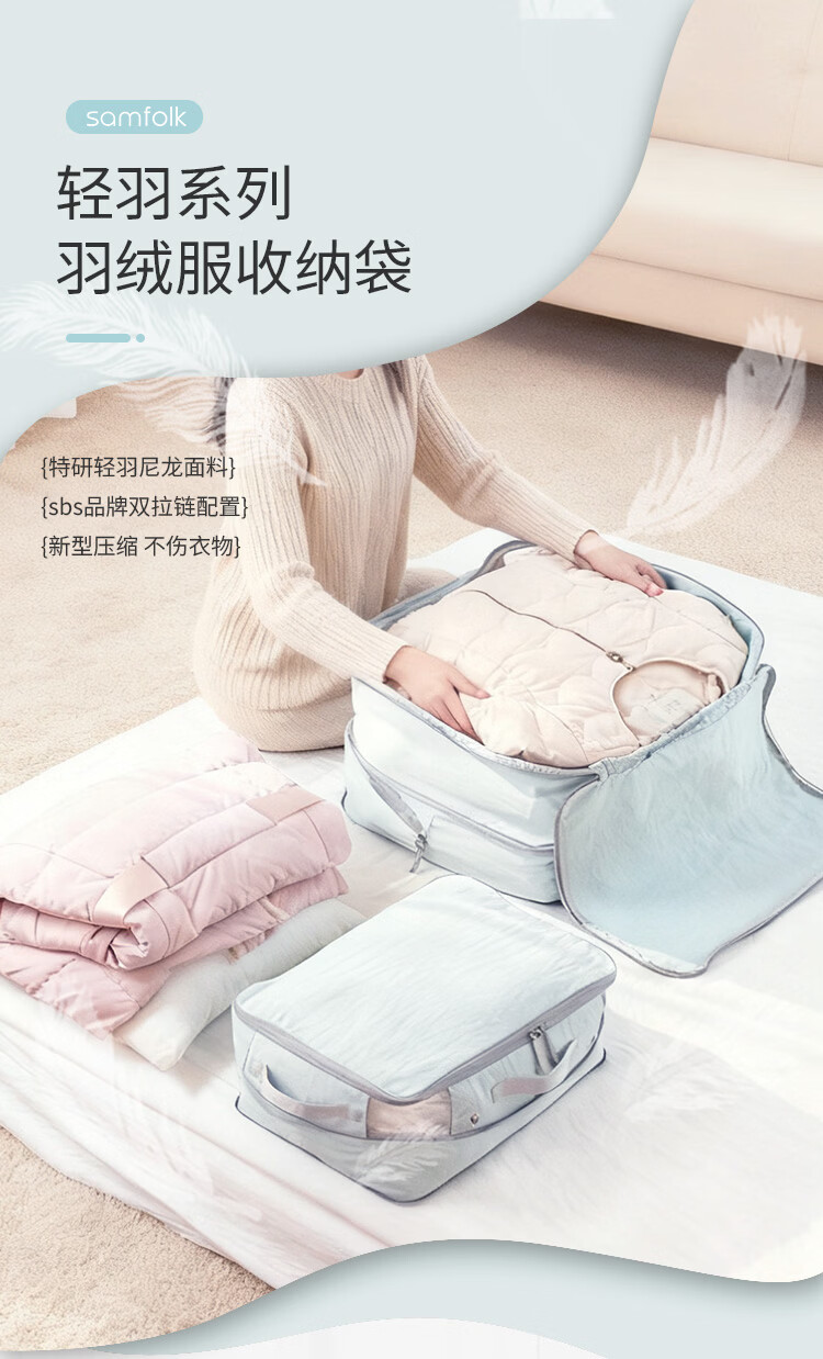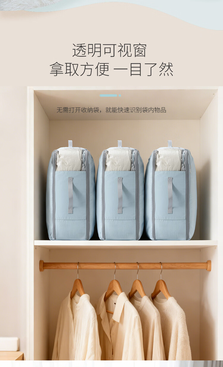 Samfolk羽绒服收纳袋可视压缩被子四件套行李箱衣物分装整理收纳包旅行 晨雾蓝 不可视-L号