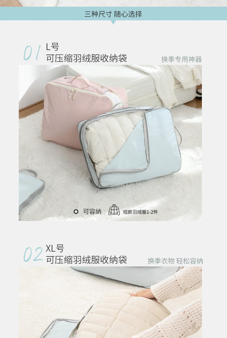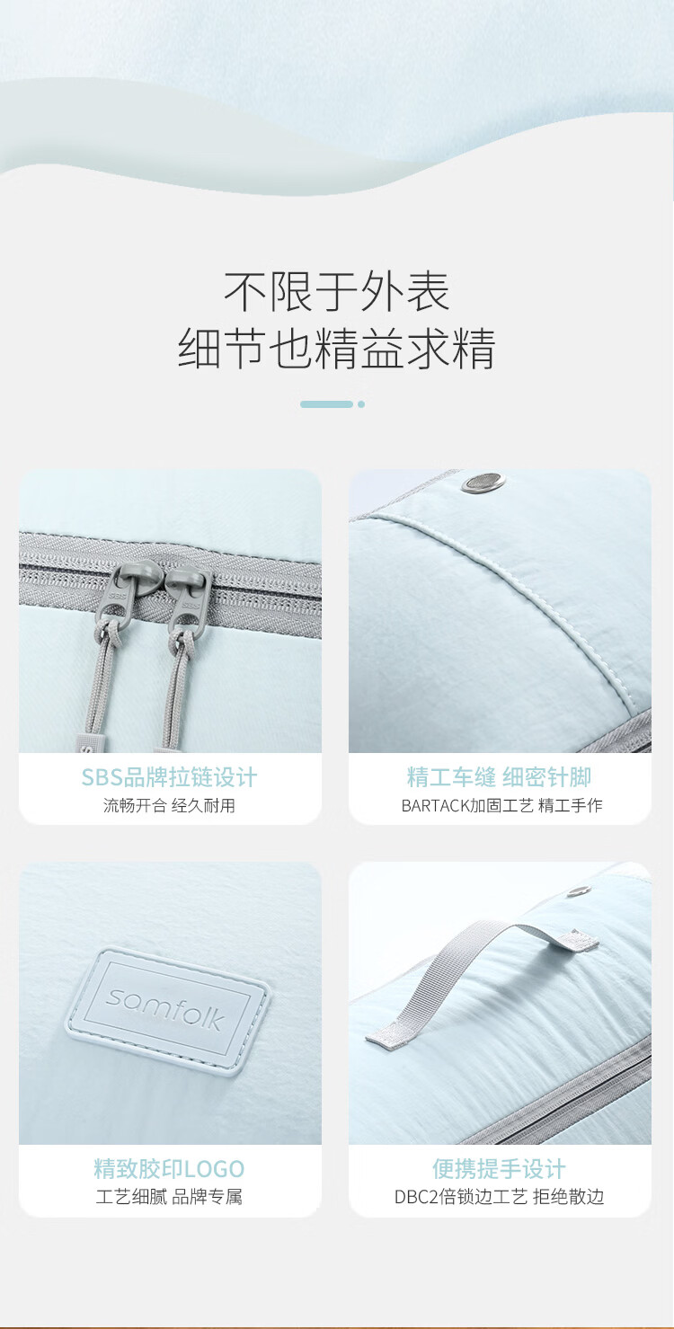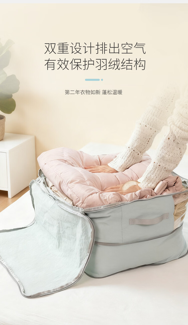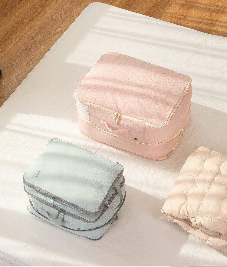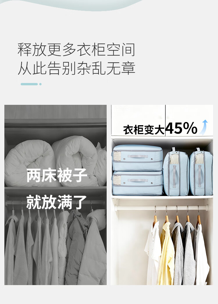 Samfolk羽绒服收纳袋可视压缩被子四件套行李箱衣物分装整理收纳包旅行 晨雾蓝 不可视-L号