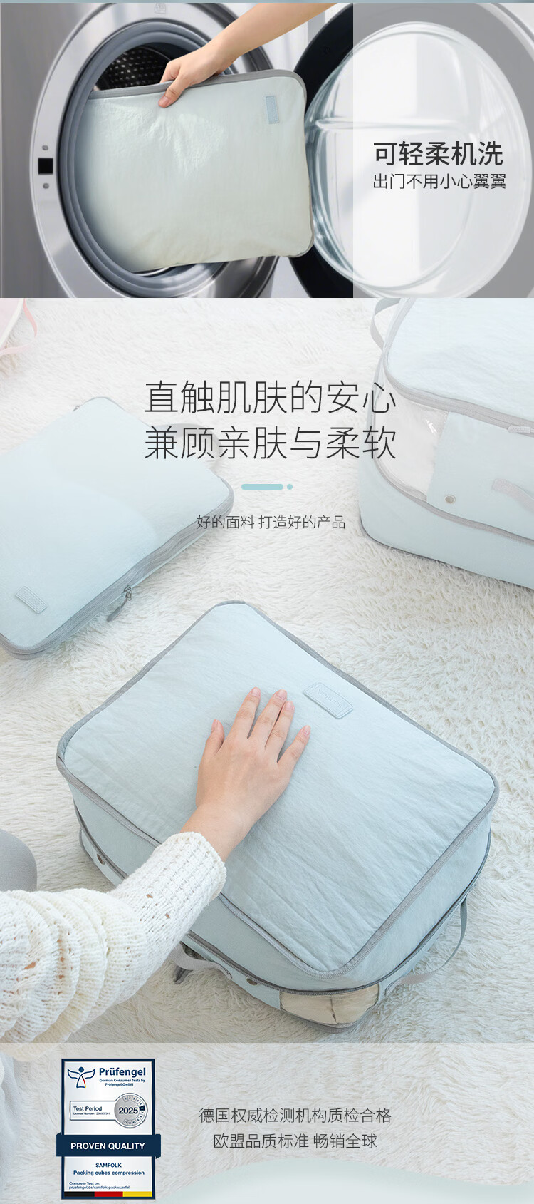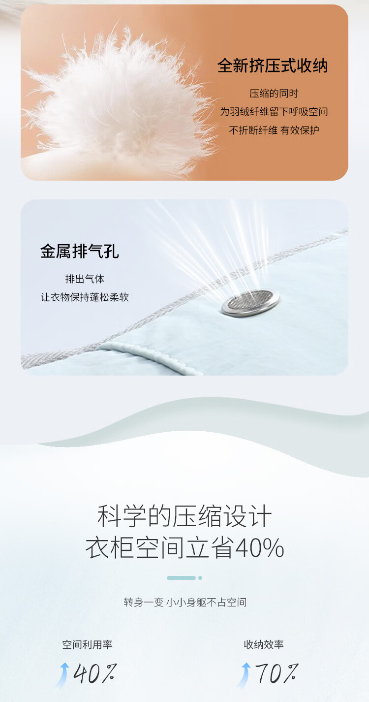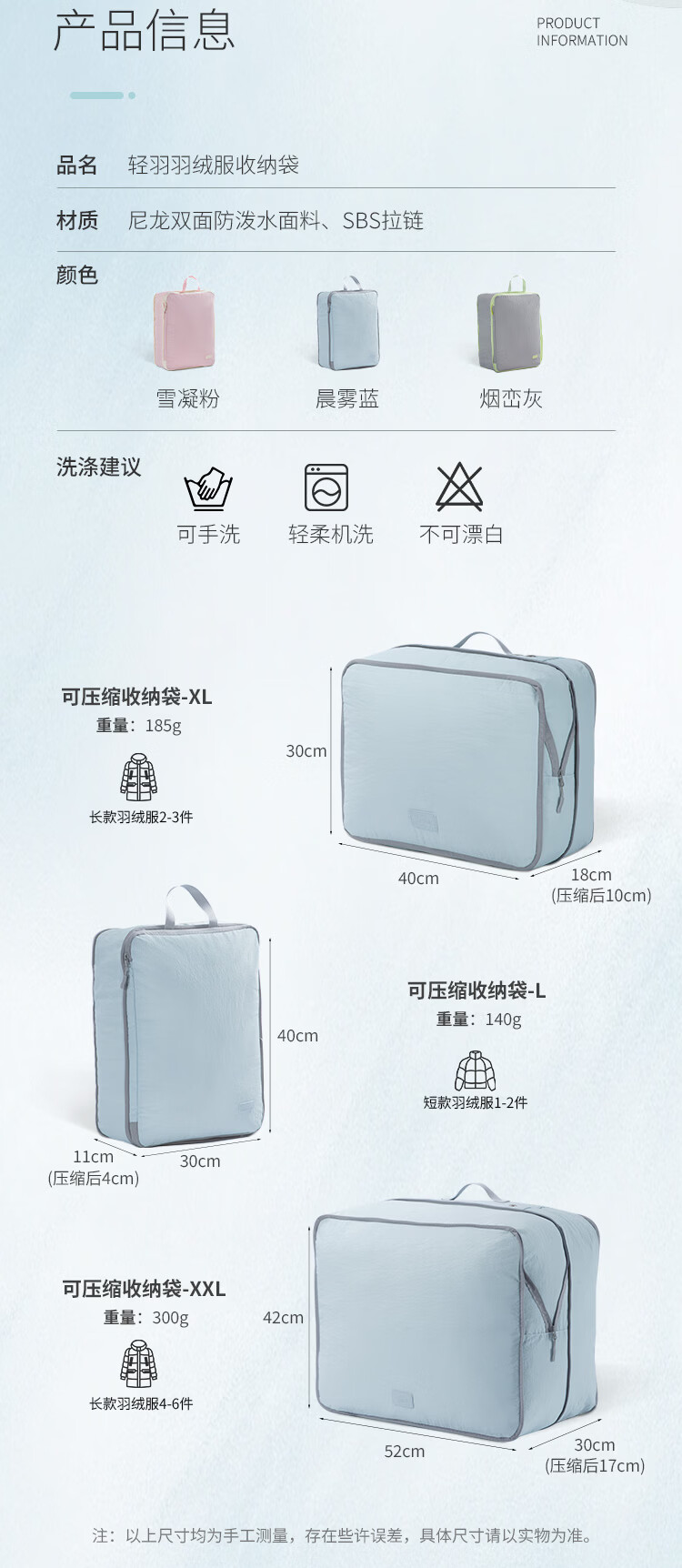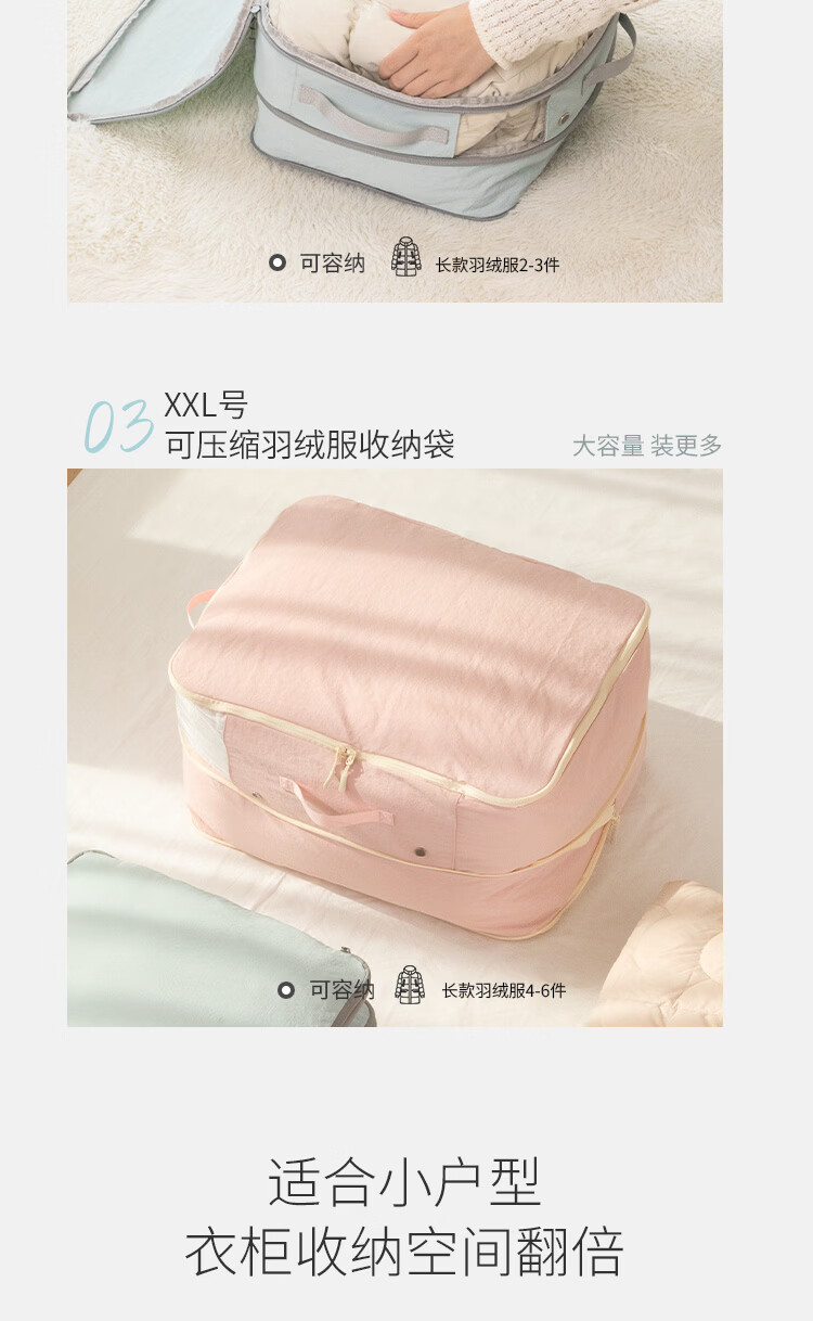 Samfolk羽绒服收纳袋可视压缩被子四件套行李箱衣物分装整理收纳包旅行 晨雾蓝 不可视-L号