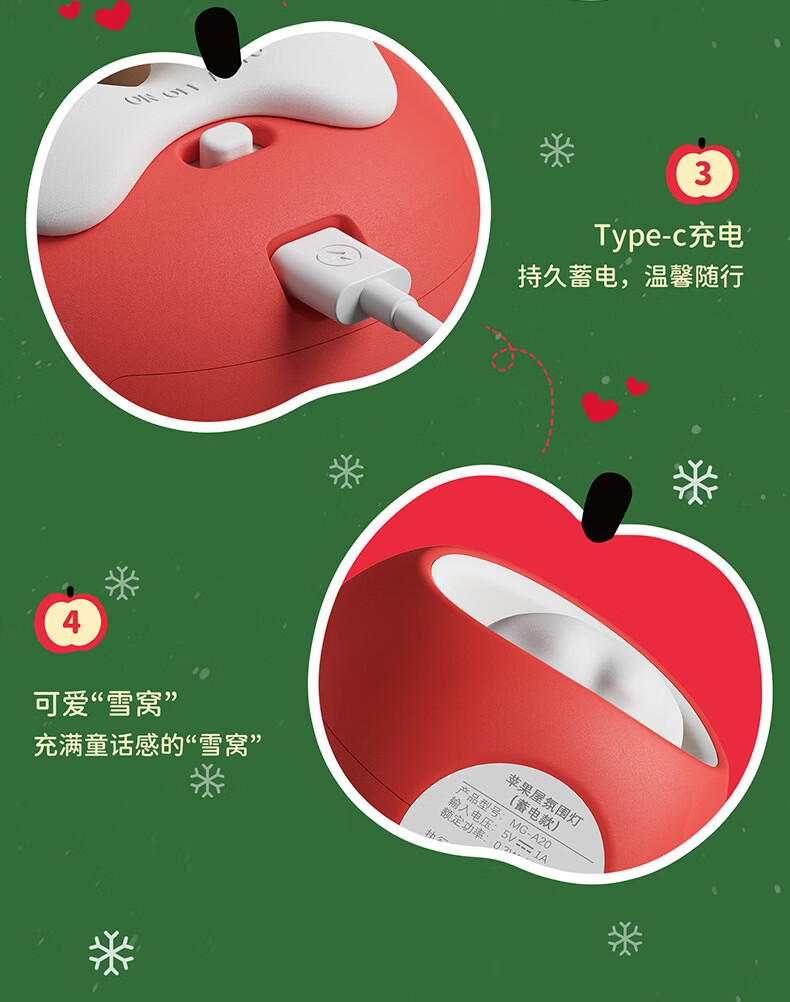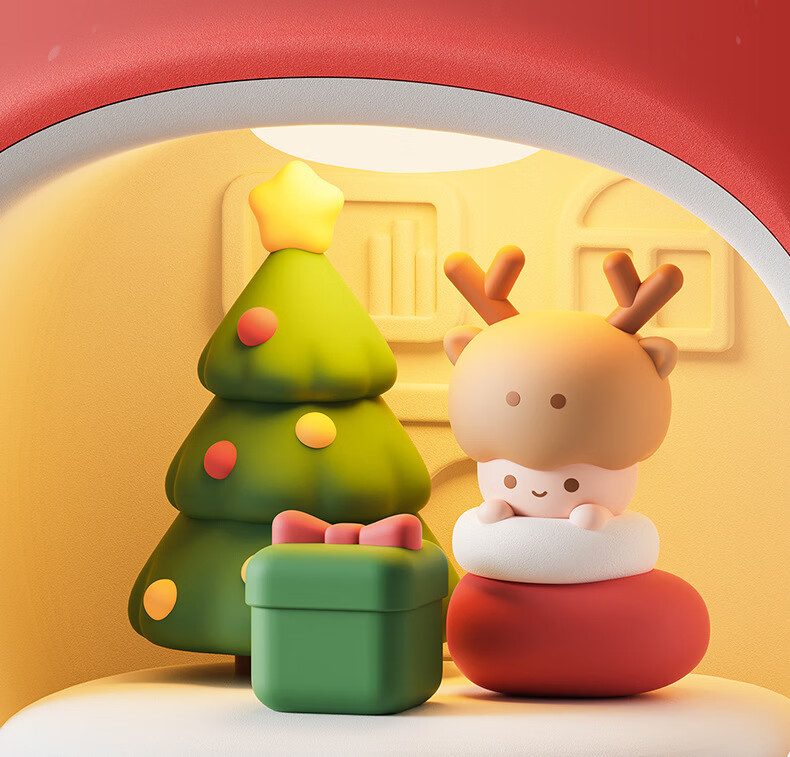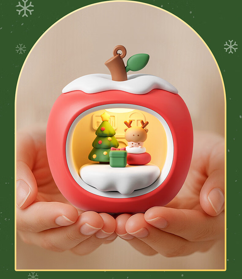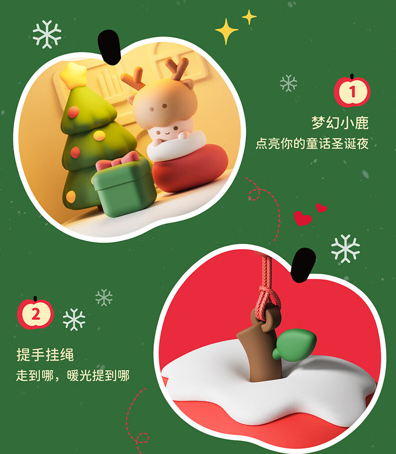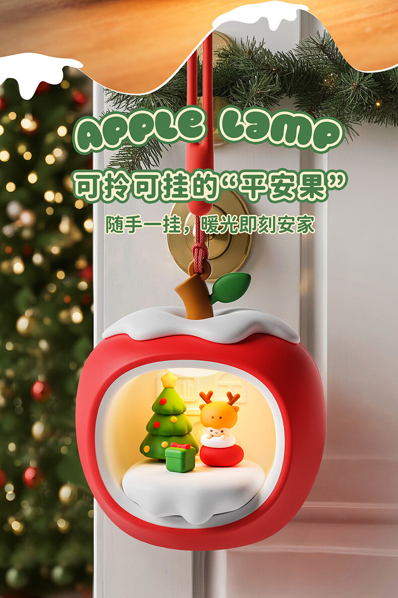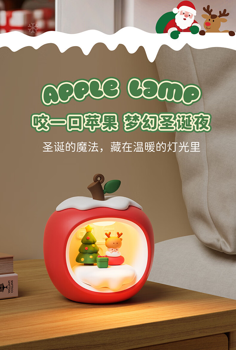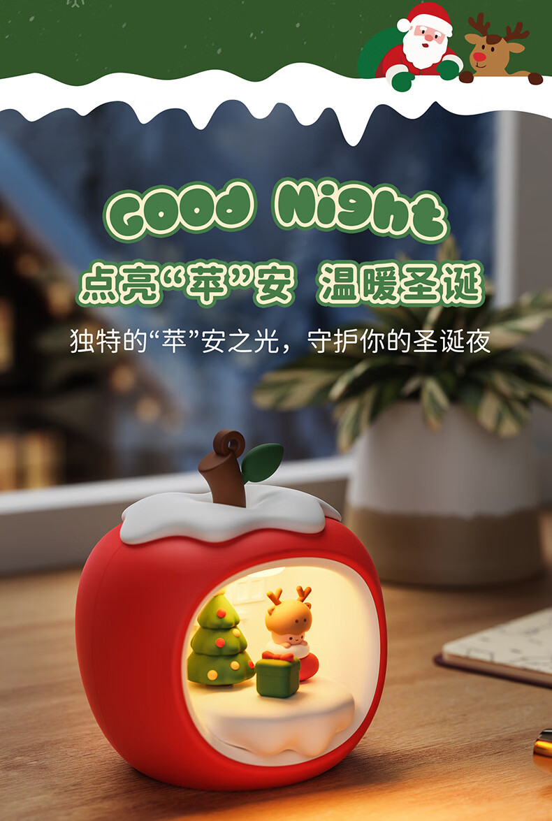 OUMIRO圣诞礼物灯苹果屋小夜灯猫咪伴睡USB充电卧室床头摆件家居氛围 圣诞【电池款】