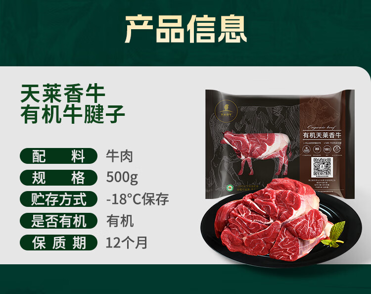 天莱香牛新疆有机牛腱子肉1斤谷饲国产牛肉生鲜酱卤牛肉清真【真原切】