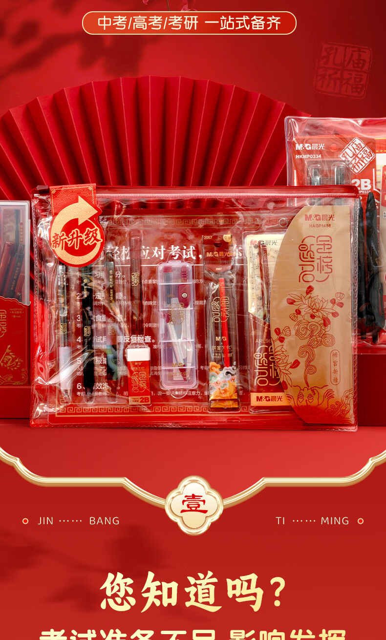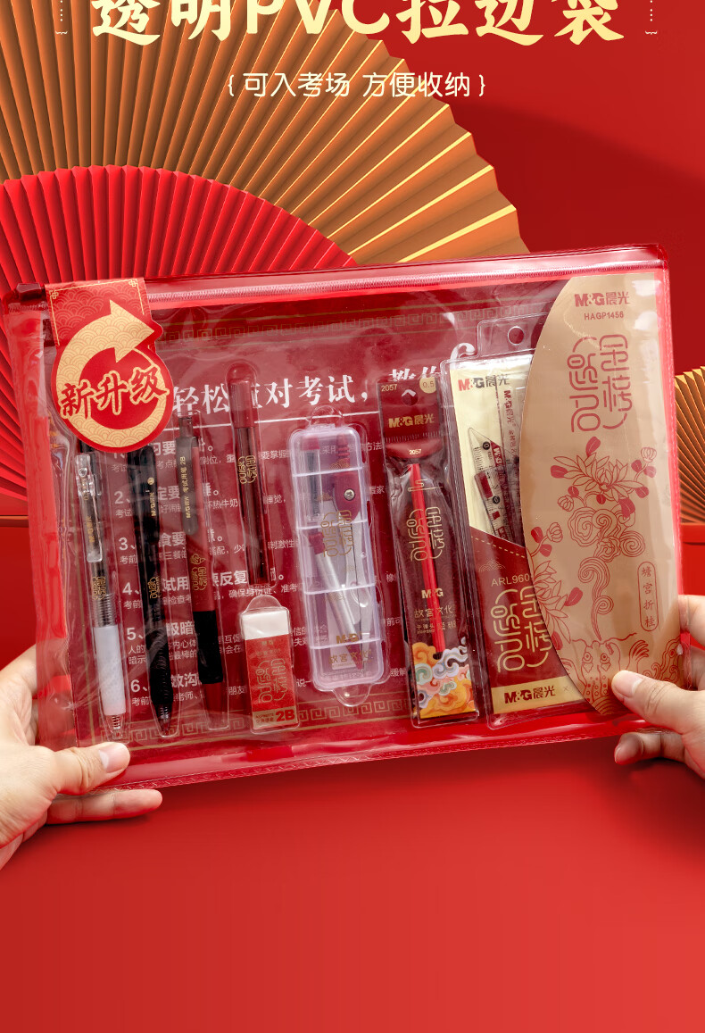 晨光(M&G)文具故宫金榜题名学生考试透明套装国考中考高考必备套装 中性笔/涂卡笔/替芯/橡皮/尺规 15件套