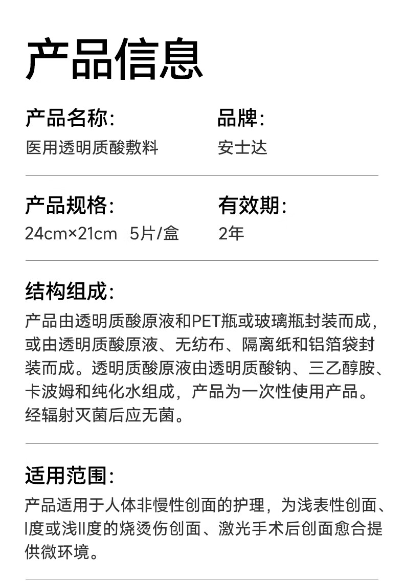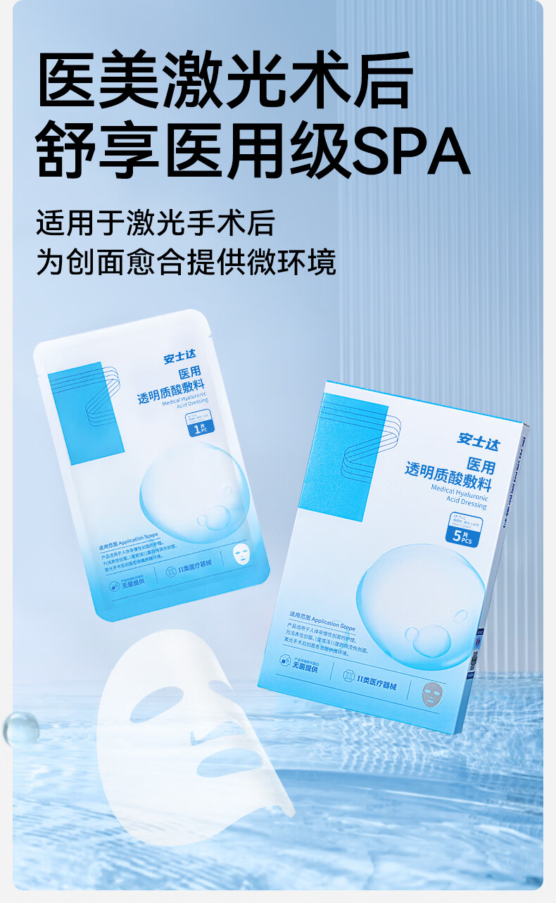 振德医用透明质酸敷料医美术后日常补水修护面部贴膜械字号 1片
