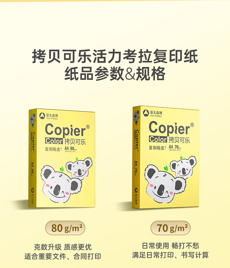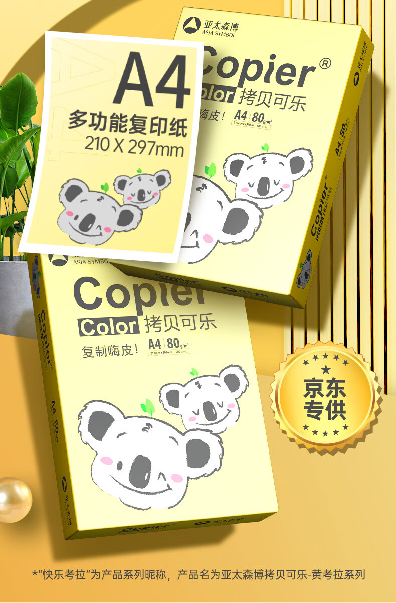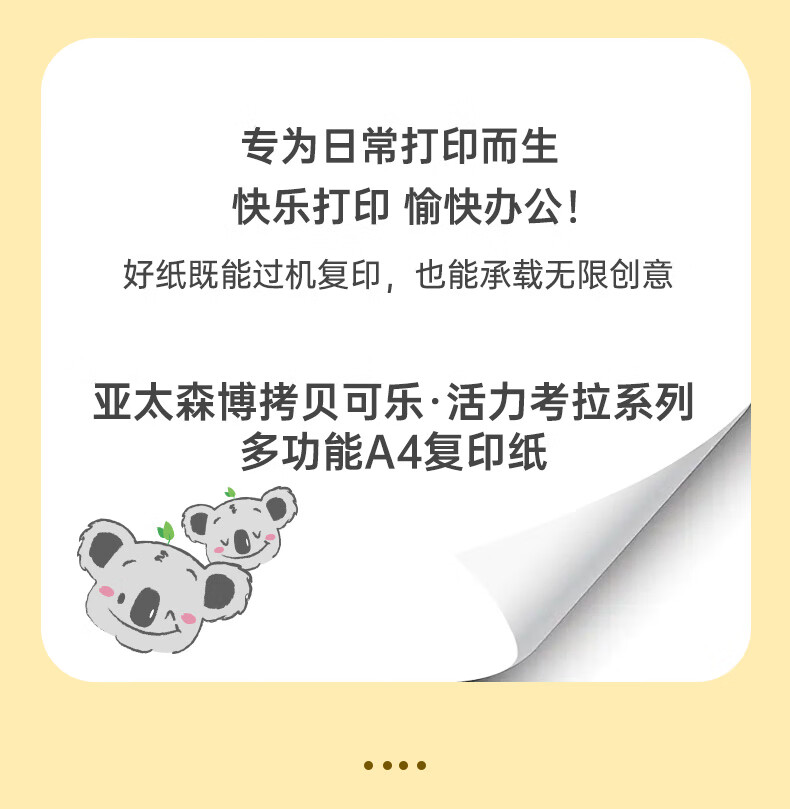 百旺快乐考拉A4纸 80g500张*5包一箱 办公用纸 顺滑打印 高性价比复印纸2500张整箱【造纸源头厂牌】