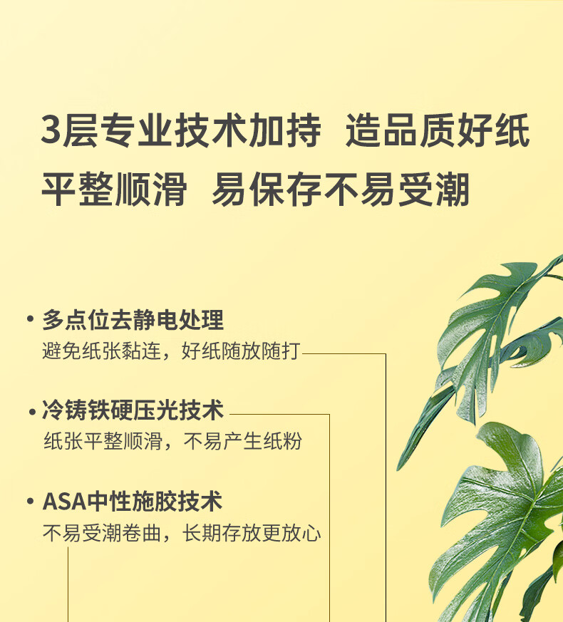 京东京造A4打印纸 70g复印纸 釉彩甄享系列 中高档品质 双面草稿纸 500张/包 10包/箱(5000张)