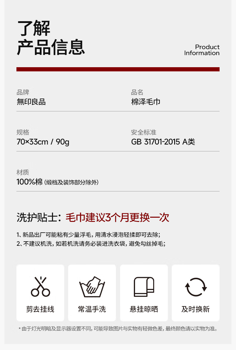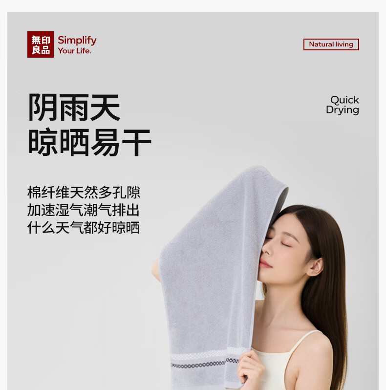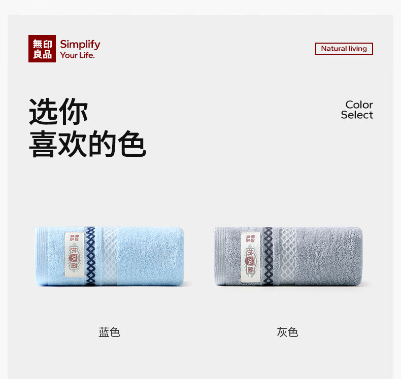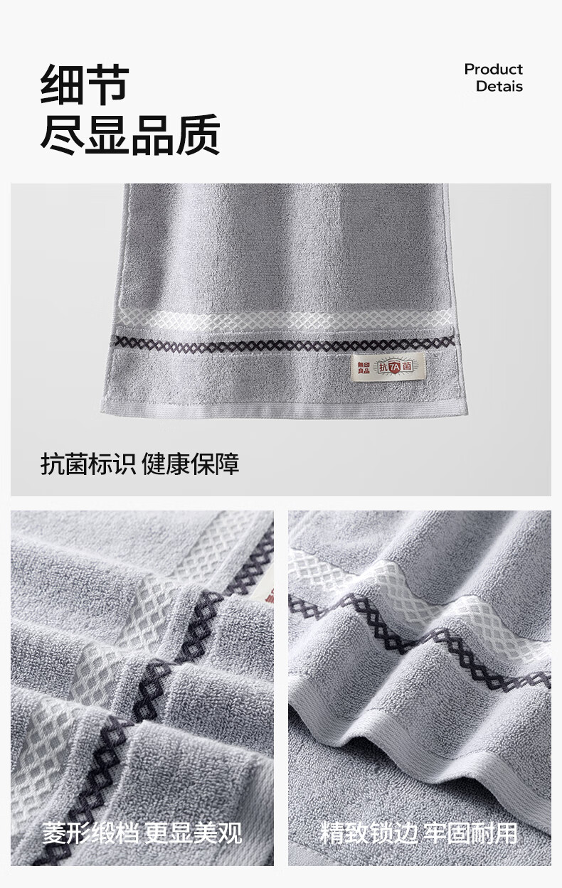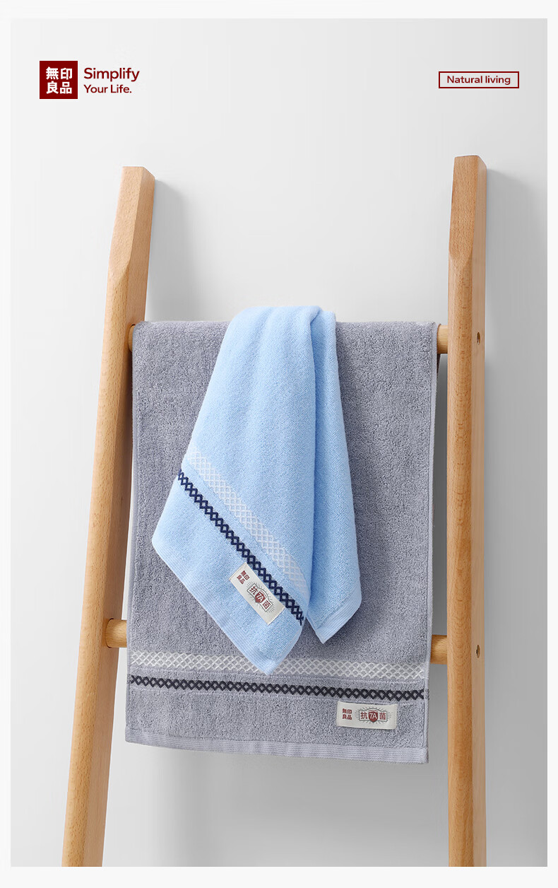 无印良品毛巾7A级抗菌强吸水不易掉毛男士加厚2条装A类洗脸大毛巾115g/条