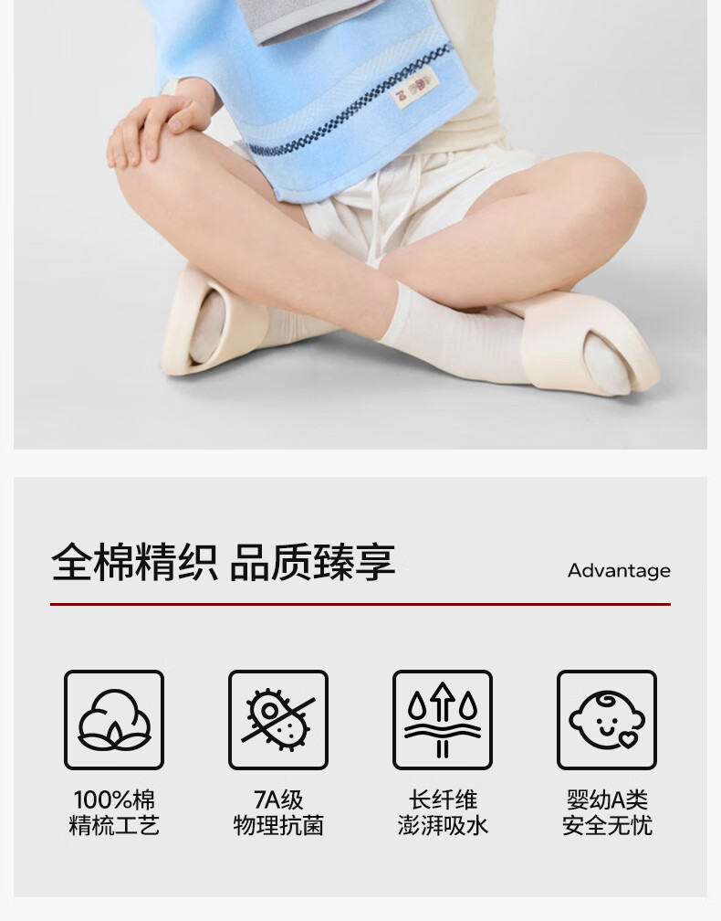无印良品儿童毛巾4条装7A级抗菌100%纯棉童巾新疆全棉洗脸洗澡纱布口水巾
