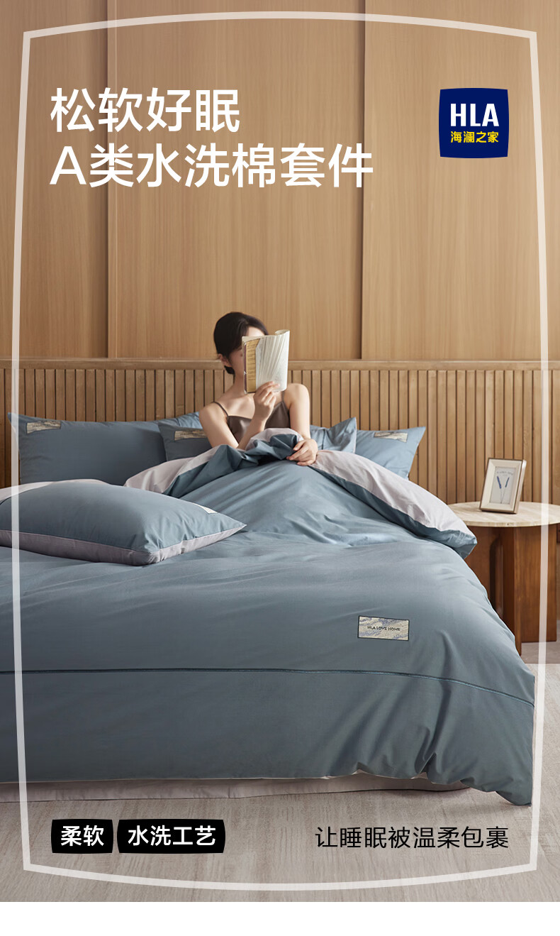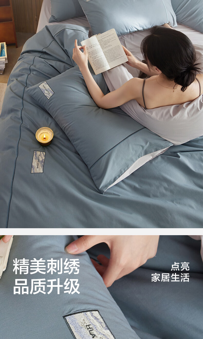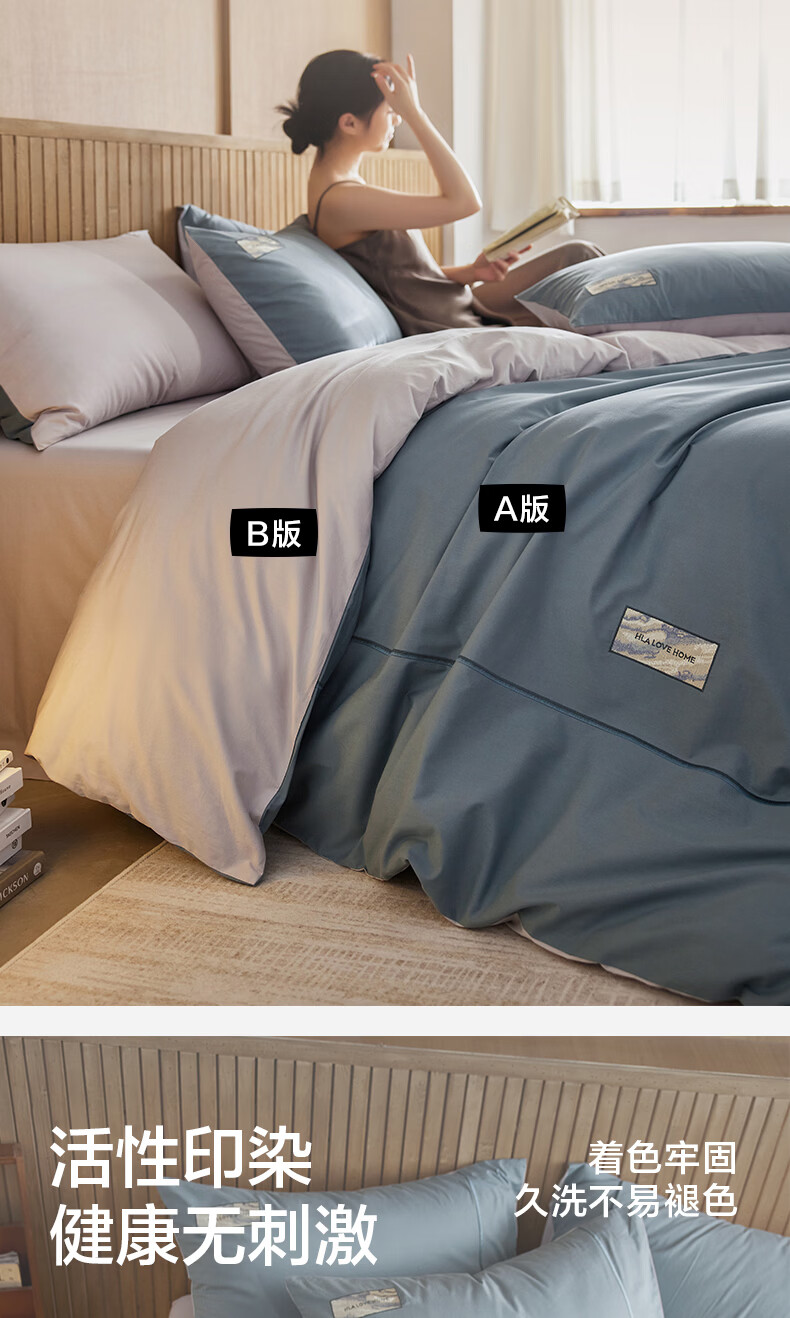 海澜之家(HLA)床上四件套纯棉100%棉高支高密柔软亲肤家用宿舍酒店床单被罩被套 水冰蓝+宝石蓝【100%棉 触感舒适】 三件套/被套150*200 床单款 180*230