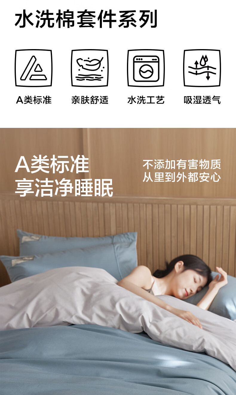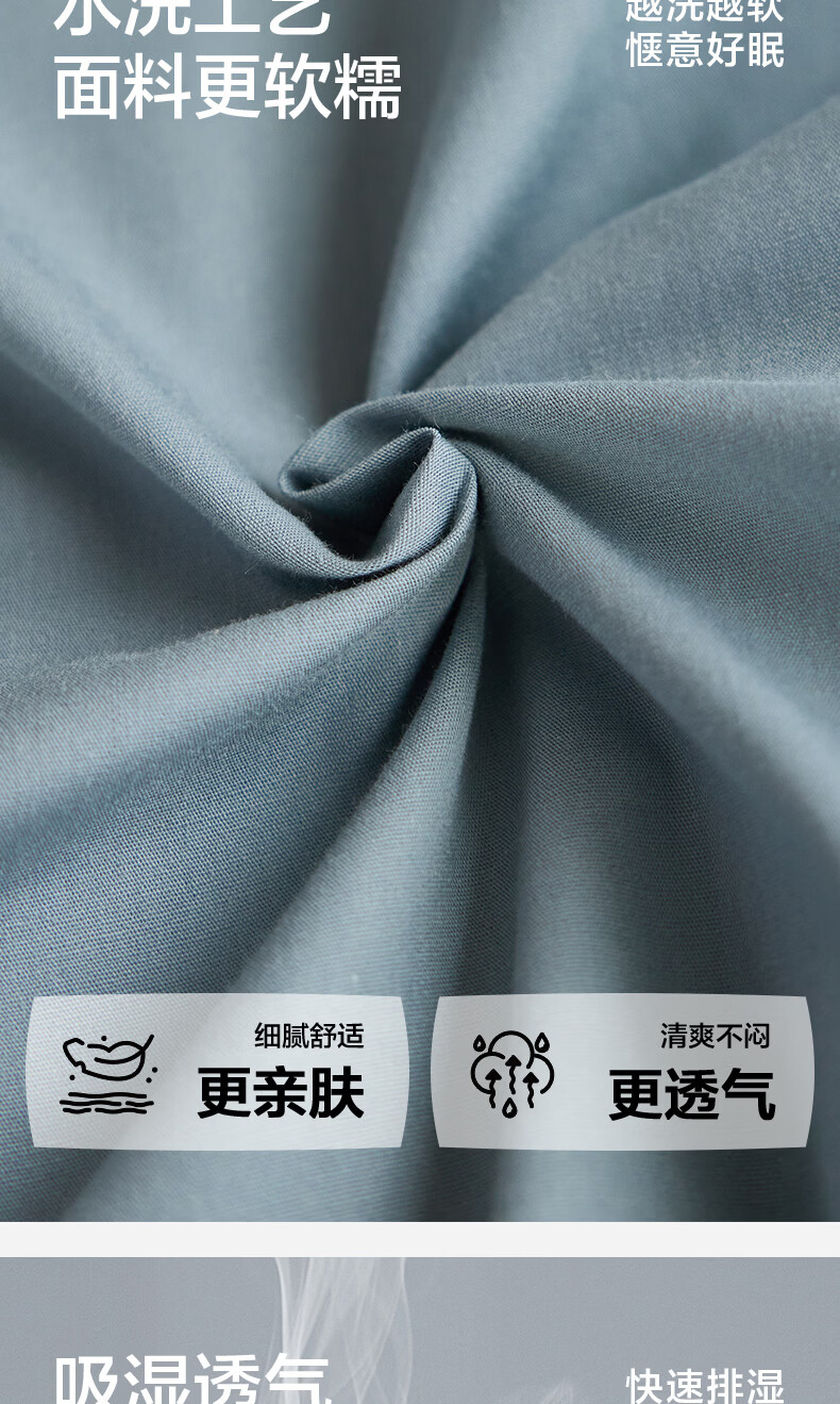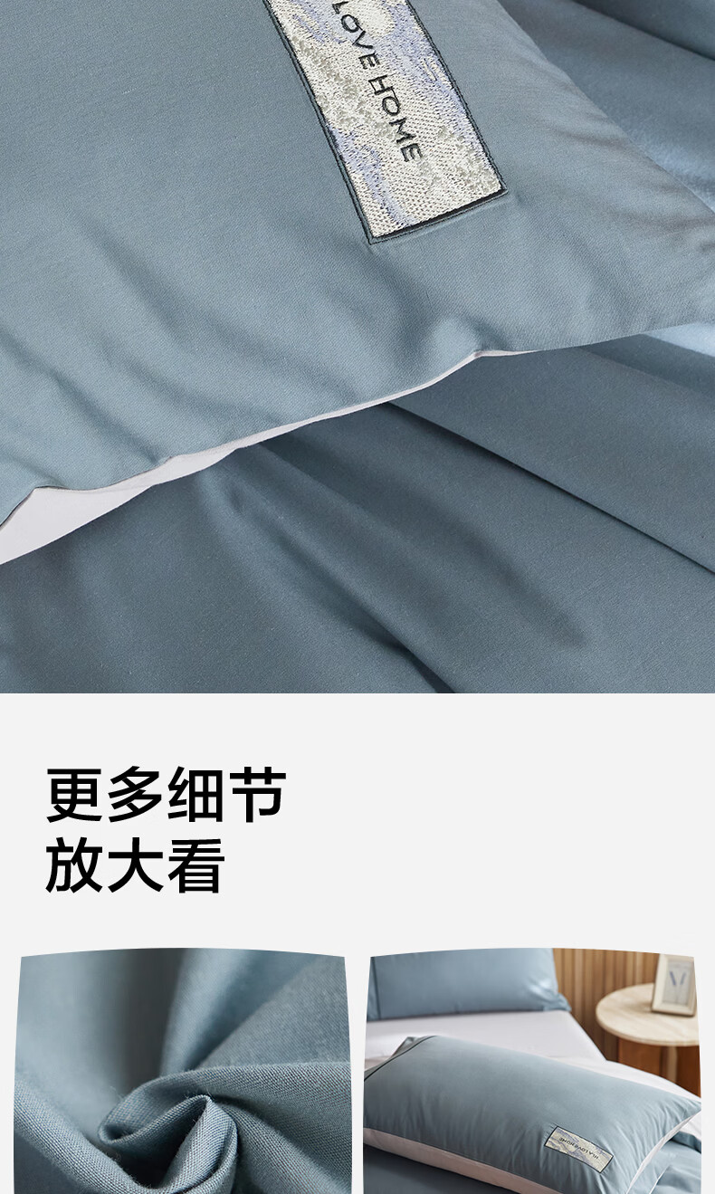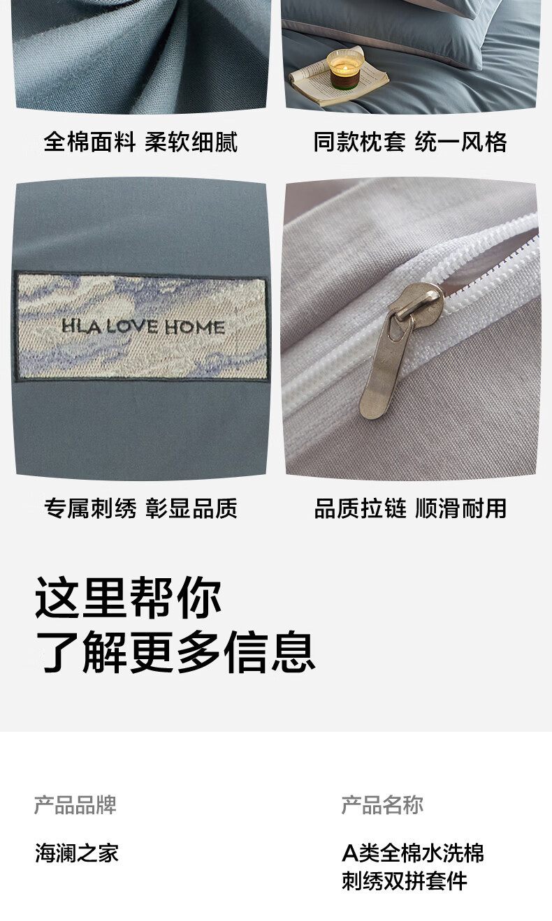 海澜之家(HLA)床上四件套纯棉100%棉高支高密柔软亲肤家用宿舍酒店床单被罩被套 水冰蓝+宝石蓝【100%棉 触感舒适】 三件套/被套150*200 床单款 180*230