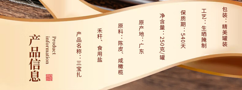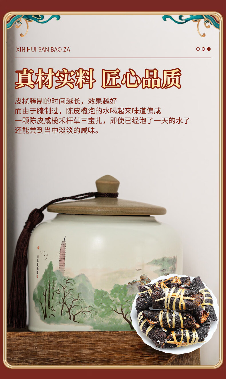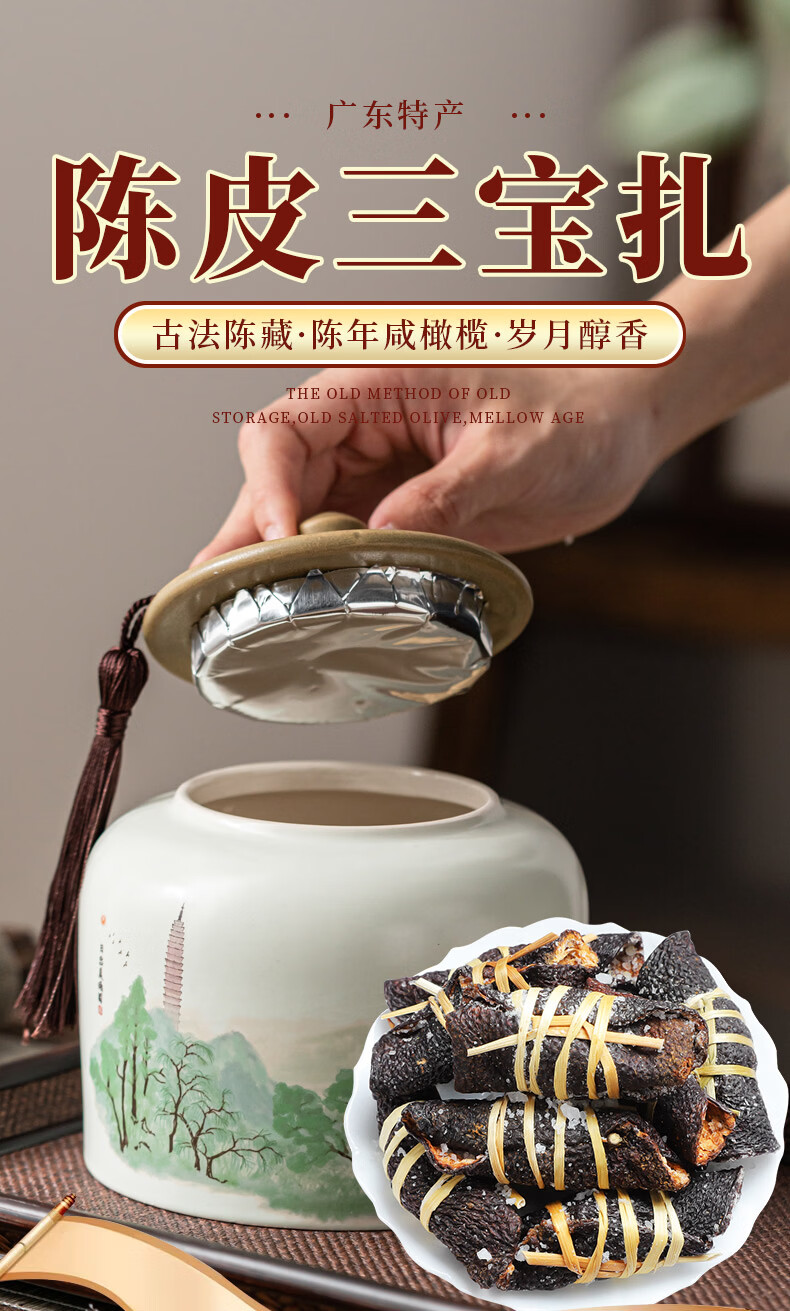 印象堂老陈皮咸榄茶三宝扎泡水陈皮干广东三宝特产手工传统腌制 陈皮三宝扎 250g*1罐