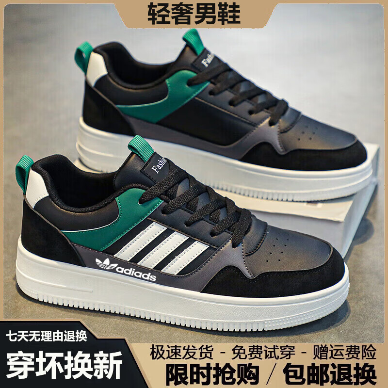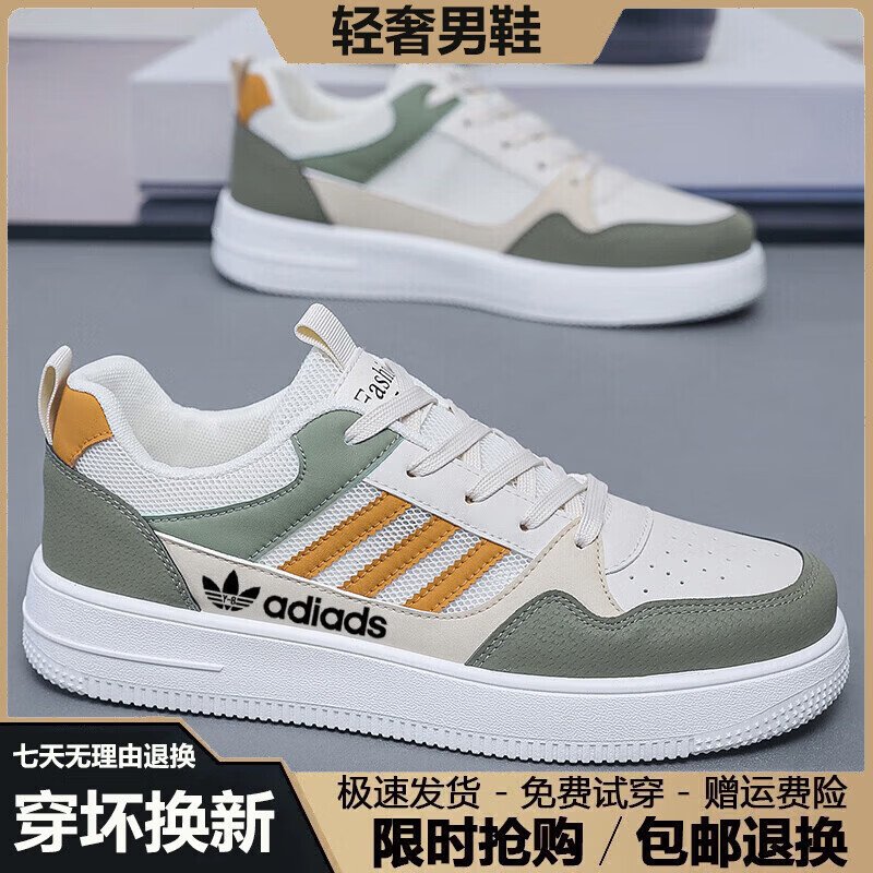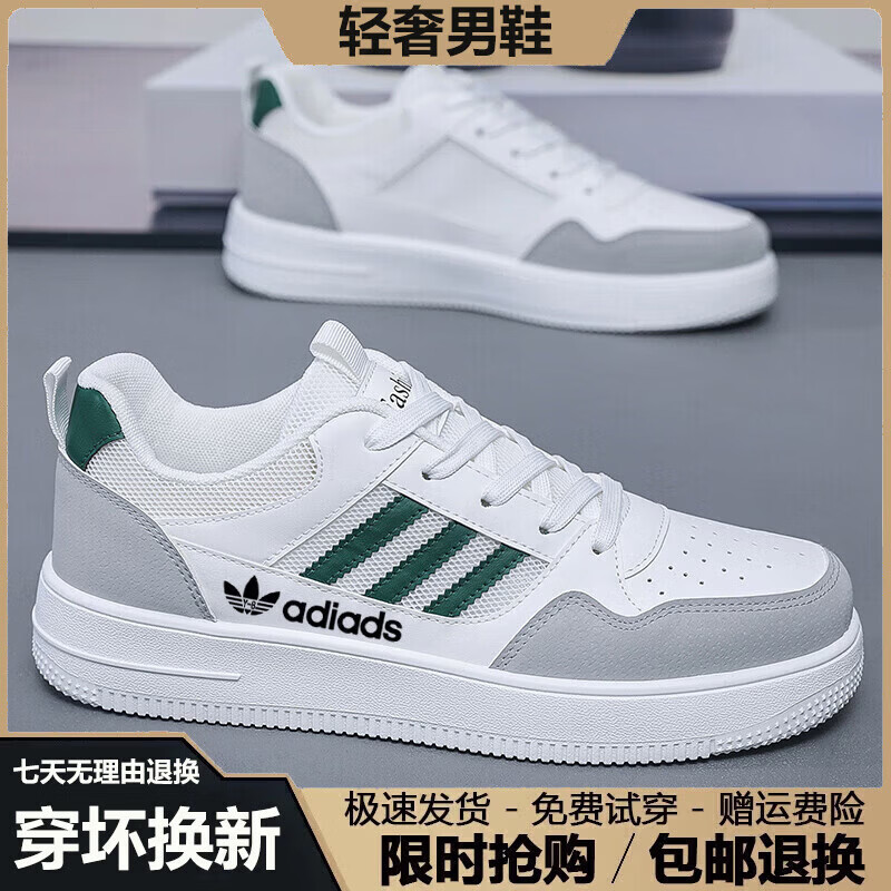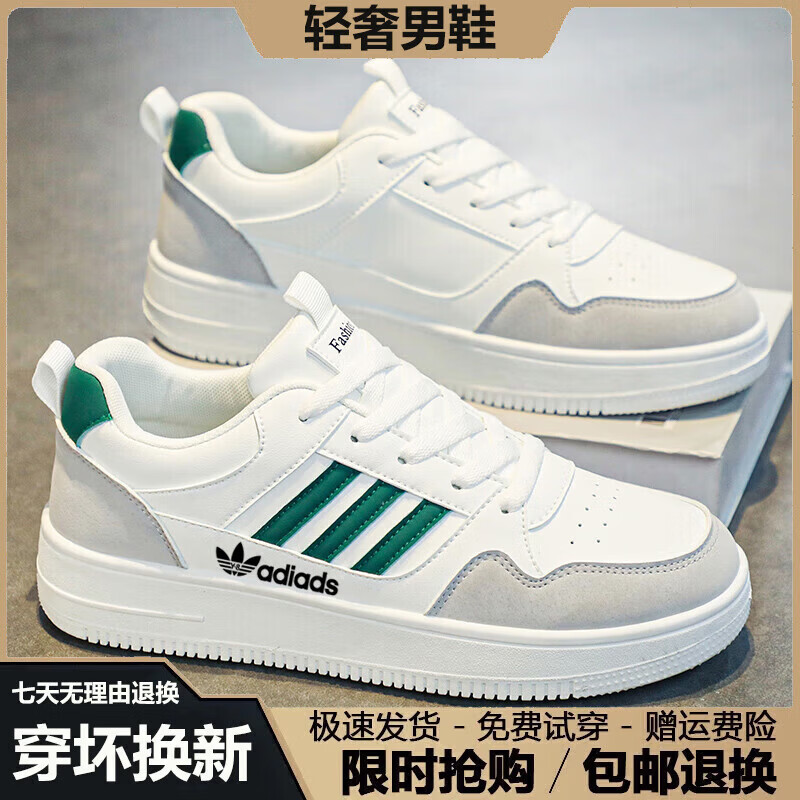 板鞋男鞋2026春夏季新款耐磨板鞋男士透气休闲运动鞋子男小白鞋男 AD522白绿【皮面】 41