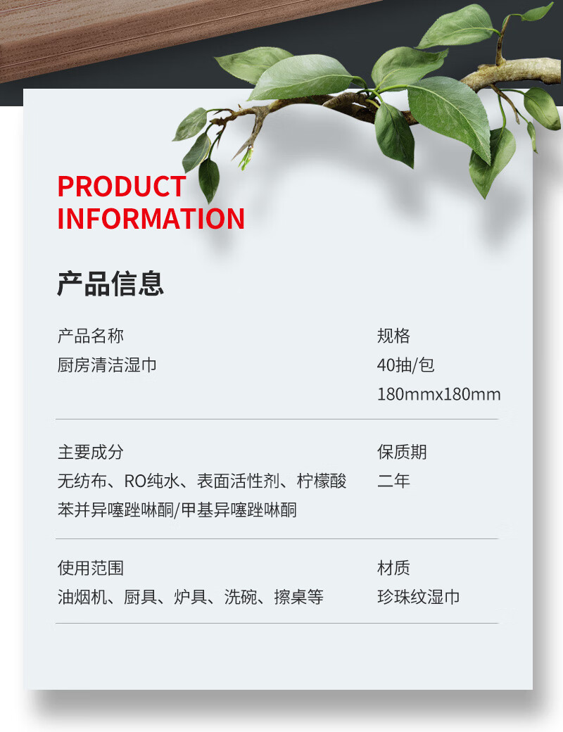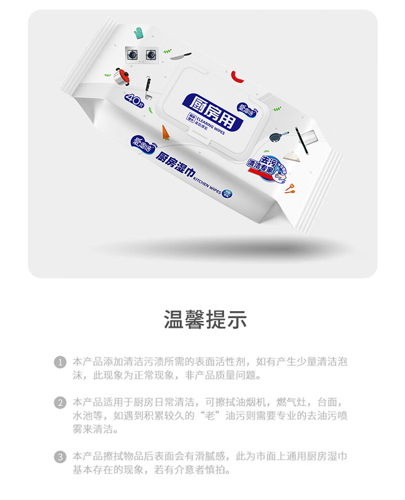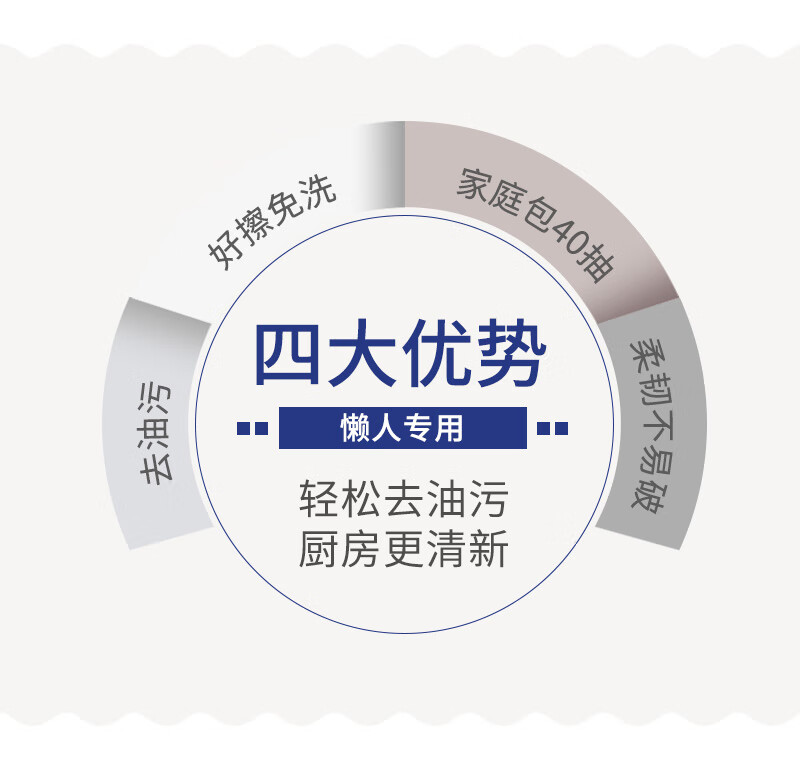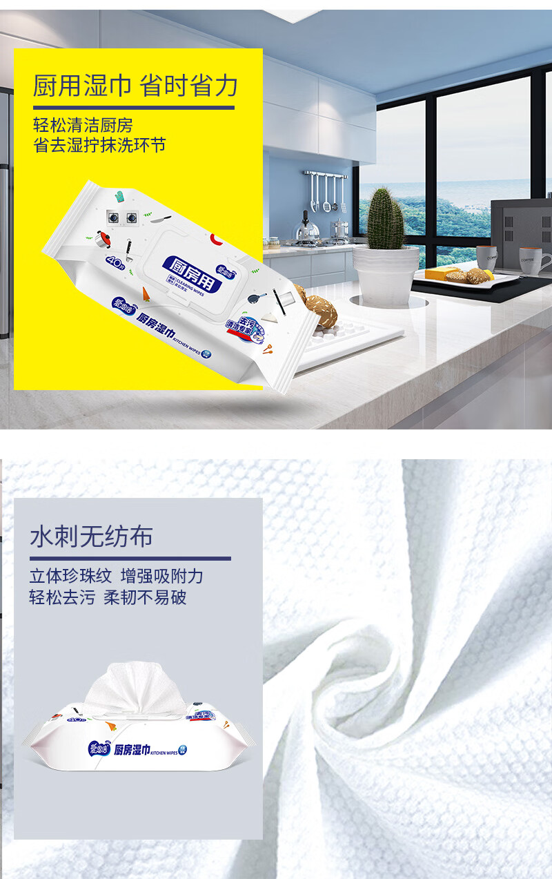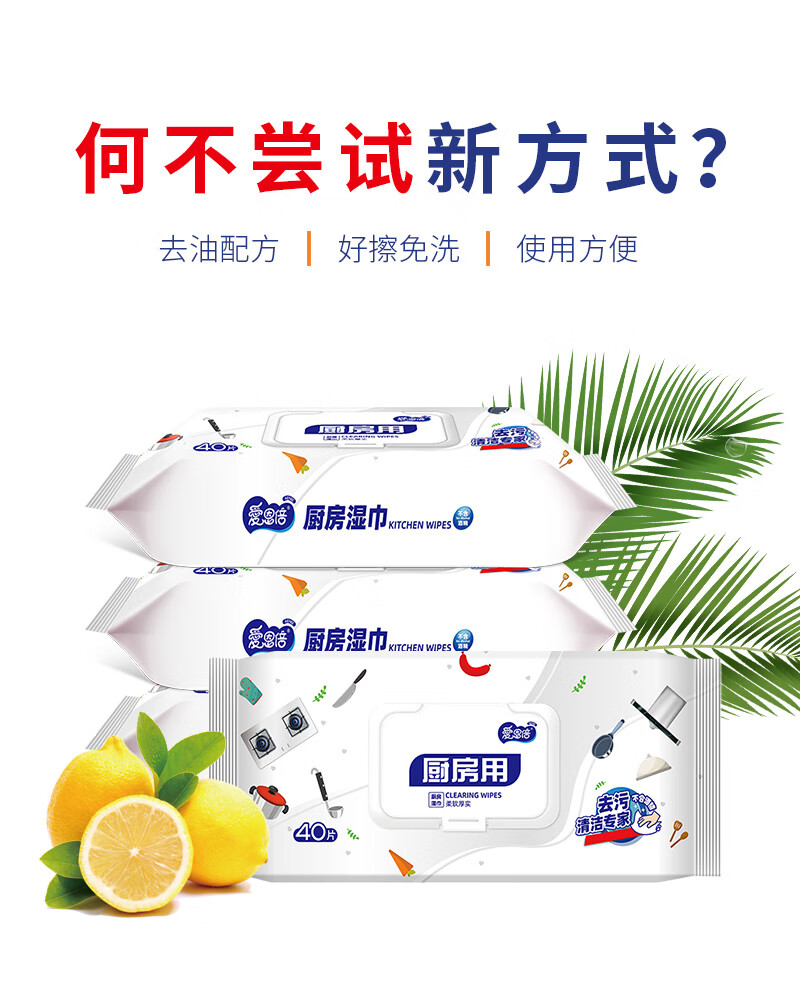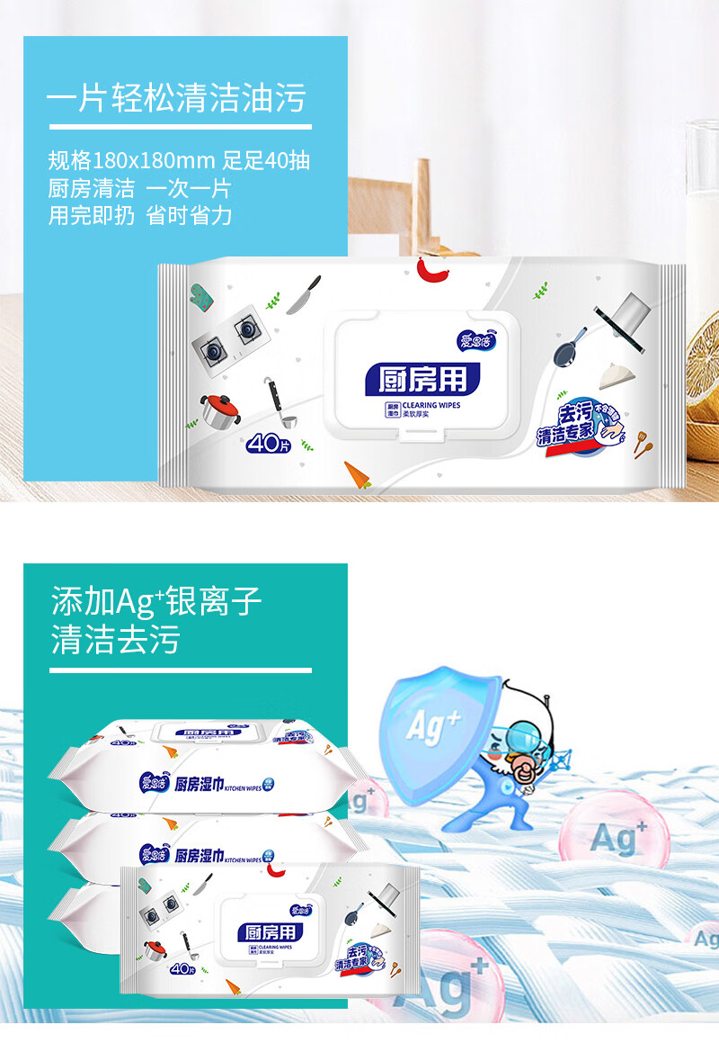 爱恩倍厨房湿巾去油污厨房用纸强力吸油湿纸巾擦油烟专用懒人抹布 40片*5包