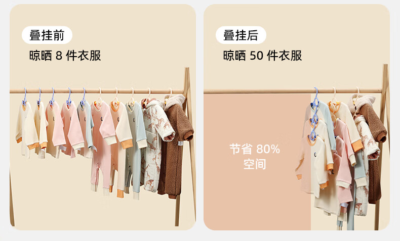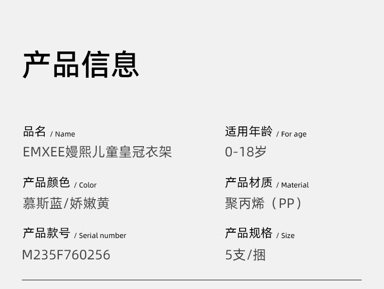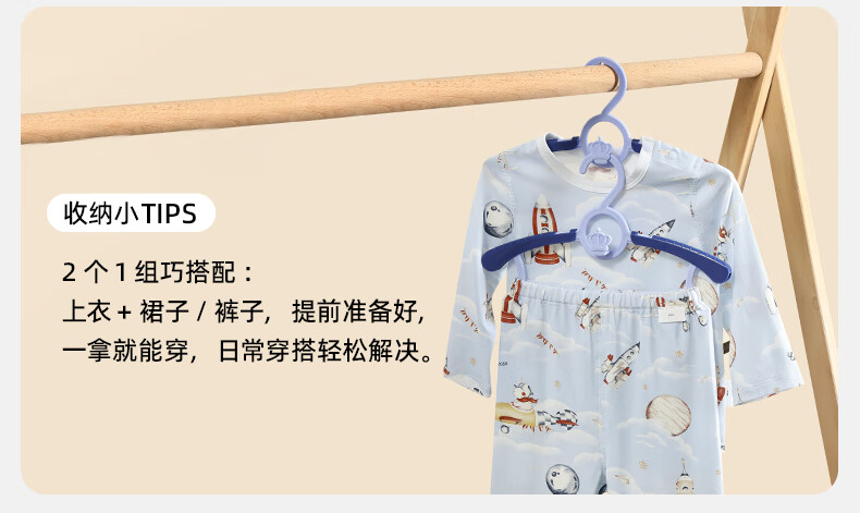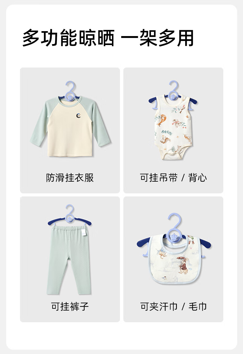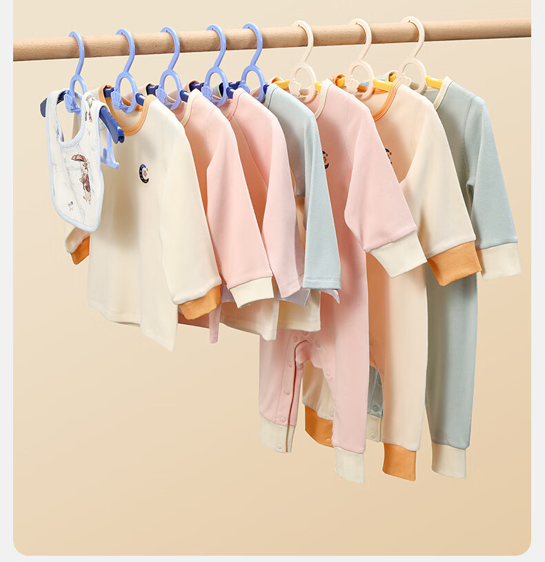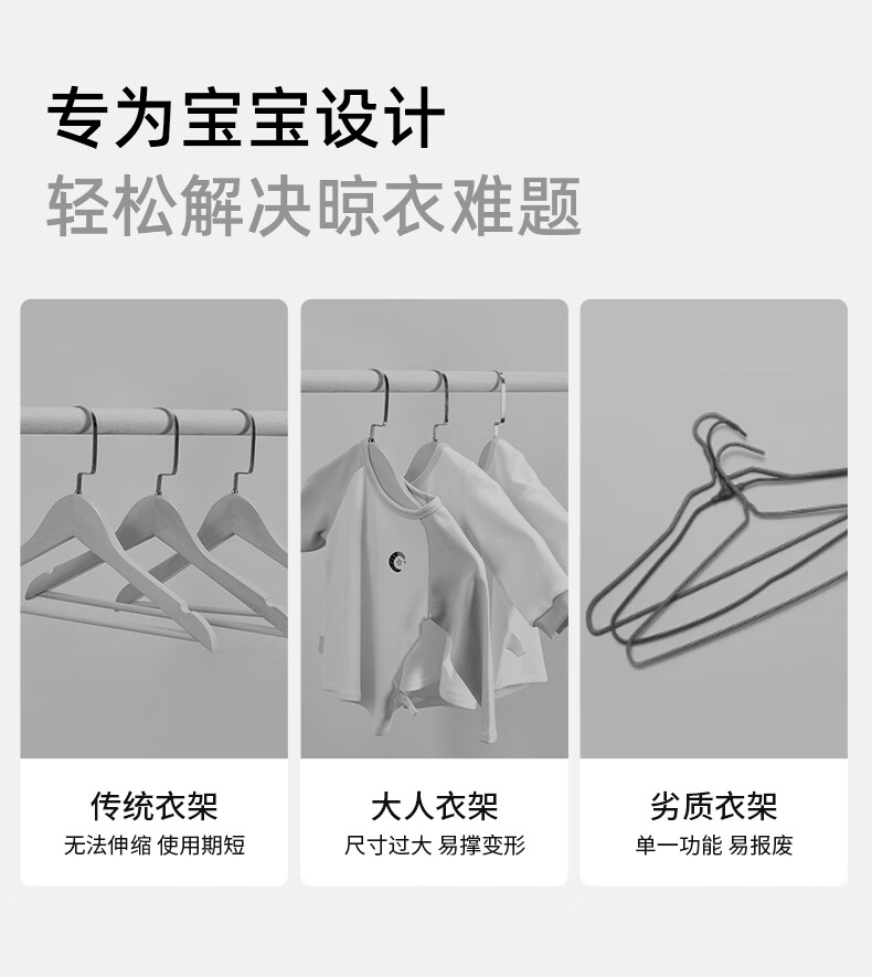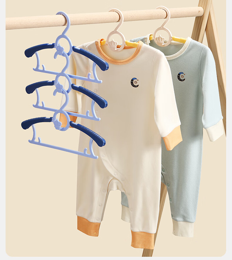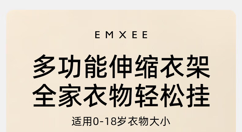 嫚熙(EMXEE)婴儿衣架多功能防滑无痕儿童伸缩衣架宝宝晾衣架新生儿 娇嫩黄(20个装)