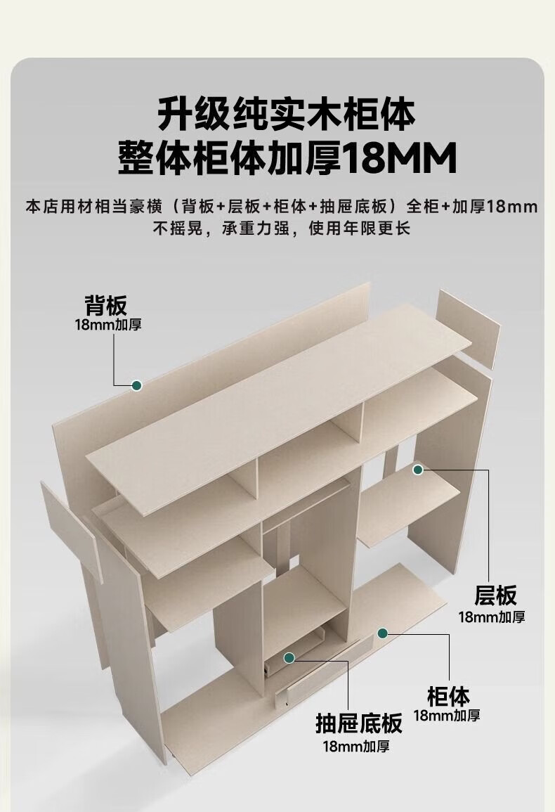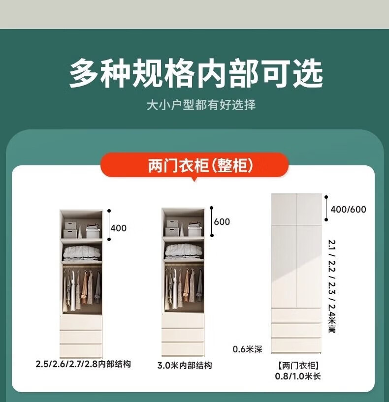 宜美芬 EMAYFUN实木ENF级衣柜定制家用卧室储物奶油风一门到顶平开门简约大衣橱 2.6*2.4米衣柜【18MM孕婴抗菌ENF级实木】