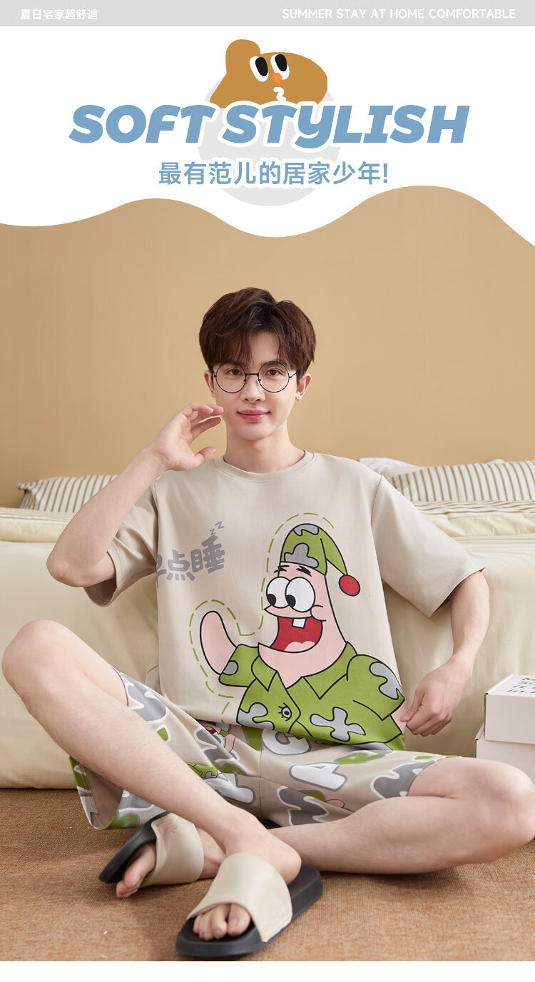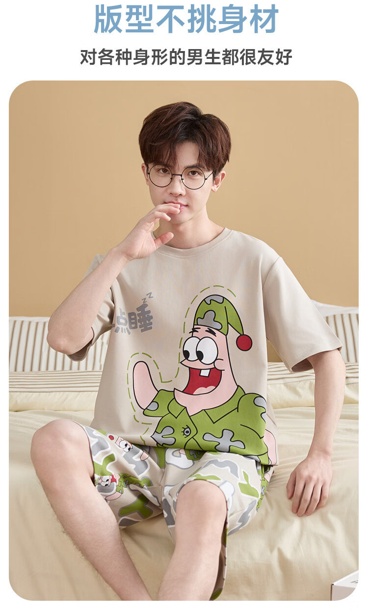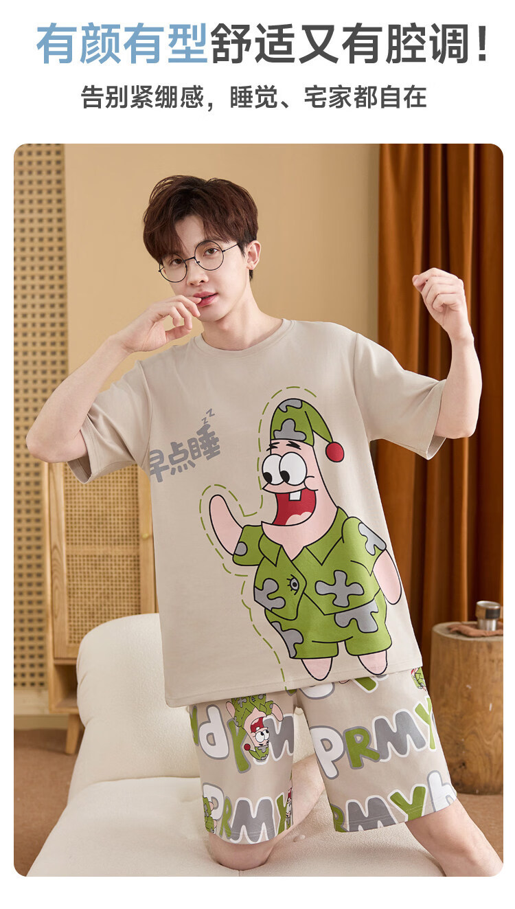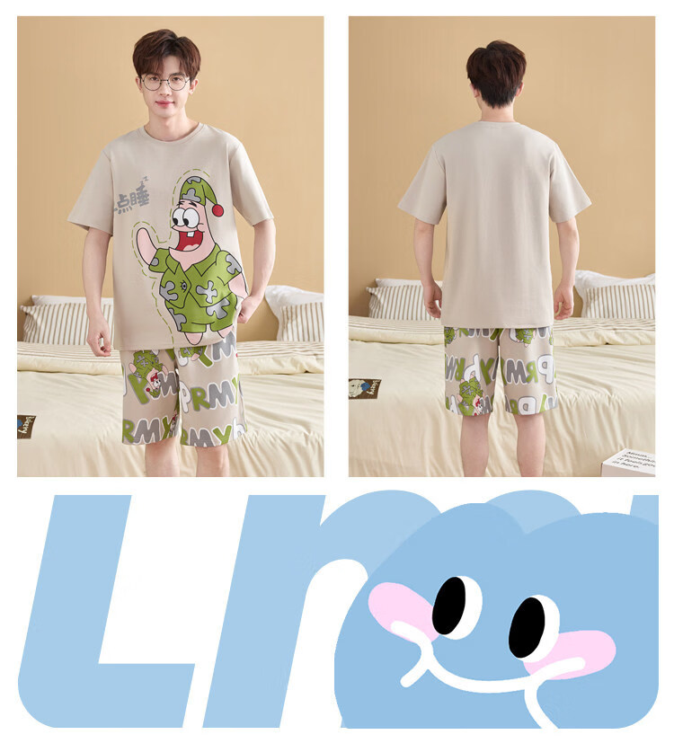 起润猴大码睡衣男士夏季纯棉短袖卡通学生青少年全棉圆领夏天家居服套装 LML1873# 5XL 标准【建议身高188CM左右,体重220-250斤】