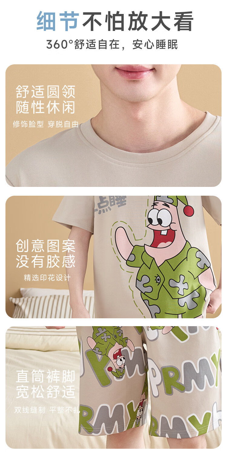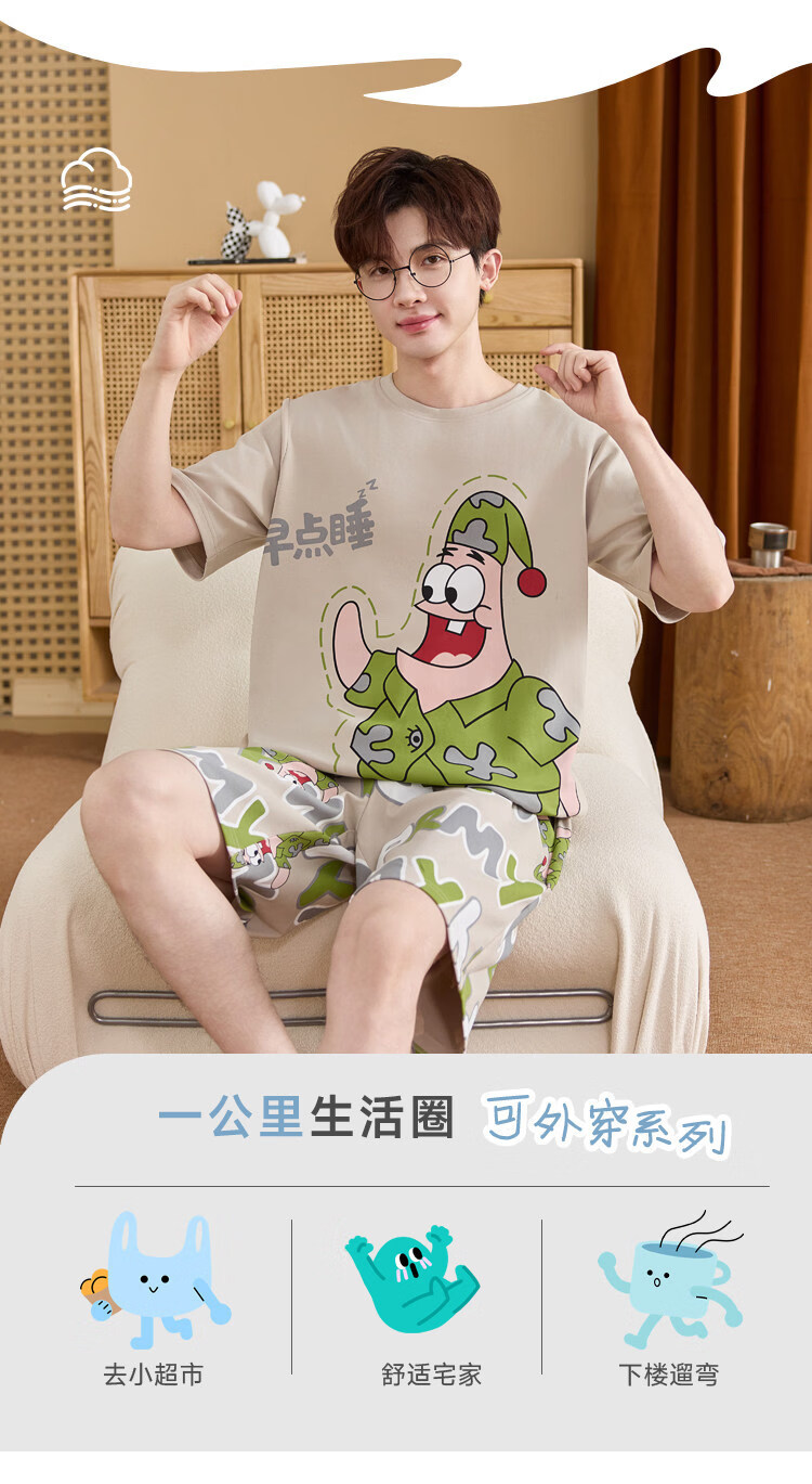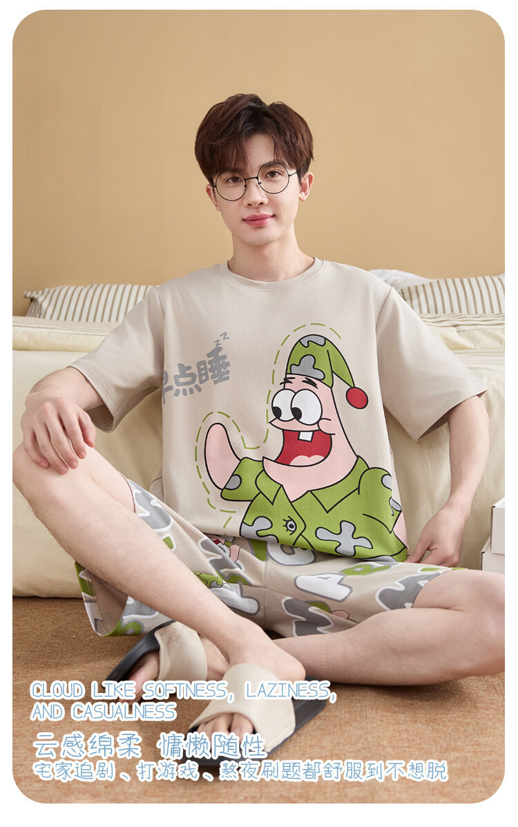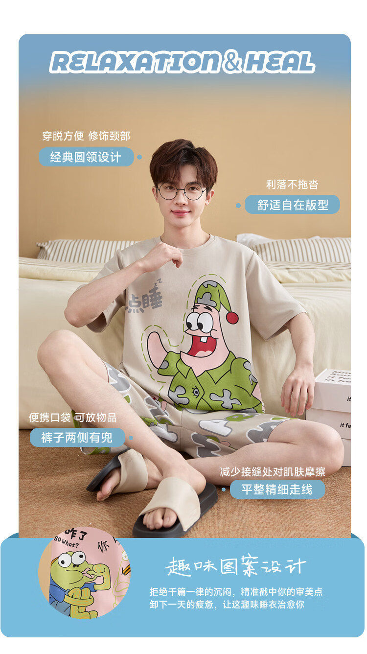 起润猴大码睡衣男士夏季纯棉短袖卡通学生青少年全棉圆领夏天家居服套装 LML1873# 5XL 标准【建议身高188CM左右,体重220-250斤】