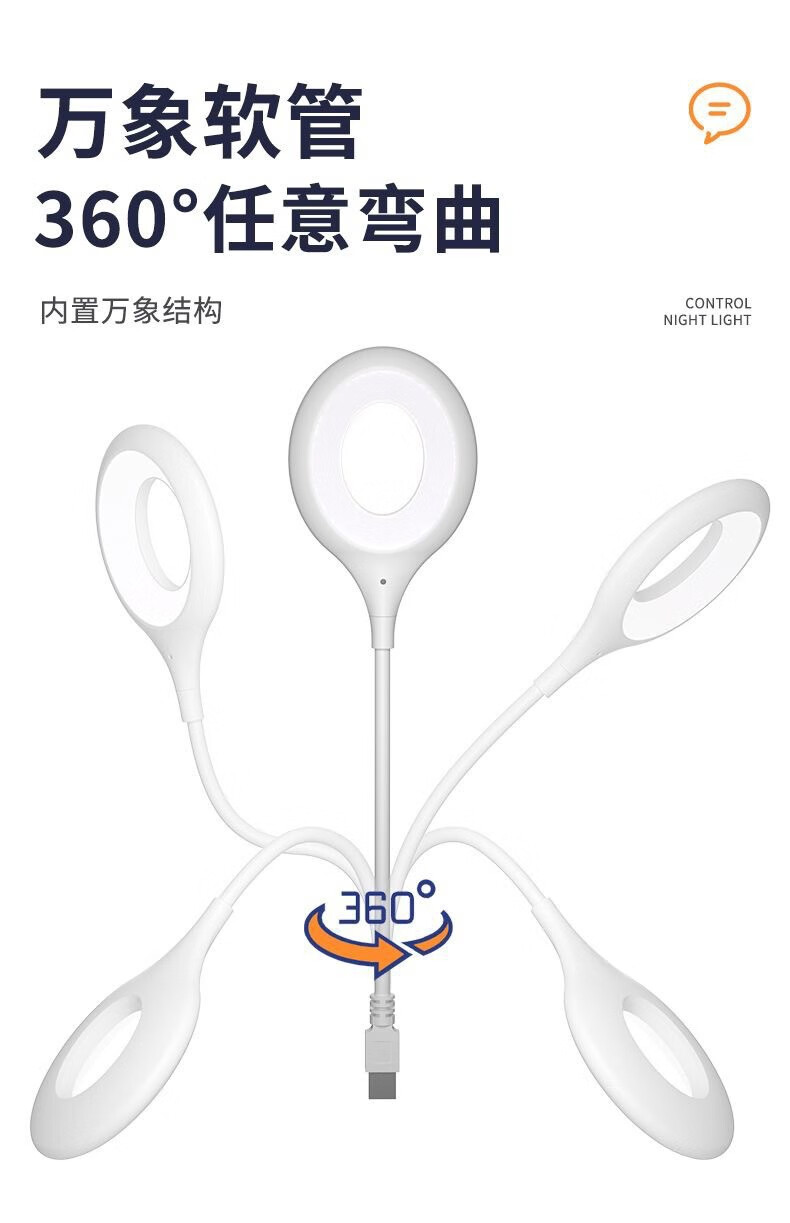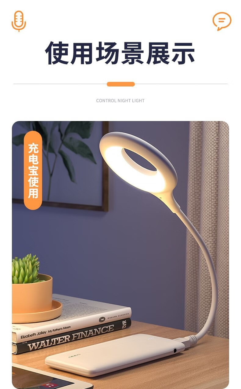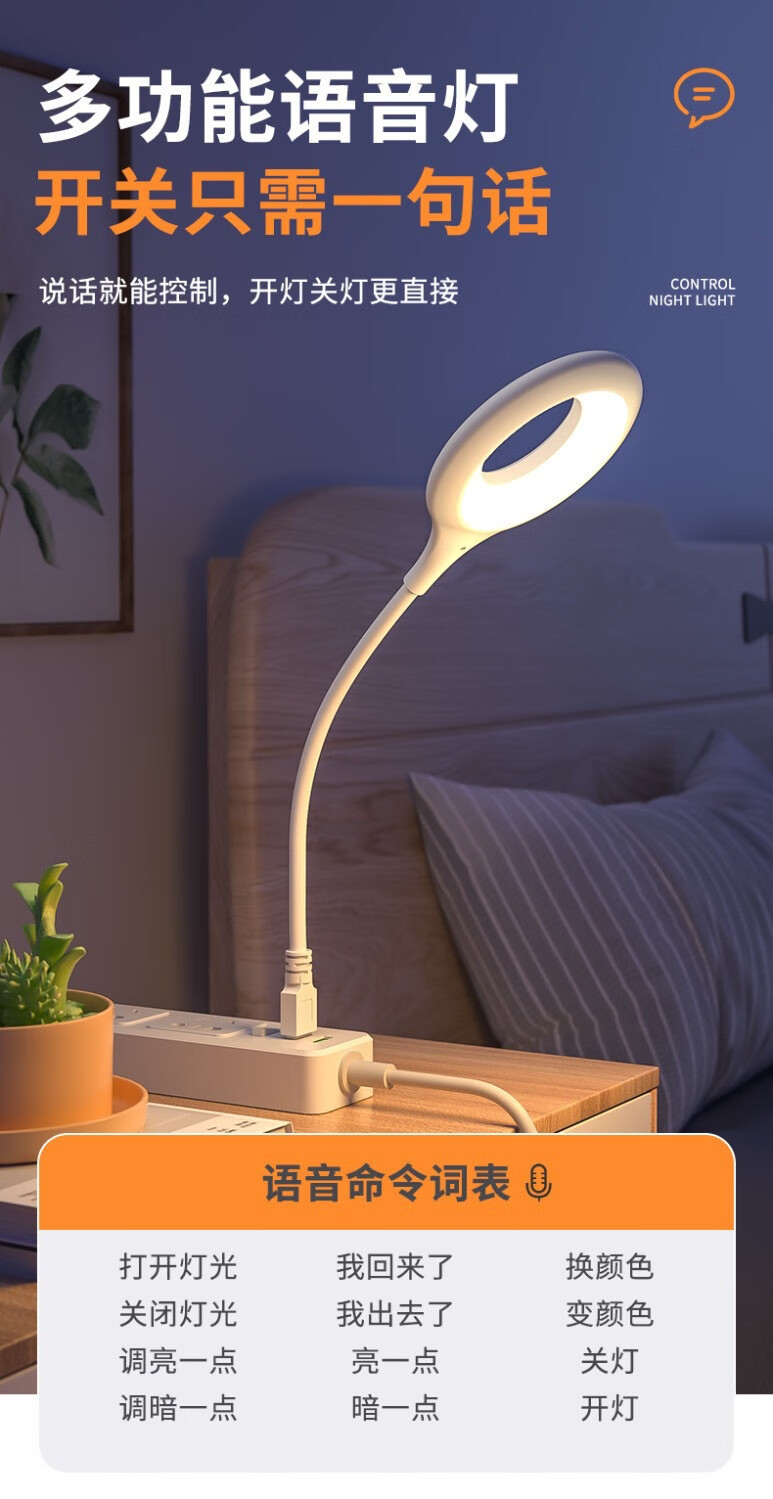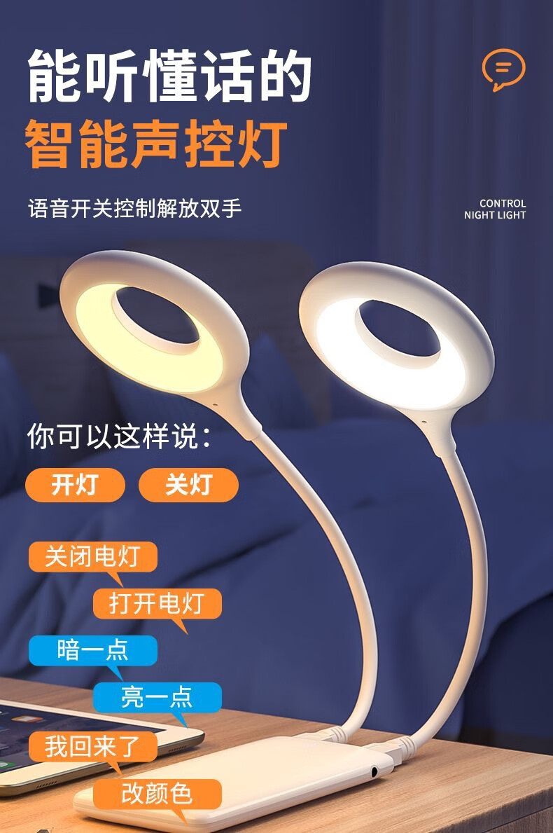 纯淳智能语音USB小夜手机支架床边灯声控灯声音控制家用宿舍起夜 1台