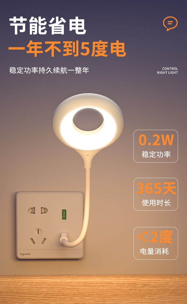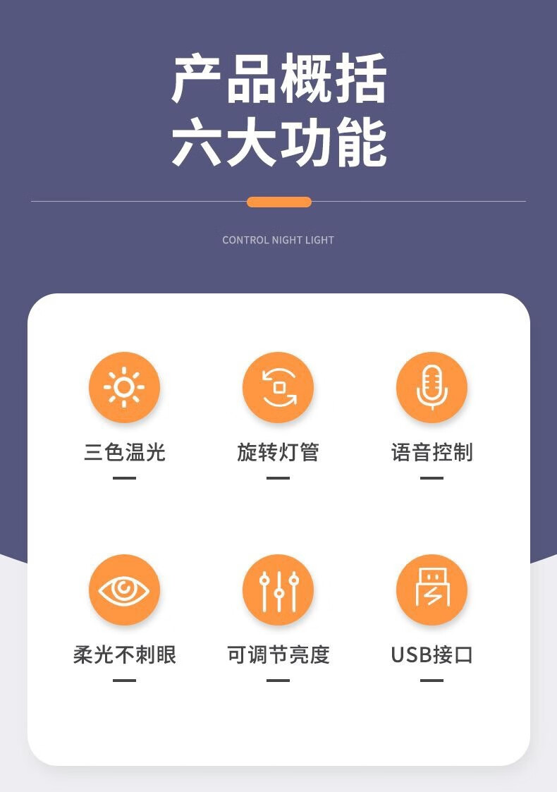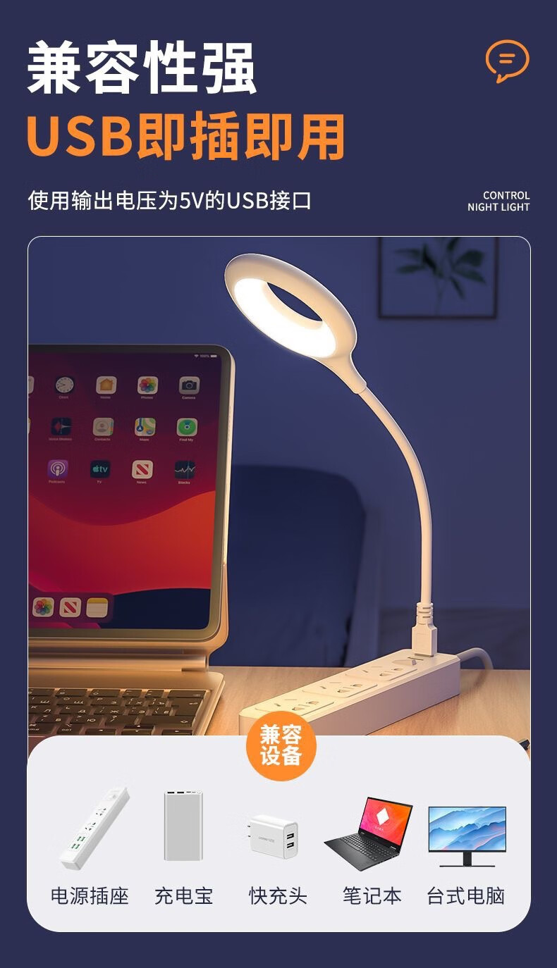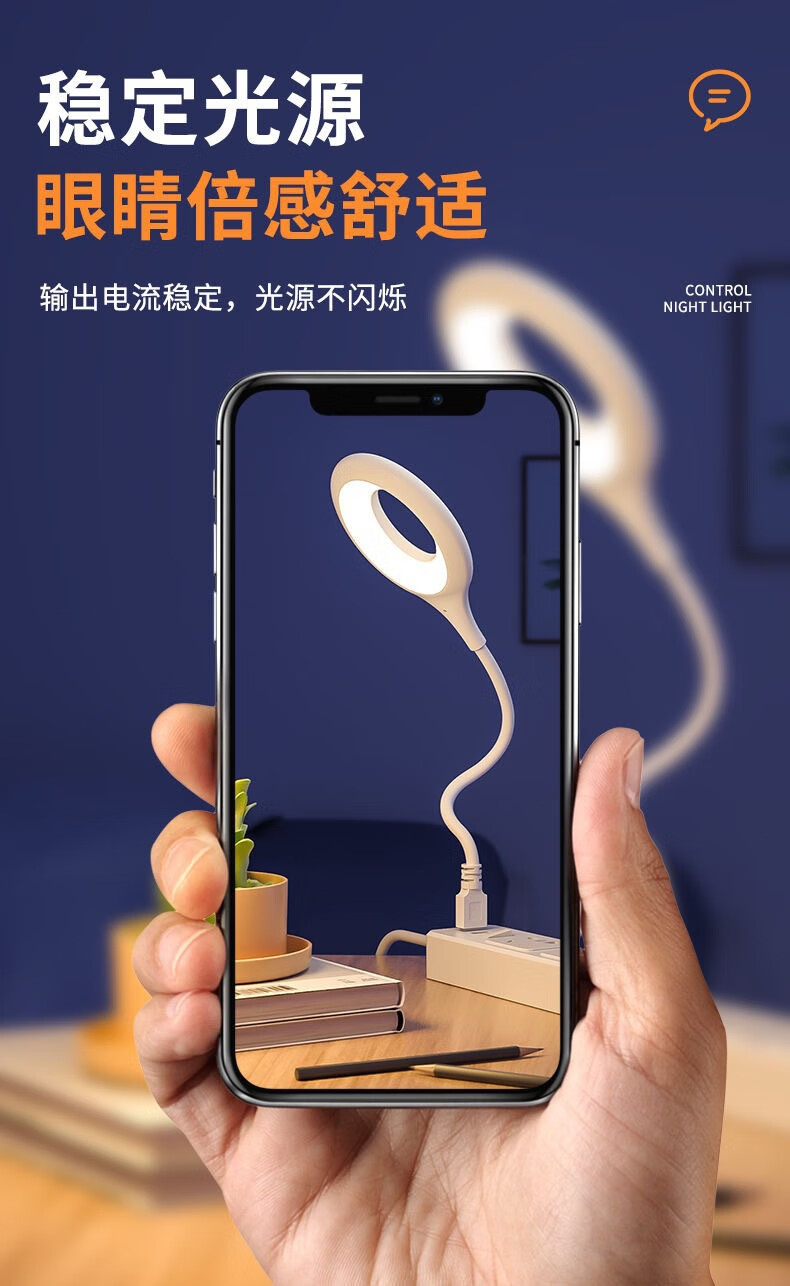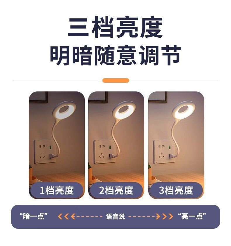 纯淳智能语音USB小夜手机支架床边灯声控灯声音控制家用宿舍起夜 1台