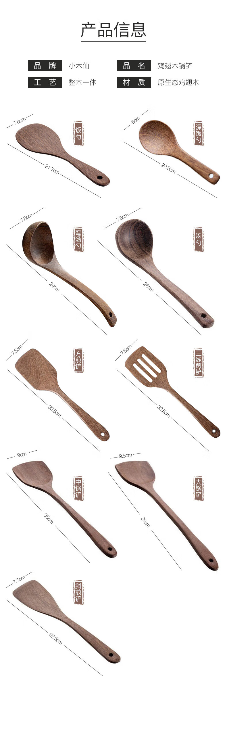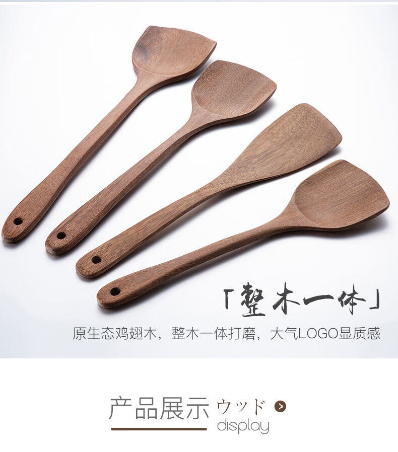 PJ鸡翅木锅铲不粘锅锅铲鸡翅木无漆无汤勺木铲耐高炒菜 饭铲+煎铲+锅铲+汤勺