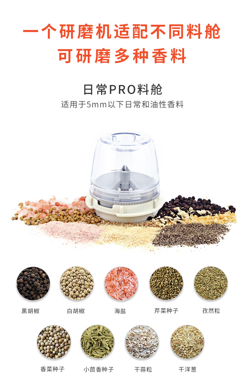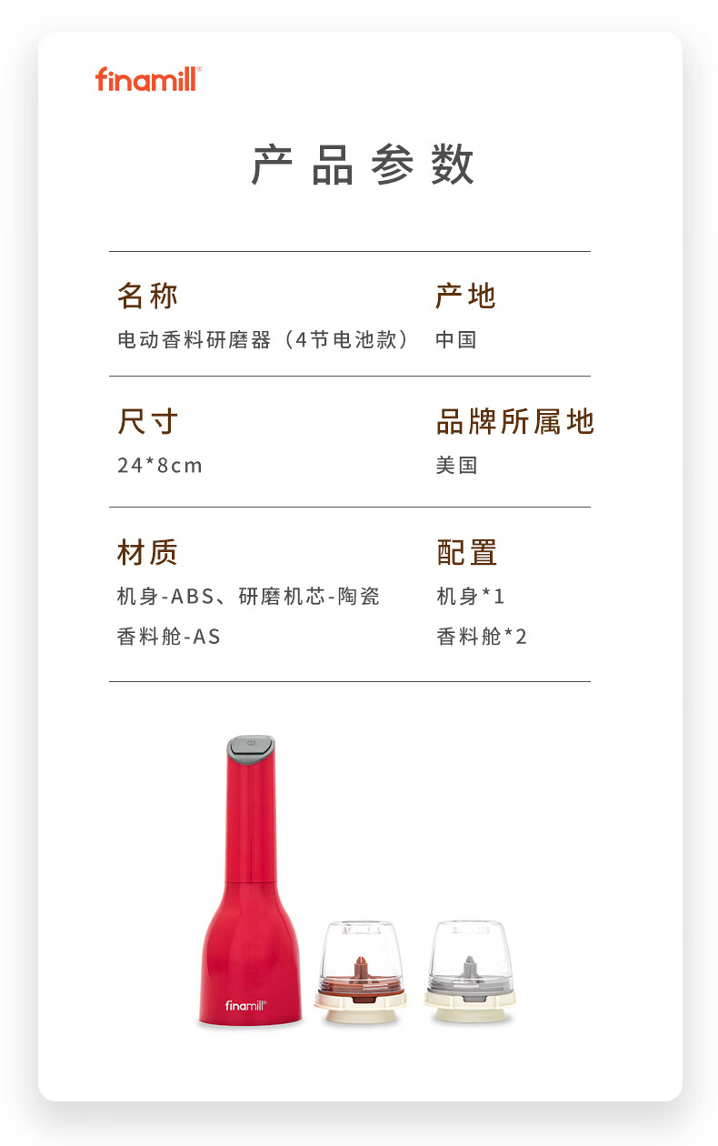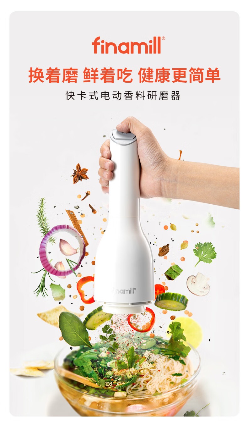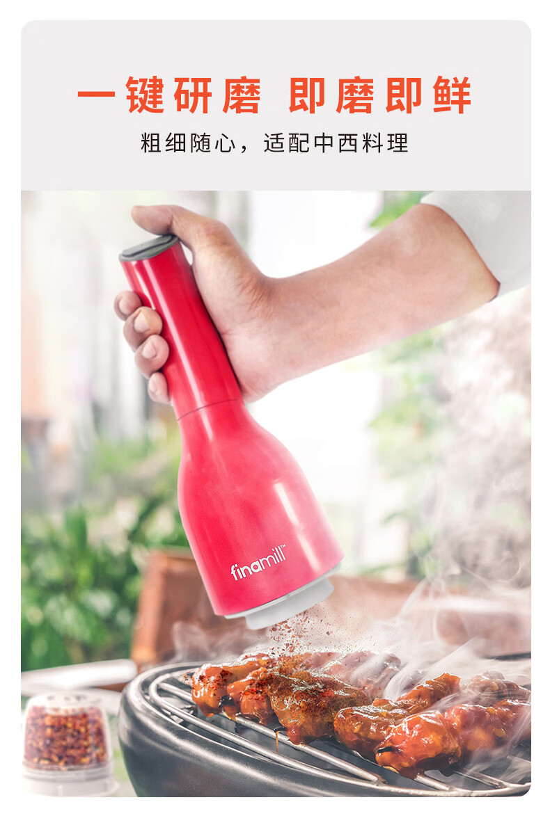 FINAMILL奥普拉好物电动香料研磨机厨房家用高端调料研磨器节日乔迁送礼 电池款极光白【1机+2舱】