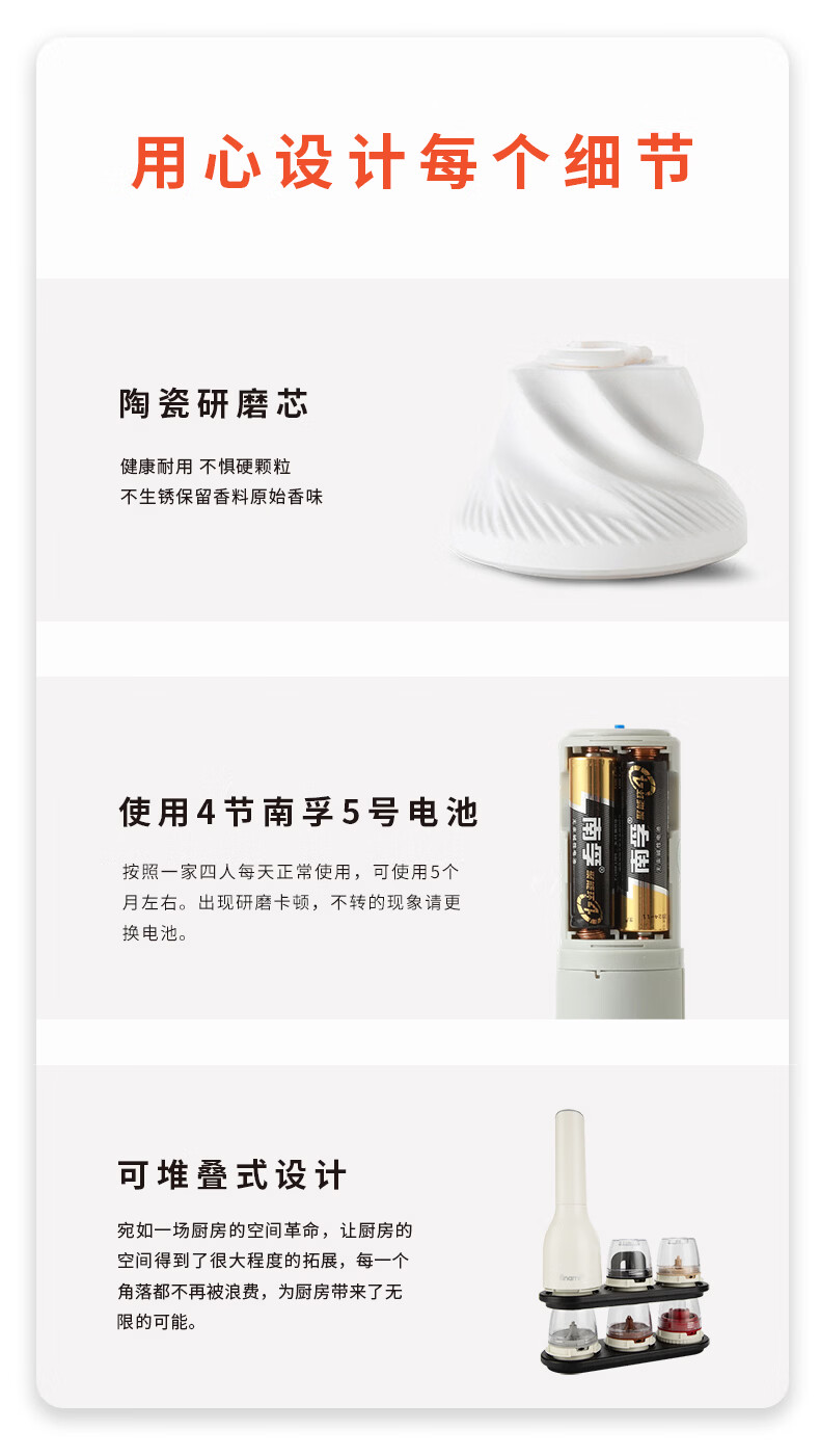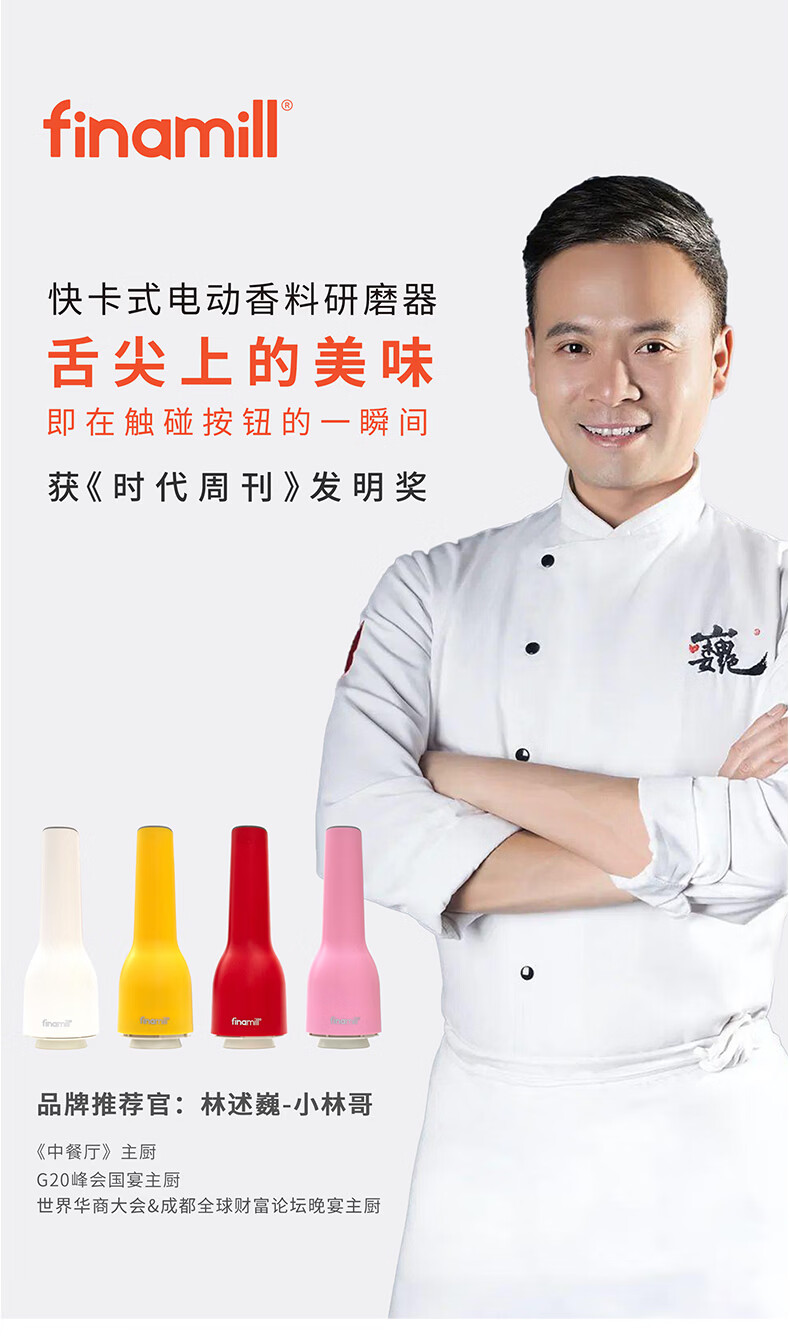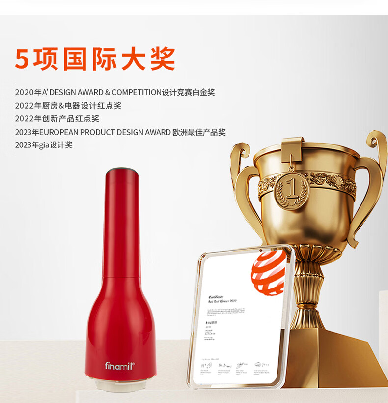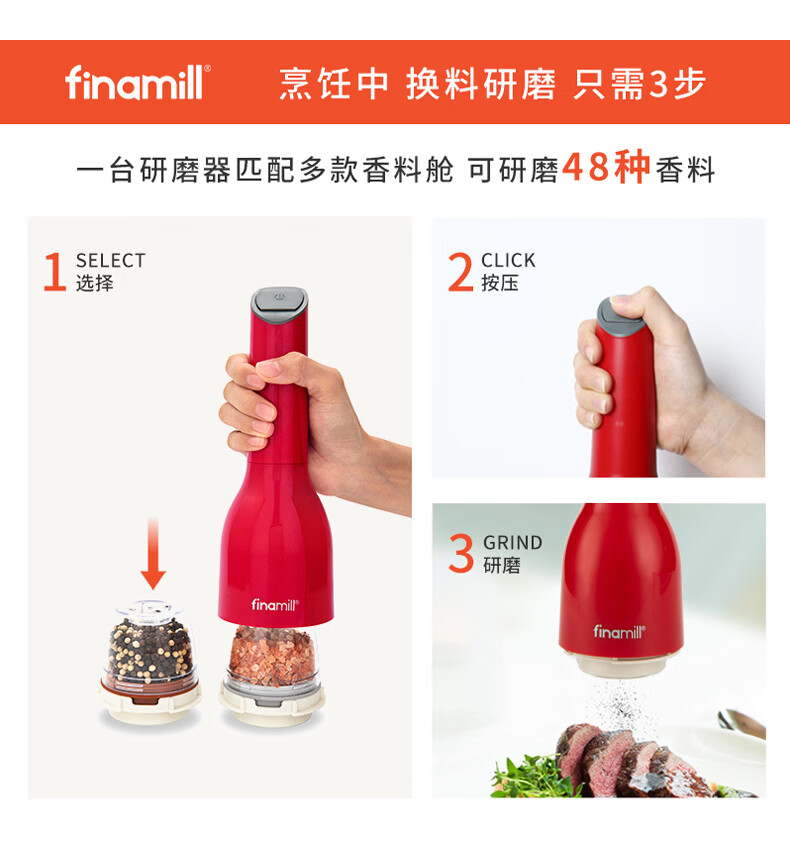 FINAMILL奥普拉好物电动香料研磨机厨房家用高端调料研磨器节日乔迁送礼 电池款极光白【1机+2舱】