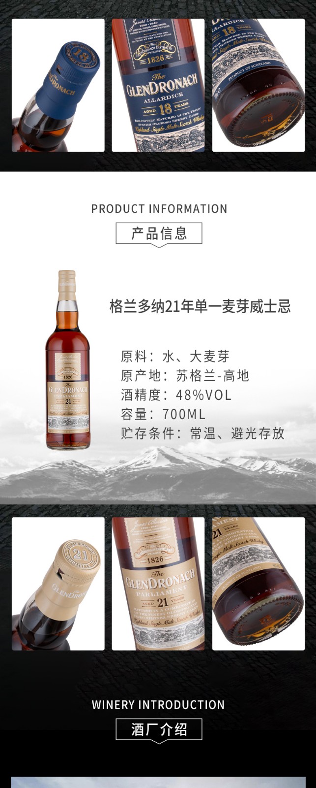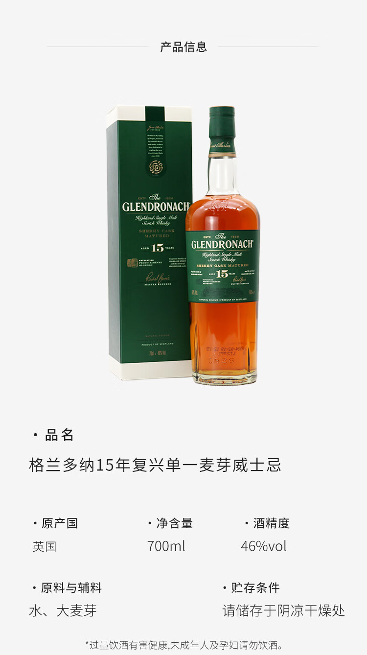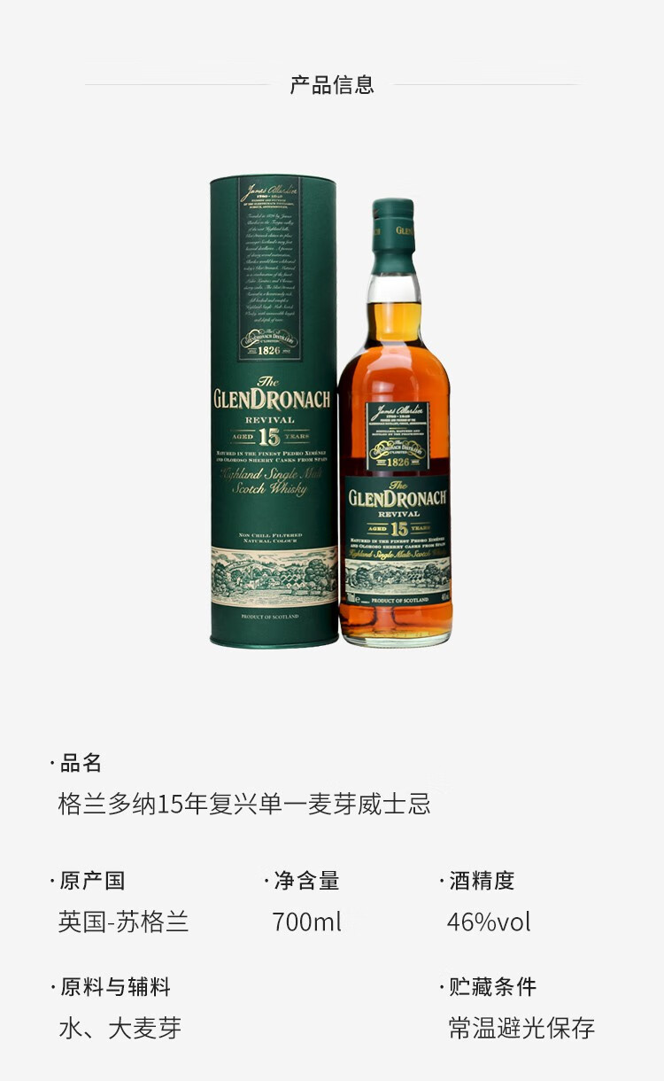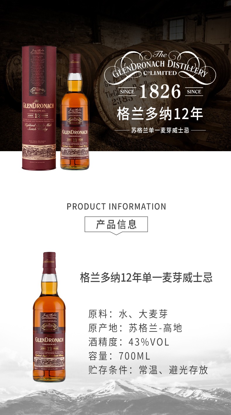 格兰多纳(GLENDRONACH)苏格兰单一麦芽威士忌 英国原瓶进口洋酒 格兰多纳18年