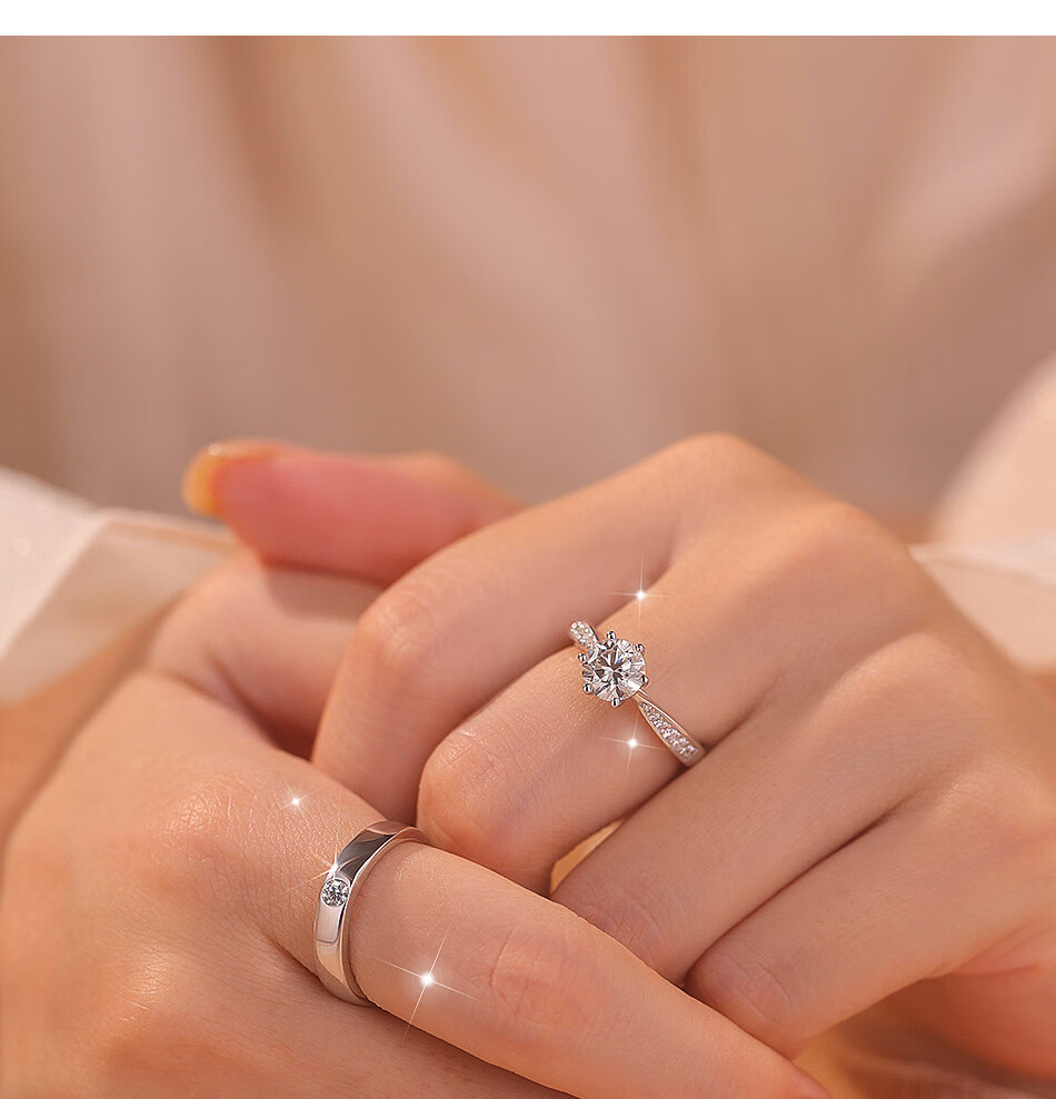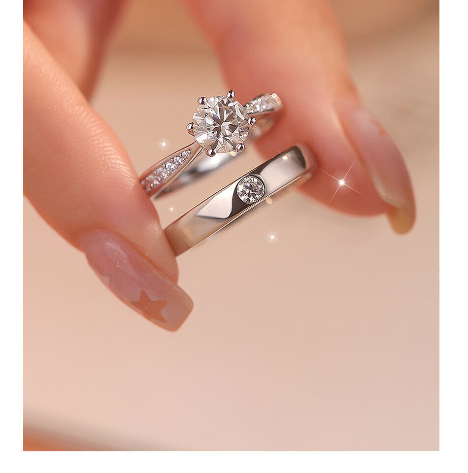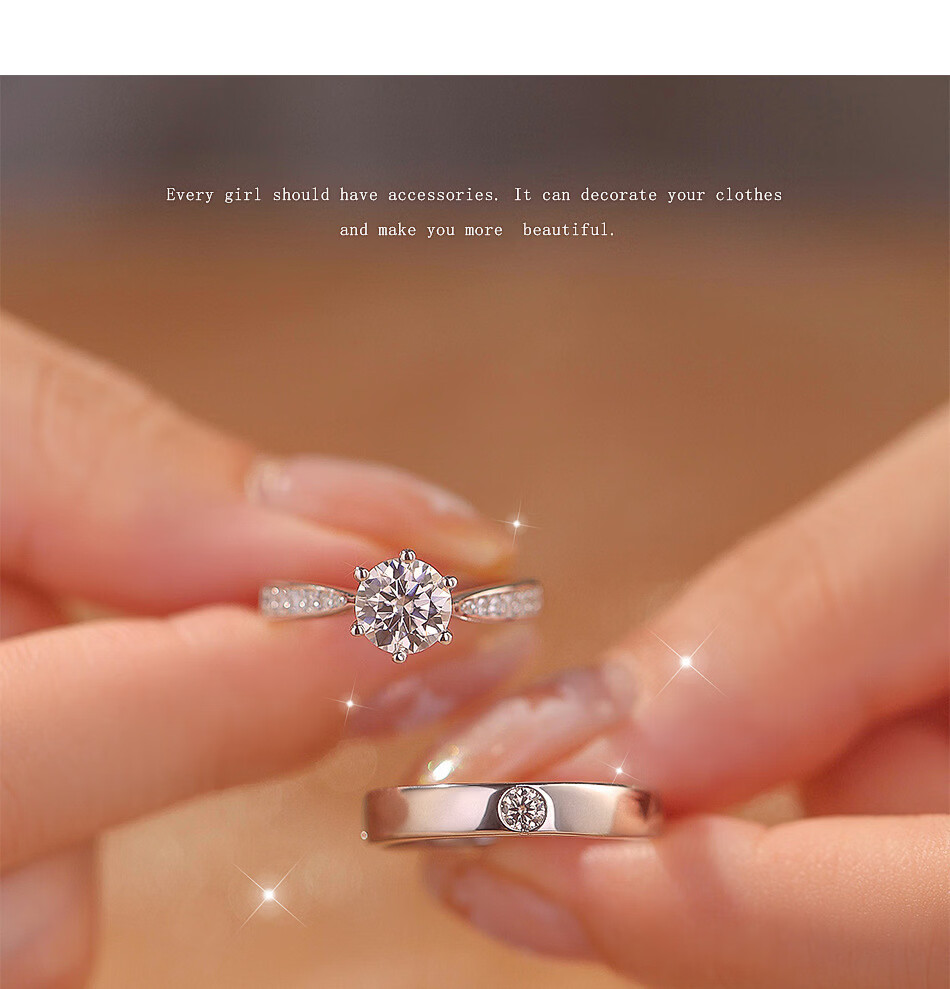 仿真莫桑石活口情侣对戒1克拉订婚求婚礼物 1克拉女戒【主石6.5mm】 开口可调节