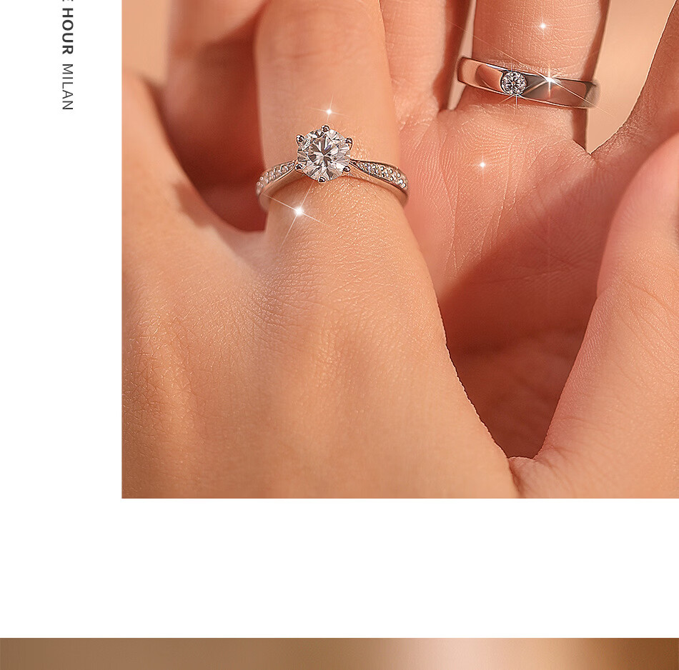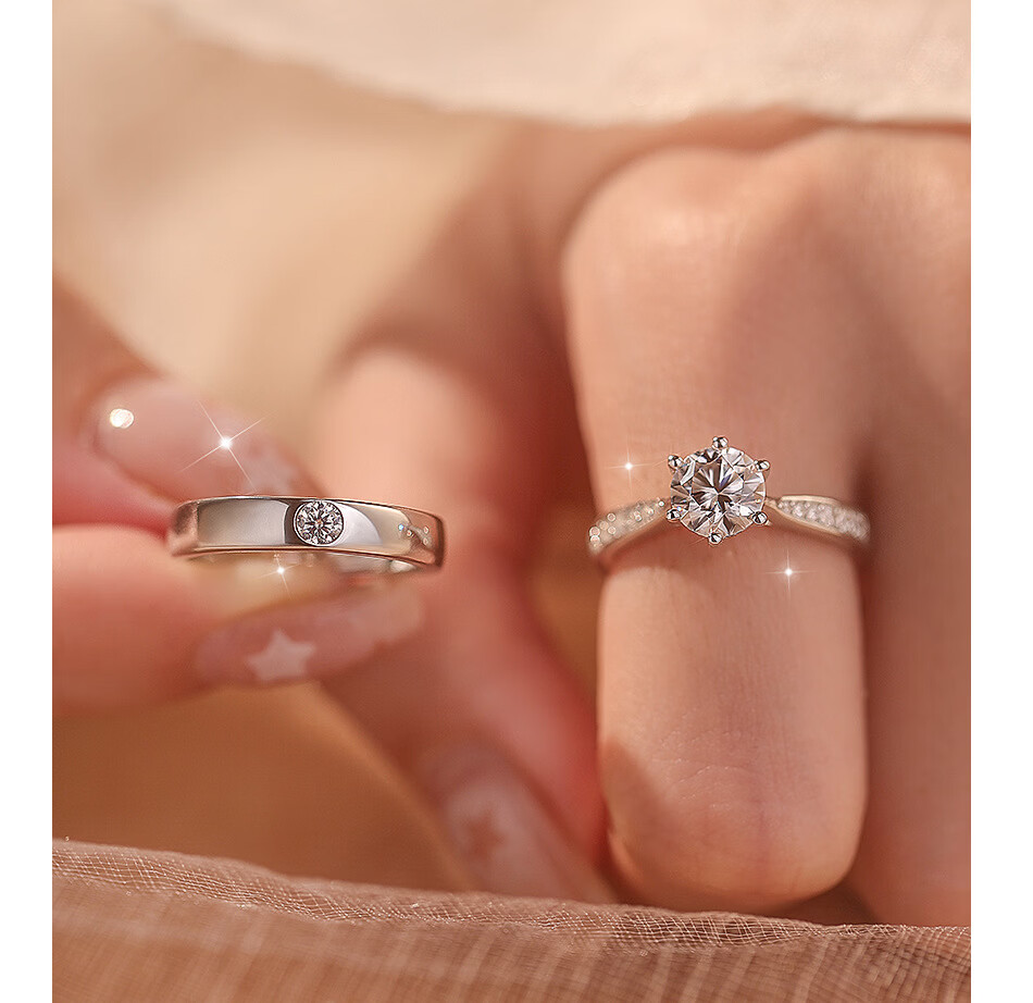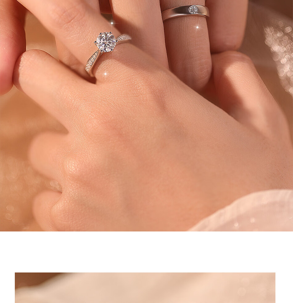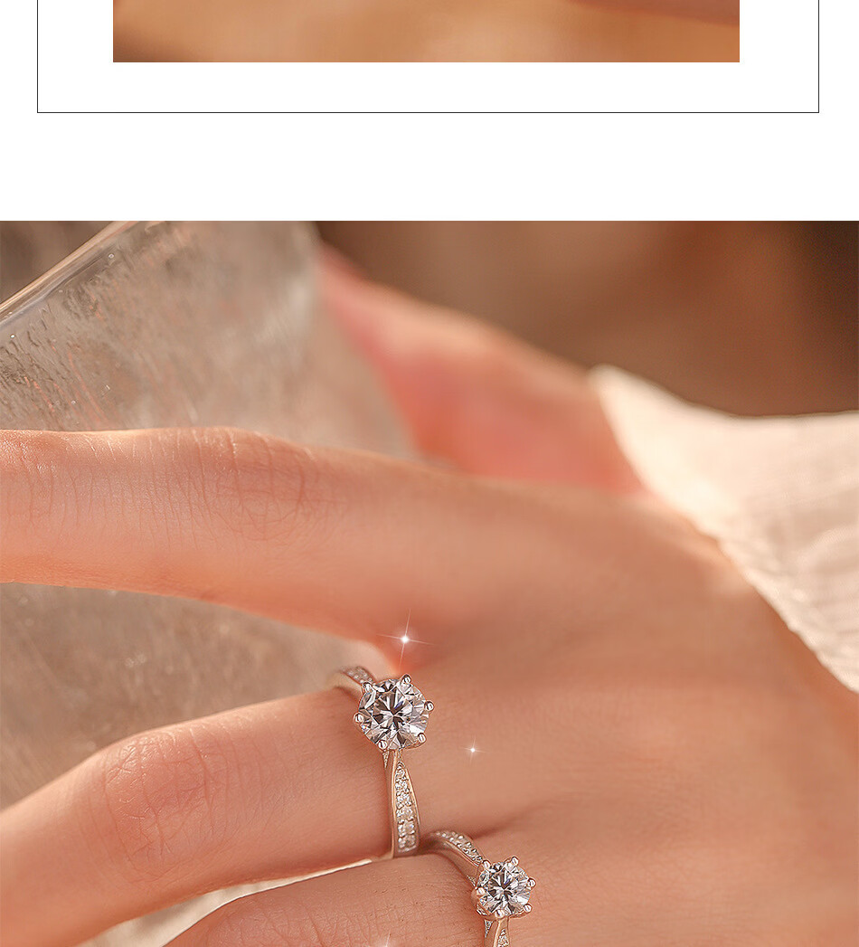 仿真莫桑石活口情侣对戒1克拉订婚求婚礼物 1克拉女戒【主石6.5mm】 开口可调节