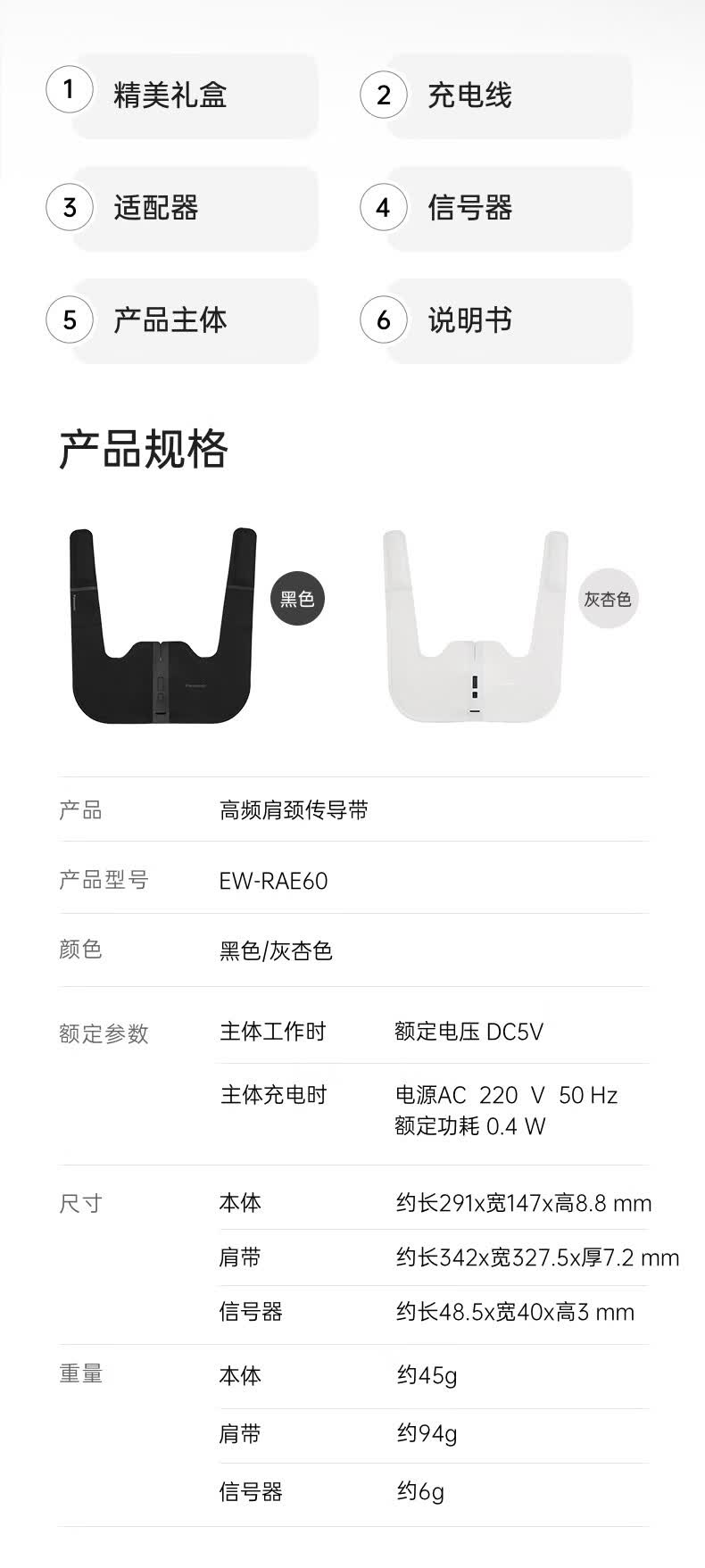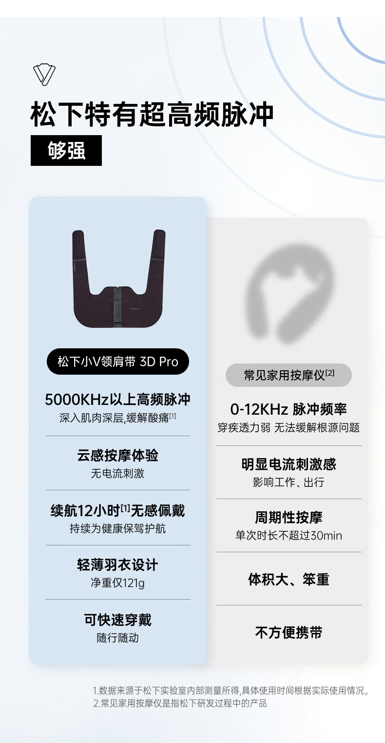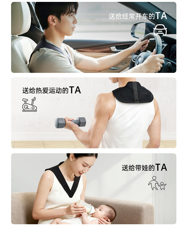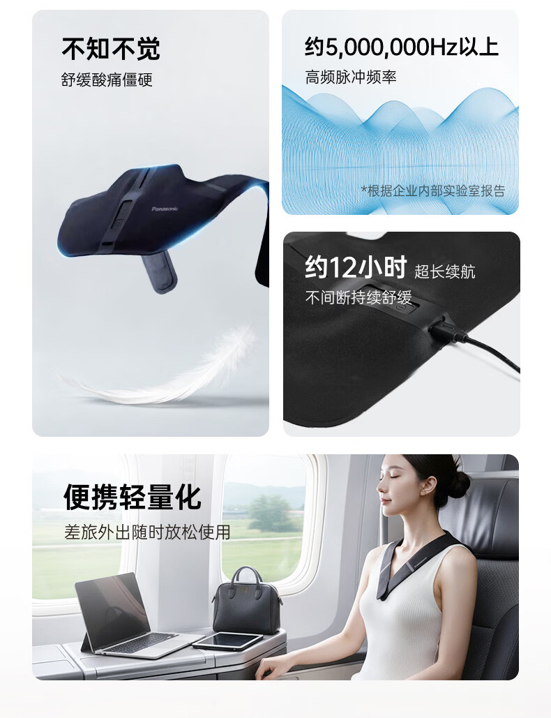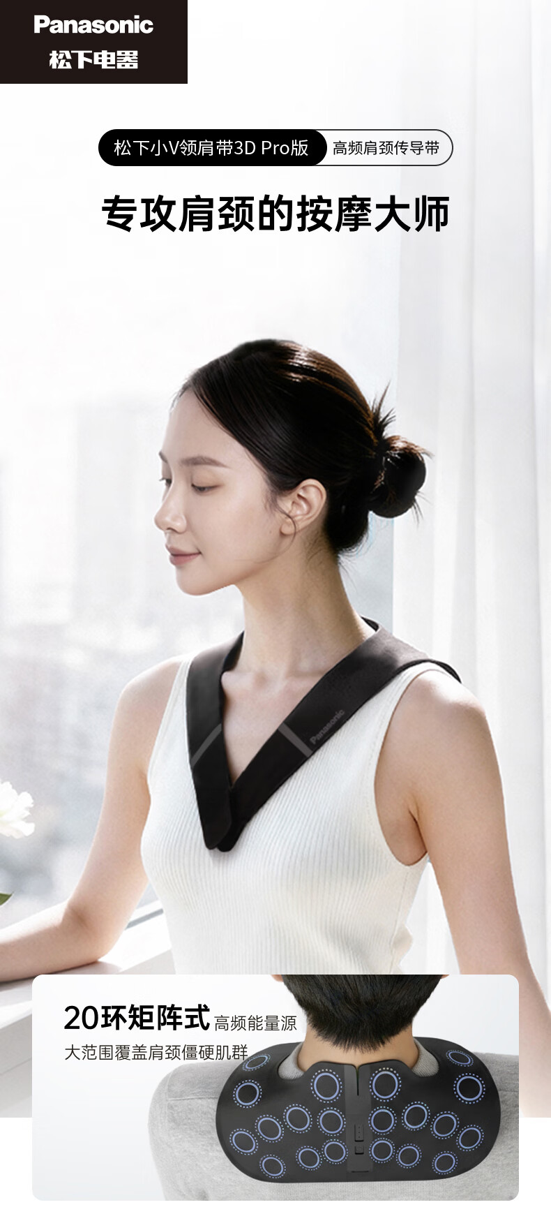 松下(Panasonic)小V领PRO按摩仪披肩颈椎按摩器腰部颈部斜方肌高频脉冲送父母礼物男女朋友RAE60