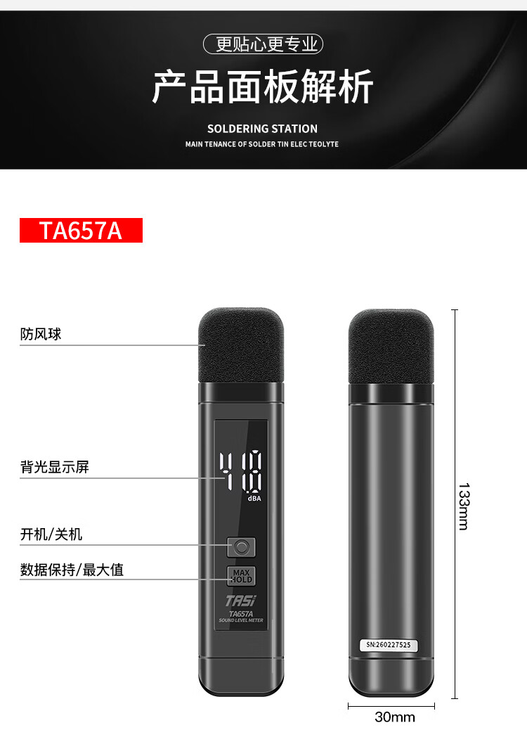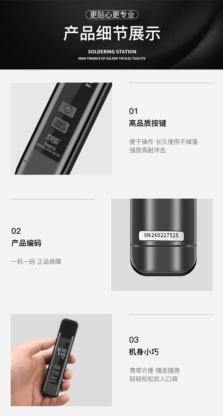 TASI特安斯高精度专业级噪音计工业环境分贝检测仪家用音量声级测试仪 锂电池【噪音计】A技权