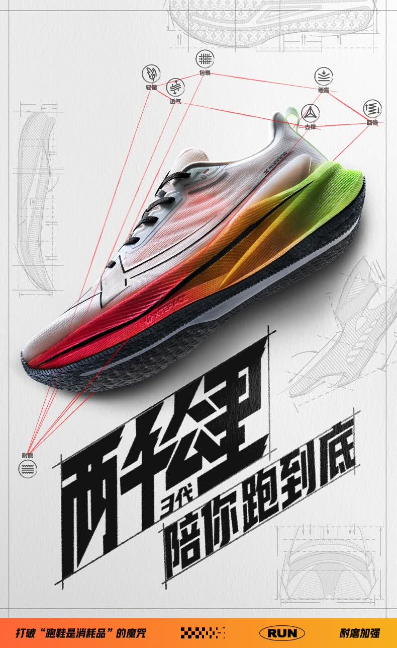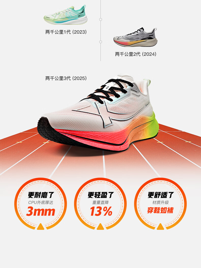 特步两千公里三代男子跑步鞋运动鞋轻便减震耐磨跑鞋体考鞋