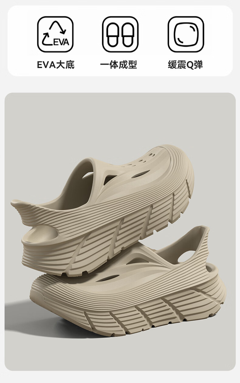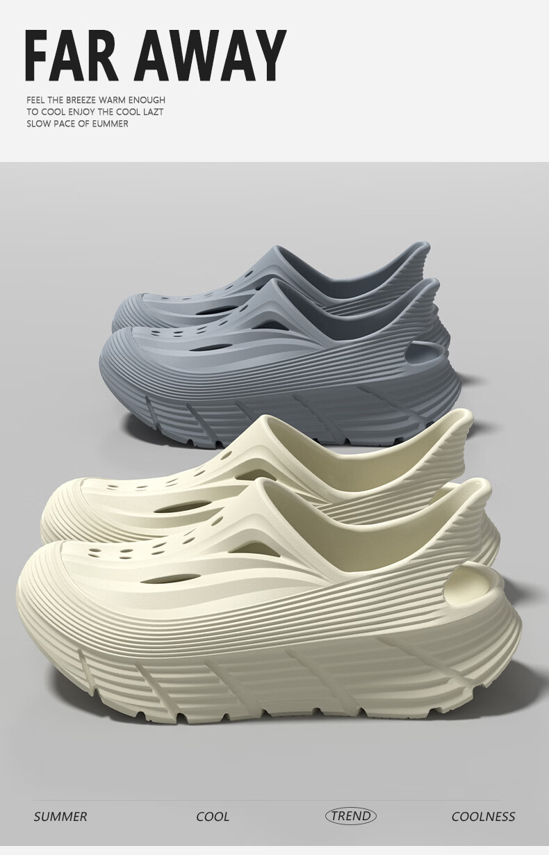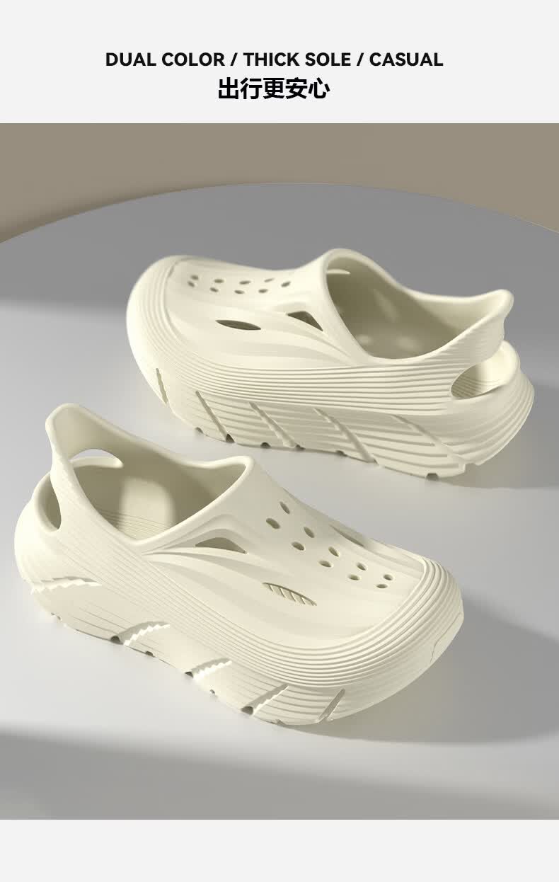水星家纺洞洞鞋女夏季新款外穿DIY包头凉鞋厚底沙滩情侣拖鞋男 骨白色+冰蓝海屿 44-45 【适合43-44码脚】
