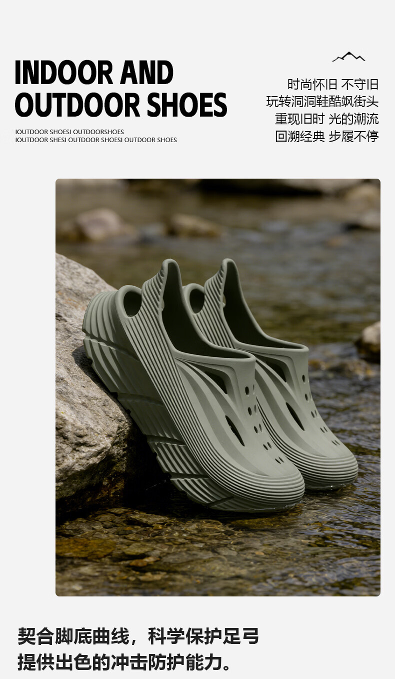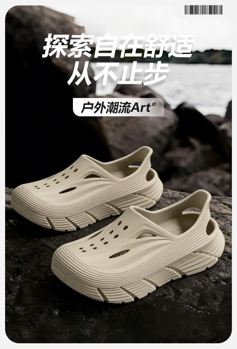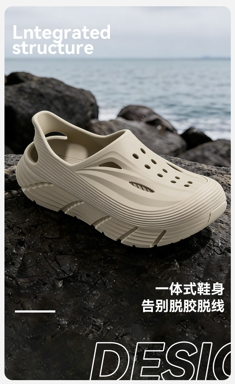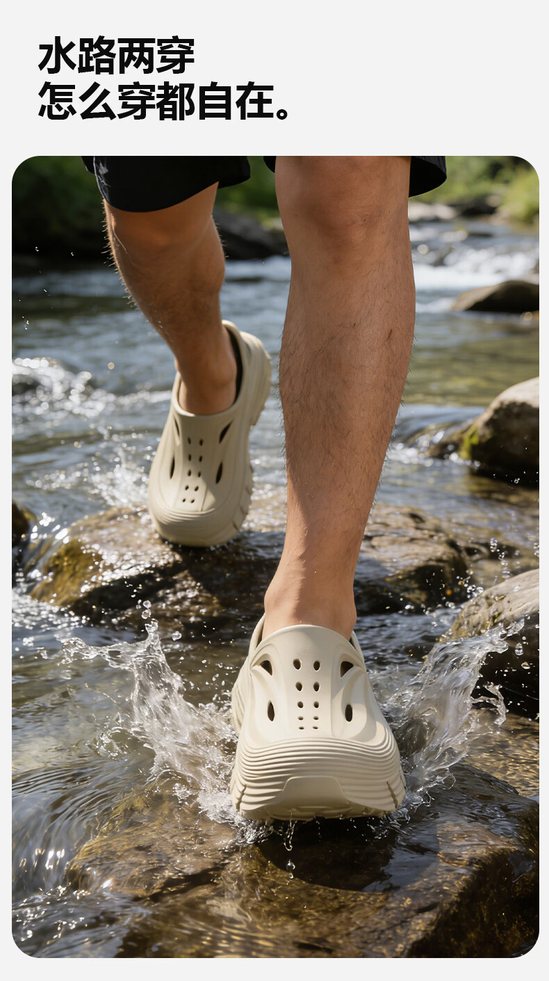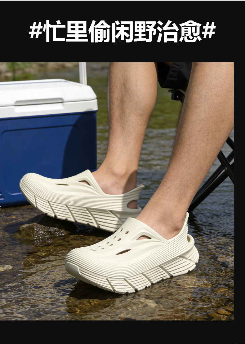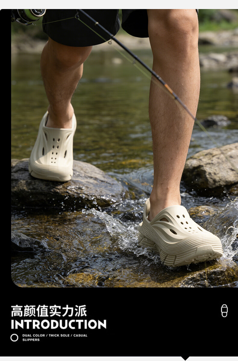 京小台洞洞鞋男士厚底夏季外穿防滑防臭户外沙滩运动溯溪开车两用凉鞋男 黑色 42-43