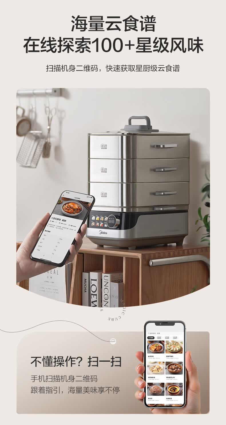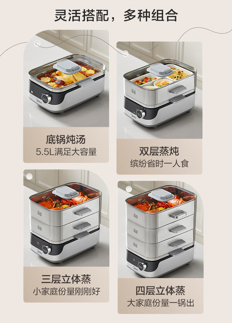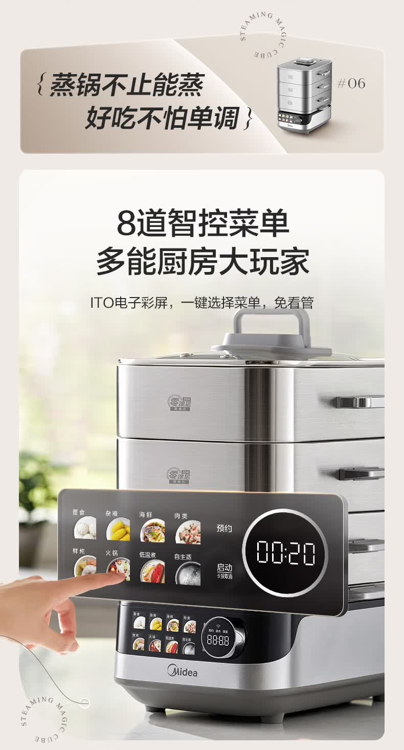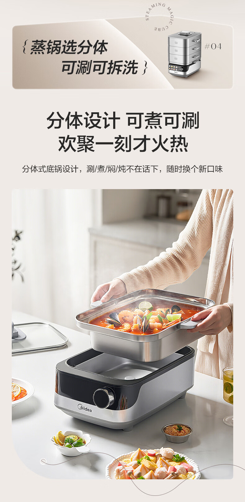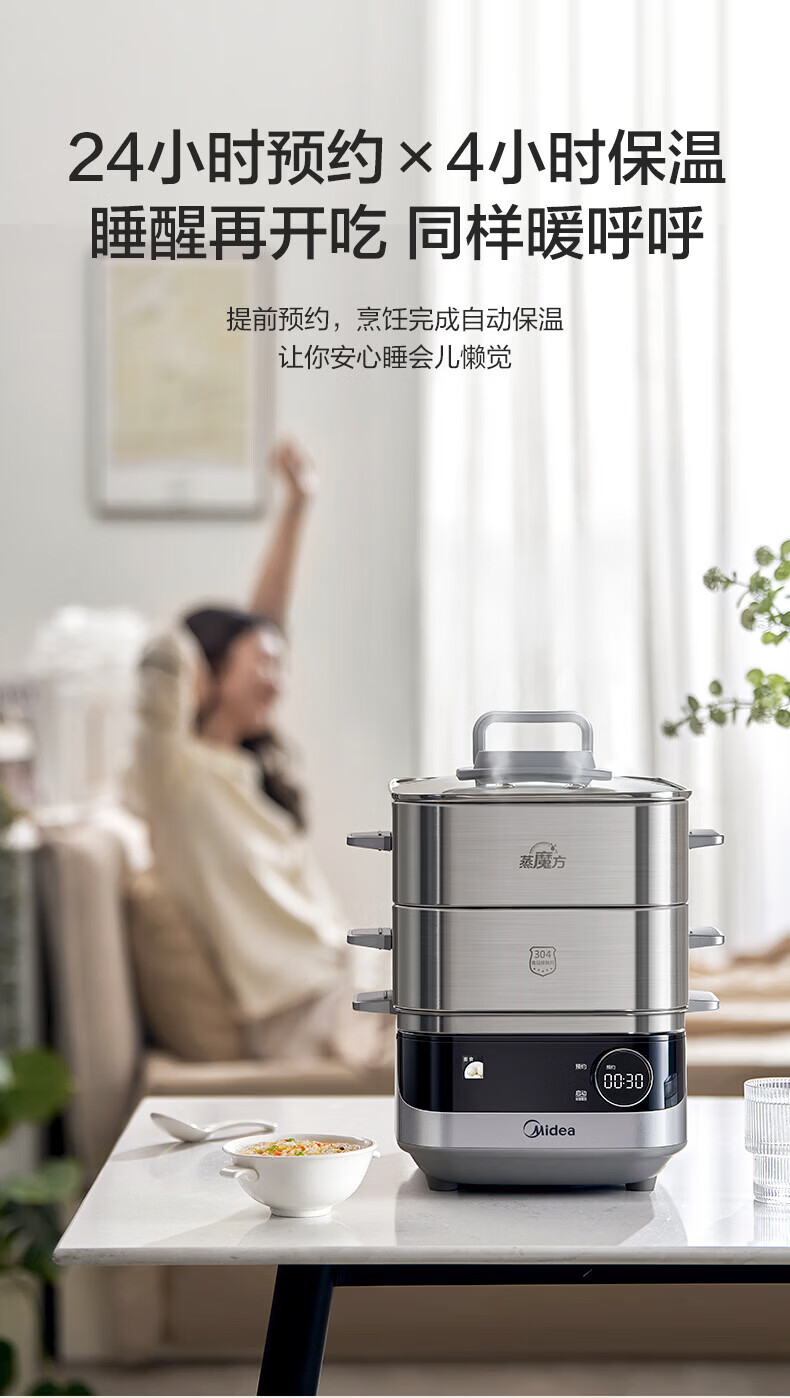 美的(Midea)蒸魔方0涂层电蒸锅炖蒸煮一体多功能锅 304不锈钢可拆洗 大容量家用4-10人蒸煮锅 25L 新升级-四层0涂层不锈钢